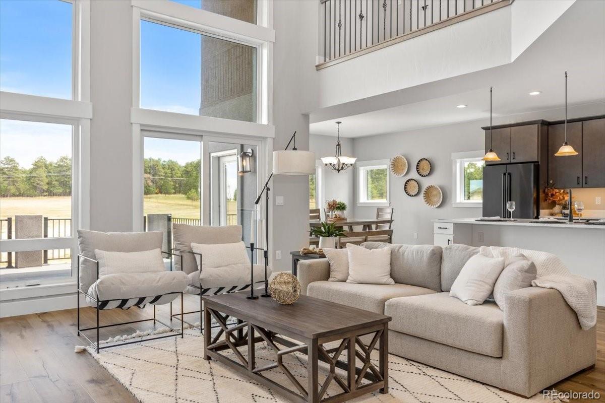 **Neighborhood close out – final opportunity!**Experience the unmatched serenity and sophistication of this brand-new, never-lived-in custom home, perfectly positioned on a private 2.6-acre lot surrounded by mature trees and natural beauty. As you step inside, you'll be immediately drawn to the breathtaking views and the stunning architectural design throughout. The grand room welcomes you with soaring 23-foot vaulted ceilings adorned with exposed wood beams, a dramatic floor-to-ceiling stone fireplace, and a handcrafted wood mantle that anchors the space with warmth and elegance. Expansive windows bathe the interior in natural light while seamlessly blending indoor and outdoor living. Designed for both everyday living and exceptional entertaining, the chef’s dream kitchen features high-end ZLINE Autograph Series appliances—including a 6-burner gas range, double ovens, and a microwave/convection combo—alongside a massive 10-foot quartz island and a walk-in pantry. The main-level primary suite offers a peaceful retreat with direct access to the covered deck. Its spa-like ensuite boasts a zero-entry shower with triple shower heads, a freestanding soaking tub, dual floating vanities with under-cabinet lighting, a bidet, and a generous walk-in closet. Upstairs, the loft overlooks the grand room with beautiful wrought iron railings and offers two additional bedrooms and a full bath—ideal for family or guests. The finished walk-out basement is an entertainer’s paradise, complete with a full wet bar, expansive rec and game rooms, and a versatile safe room that doubles as a wine cellar or secure space. Two more large bedrooms, each with en-suite baths, complete the lower level. This is your last chance to own in this exclusive neighborhood—don’t miss it! This is our lowest priced spec home available.