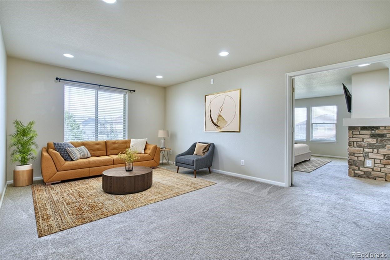 Welcome to this modern home in a vibrant community filled with opportunities to connect and unwind—whether you’re enjoying neighborhood events, lounging by the pool, or exploring the parks, tennis courts, and trails. Set on a desirable south-facing corner lot, this home is designed with both comfort and versatility in mind. The spacious primary suite is your private retreat, complete with a cozy double-sided fireplace, a relaxing sitting area, a spa-like 5-piece en suite bath, and dual walk-in closets. The updated kitchen with granite counters flows into the open floor plan, perfect for hosting gatherings or everyday living. A formal dining room and main-level office—flexible enough to serve as an additional bedroom—add thoughtful functionality. Upstairs, a generous loft complements two additional bedrooms, one with its own en suite bath, while the unfinished basement offers endless room to grow. Step outside and you’ll fall in love with the backyard—beautifully landscaped, backing to a greenbelt for added privacy, and offering plenty of room to play, garden, or simply relax. Evenings are best spent around the firepit, where you can gather with friends and family under the stars. This home isn’t just a place to live—it’s a lifestyle, blending community, convenience, and comfort in one perfect package.