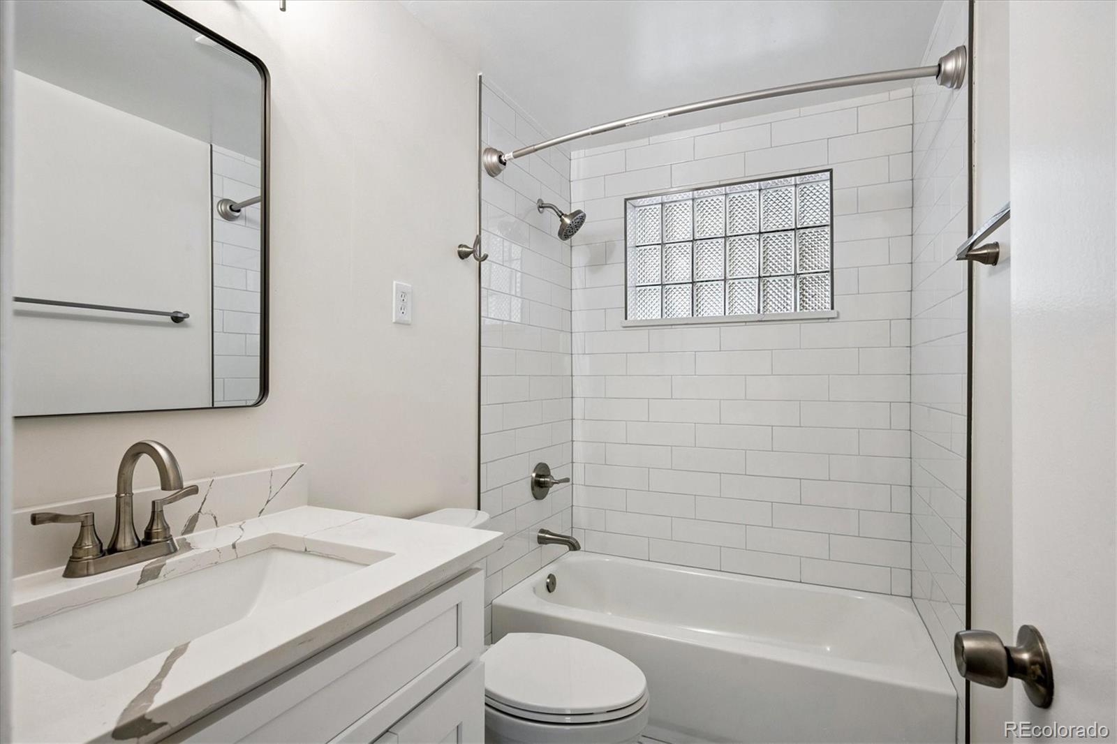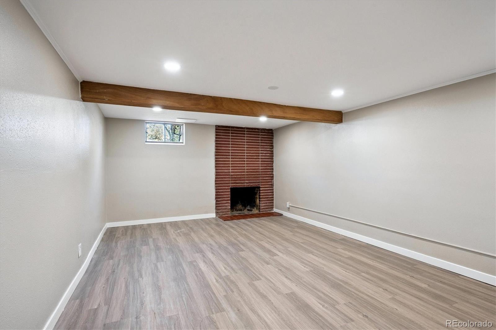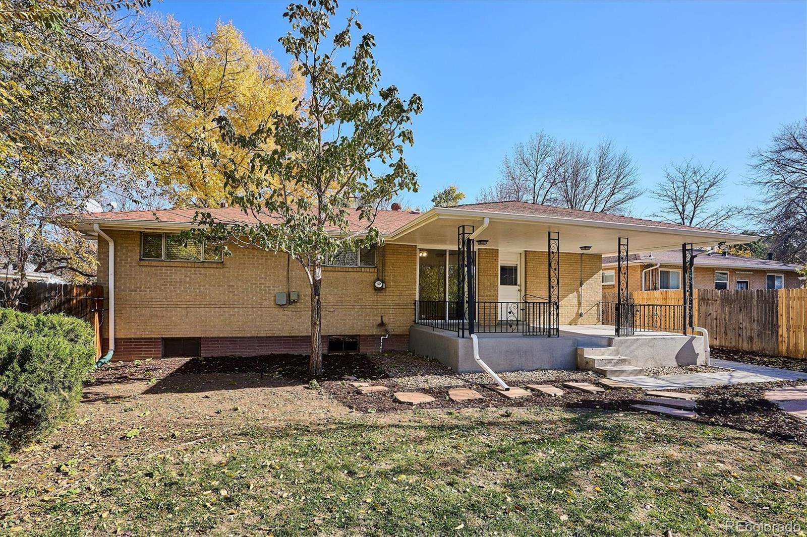 Completely remodeled rare mid-century brick ranch. Open floor plan, high ceilings, light and bright throughout. Original refinished hardwood floors throughout the main level. New interior and extertior paint. Updated lighting, plumbing and hardware fixtures througout. Enter through the main front porch area to the large living room with new can lighting, coved ceilings & highlighted by a floor to ceiling brick fireplace. Well situated dining room with slider door access to the brand new oversized concrete covered patio perfect for year round outdoor entertainment. Brand new kitchen with new soft closing cabinets and pantry, slab quartz countertops, SS appliances (gas stove) & new flooring. Two good sized secondary bedrooms, updated full bathroom with new flooring, subway tiled bath/tub surround, glass block window, new vanity with quartz countertop and all new bath hardware. Linen closet with laundry chute! Large primary bedroom with remodeld 1/2 bath en-suite. Walk down the well positioned staircase into the basement with tall ceilings throughout & into a large great room/game room area with new LVP flooring and a floor to ceiling bricked fireplace. Opposite this room is another large great room with all new can lighting. Utility room with lots of storage space and a walk in laundry room that includes a storage closet, utility sink, washer & dryer. Updated bathroom with new vanity & fixtures, walk in shower with new floor & new tiled poured shower pan and shower surround wall tile. Large bedroom (window, but not eggress). Attached garage. Solid systems including new boiler, radon mitigation system, good roof, solid electrical and plumbing. Professionally landscaped with front and back sprinklers/drip lines, fenced in yard, flagstone patio area, mature plants & trees, brand new concrete driveway, back patio and sidewalks. Close to everything including schools, parks, walking and biking trails, Cherry Creek, Downtown and major highways & throughfares plus much more