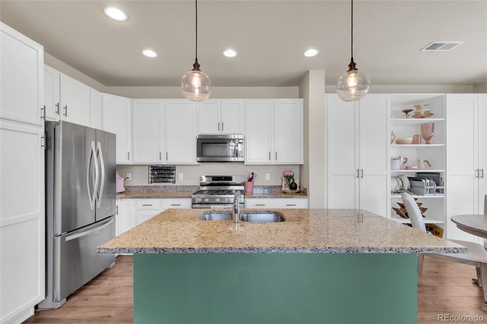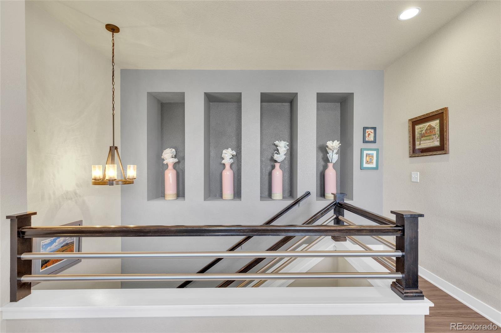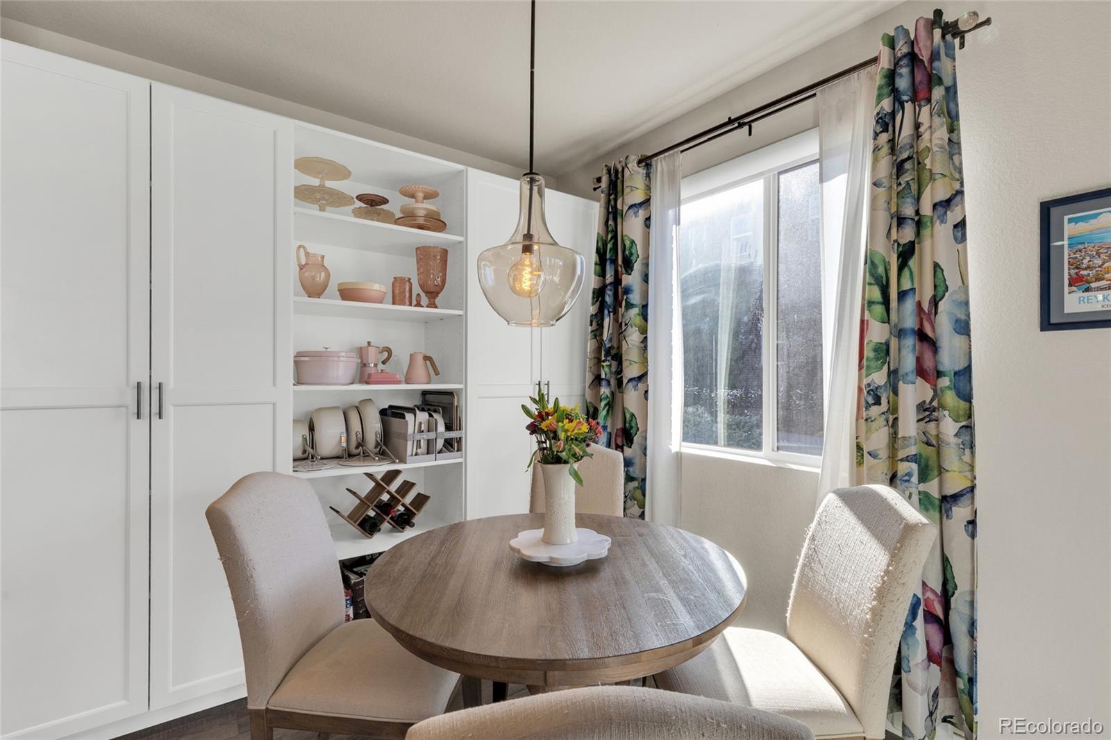 Welcome to this beautifully maintained end-unit townhome, where expansive mountain views and unforgettable Colorado sunsets become part of your everyday living experience! This light-filled, urban two-story home features nine-foot ceilings and a contemporary open-concept layout. The chef’s kitchen is a showstopper, boasting a large island, granite surfaces, and stainless-steel appliances, including a gas range, a newer dishwasher, and a disposal. The dining area is enhanced by new custom-built-in cabinetry and pantry, and flows seamlessly into the inviting living room, anchored by a striking 60-inch electric fireplace. Just beyond, the patio offers the perfect vantage point for sweeping mountain views. // Upstairs, new vinyl flooring (2024) seamlessly integrates with the durable hardwood flooring on the first floor. The sunlight loft features a home office with a gorgeous built-in shelf and desk. The primary bedroom offers a true retreat with a spacious five-piece bath featuring dual vanities, a soaking tub, a shower, and a large walk-in closet. The private primary suite balcony affords unobstructed mountain views. Two additional bedrooms and baths provide flexibility for guests, family, or additional workspace. A new water heater, a new whole-house humidifier, all new toilets, and a new sliding door make this home feel especially turnkey. The attached two-car garage adds convenience and additional storage. // Located in one of Denver’s most connected communities, Midtown offers proximity to local breweries, restaurants, parks, dog parks, walking and biking trails, two light rail stations, and easy highway access to Tennyson, Downtown Denver, the Highlands, Old Town Arvada, and Boulder. Plus, the HOA maintains the landscaping, so you can focus on what matters! This home combines low-maintenance living with intentional upgrades, abundant natural light, and exceptional views in a vibrant, social neighborhood. ***SPECIAL FINANCING AVAILABLE TO LOWER INTEREST RATE!