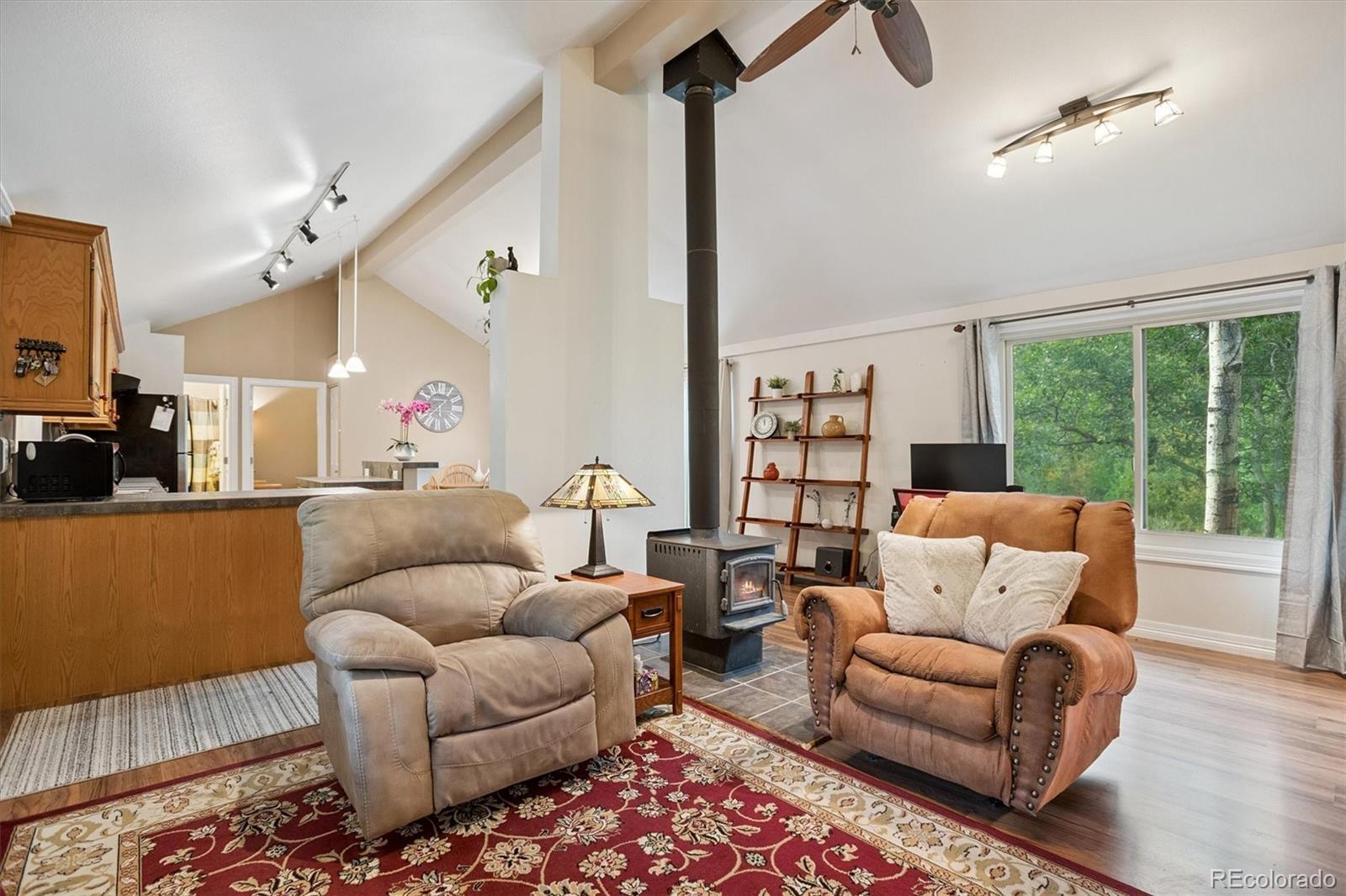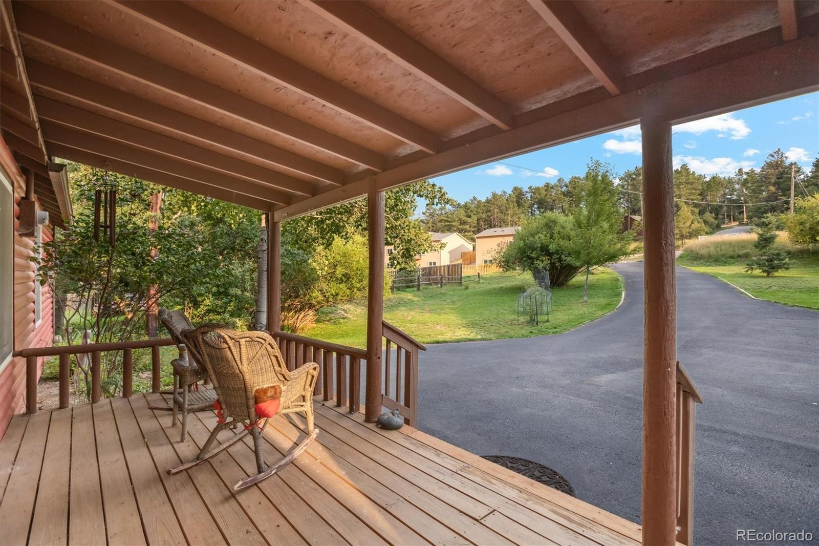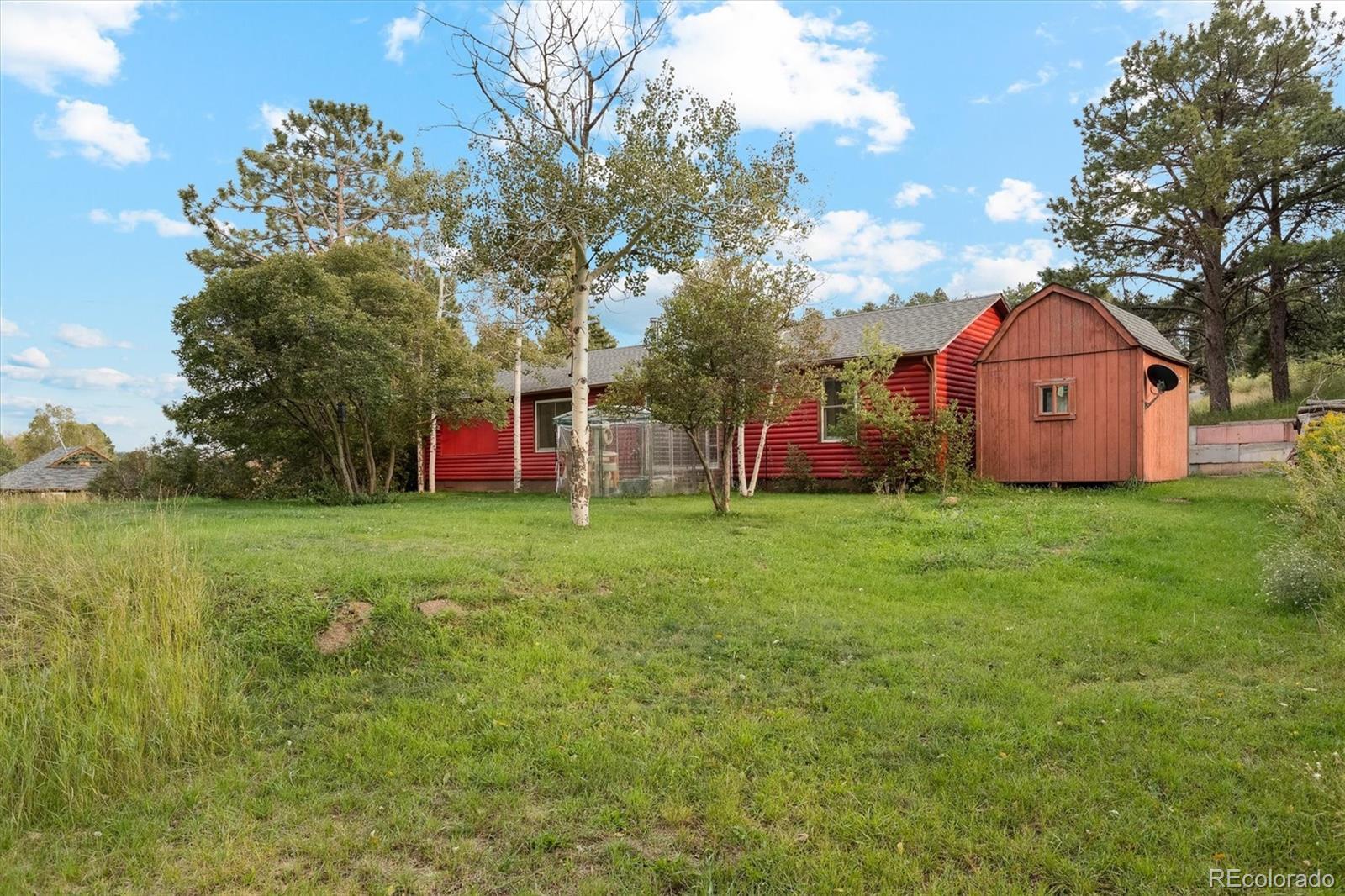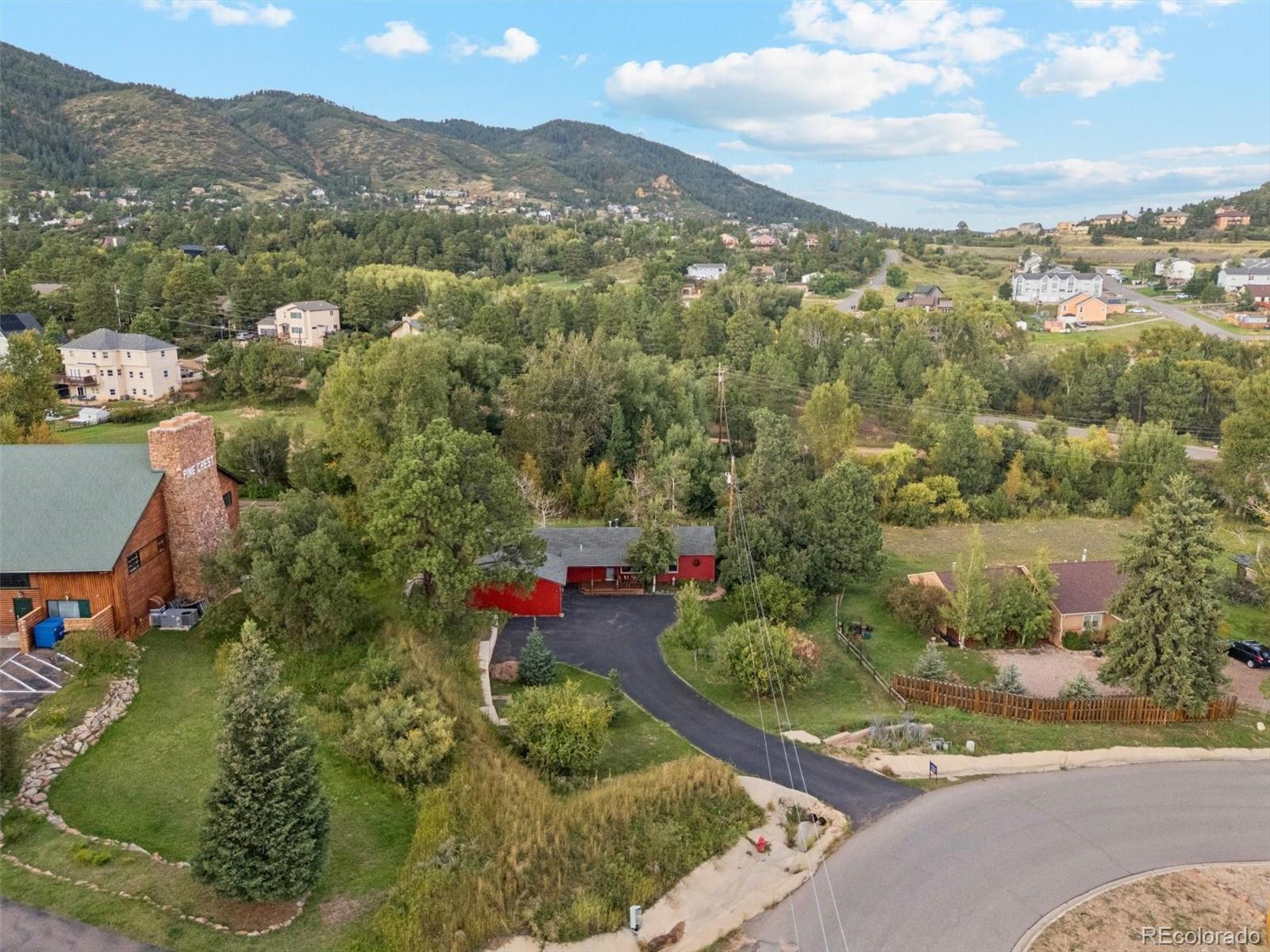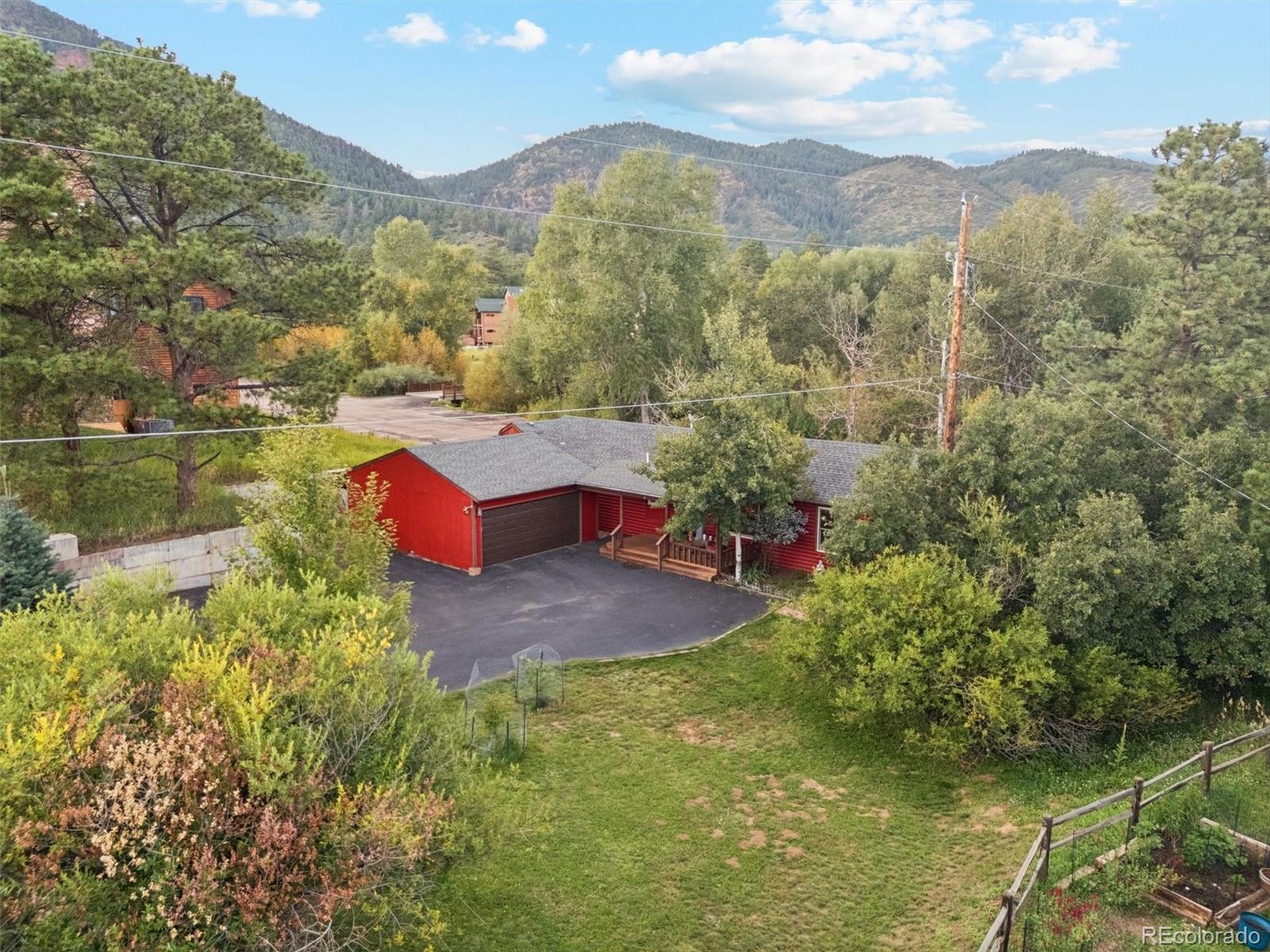Ever dreamed of a charming red-cabin-style home by the creek? This one-of-a-kind Palmer Lake property sits on over a third of an acre and backs to a year-round creek—you can hear the soothing sound of running water from your own backyard. Start your day on the cozy, south-facing porch, soaking in sunshine and mountain views. The expansive backyard offers daily wildlife sightings—deer with their fawns, foxes, turkeys, and countless birds. From your back windows, you’ll even catch fireworks and town celebrations without leaving home. Inside, vaulted ceilings create an airy, open feel, with a wood-burning stove for warm, inviting winter nights. Main-level living includes two full baths, plus an oversized two-car garage with electric. Just a short walk to Palmer Lake’s restaurants, trails, and recreation, this property blends small-town charm with privacy, peace, and serenity. Whether it’s your forever home, weekend escape, or a standout short-term rental, this peaceful red cabin is truly one of a kind. This isn’t just a home—it’s a lifestyle. Opportunities like this are rare in Palmer Lake.