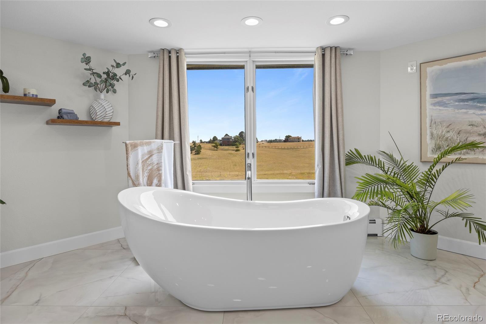 Luxury country living meets modern comfort! This impressive 4 bed, 4.5 bath estate spans over 6,000 sq ft and rests on 5+ beautifully landscaped acres. Every bedroom boasts a private ensuite, while the luxury primary suite is a true retreat with a remodeled spa-like bathroom, two walk-in closets, and a cozy sitting area. The gourmet kitchen features granite counters, a gas range, and double smart ovens, opening into living and dining spaces designed for both hosting and everyday ease. Storage is abundant throughout the home—including a perfect space for wine aging or canning enthusiasts to store homemade goods. After a workout, unwind in the basement shower room (with potential to convert to a steam room), or step onto the wrap-around porch to soak in sweeping Colorado views. Equestrian enthusiasts will appreciate the custom 1,172 sq.ft. barn with two oversized stalls (10.6x11 and 10.6x12.6) complete with rubber mats, a tack area, and a spacious upper level with endless possibilities. The paddock area is ideal for horses or could be transformed into a gardener’s dream. Plus, Meadow Station offers 156 acres of private common property for non-motorized activities like horseback riding. Practical upgrades give this property added value and peace of mind: a private well provides fresh water with no monthly utility bills, a septic system offers self-sufficient living without city sewer costs, and an owned propane tank means long-term savings and complete control over your energy supply. With a brand-new roof (August 2024), fresh exterior paint, and countless luxury updates, this home delivers a serene country/equestrian lifestyle—all just minutes from Parker and Southlands conveniences. Words can’t fully capture all this property has to offer—it’s best experienced in person. Schedule your showing today and don’t miss the 3D tour!