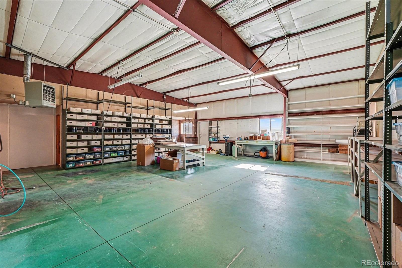 This 104 x 40 industrial metal building offers an open-span interior that provides maximum flexibility for a variety of business needs. The front area includes two office or reception areas, along with a small kitchen area with plumbing for a sink. A large 10' x 12' grade level overhead garage door allows for convenient shipping and receiving or easy access for equipment, vehicles, and materials. The expansive floor area, along with two 1/2 bathrooms, can easily accommodate light industrial machinery, assembly operations, storage racks, or showroom displays, depending on your business requirements. There is a detached 12 x 24 garage with no electricity or a garage door opener; it must be manually opened. The bones of this building are great, and you can't beat the price at less than $115/ sq ft. Single-phase elec. This property has always been owner-occupied, never leased. Strictly sold as-is.