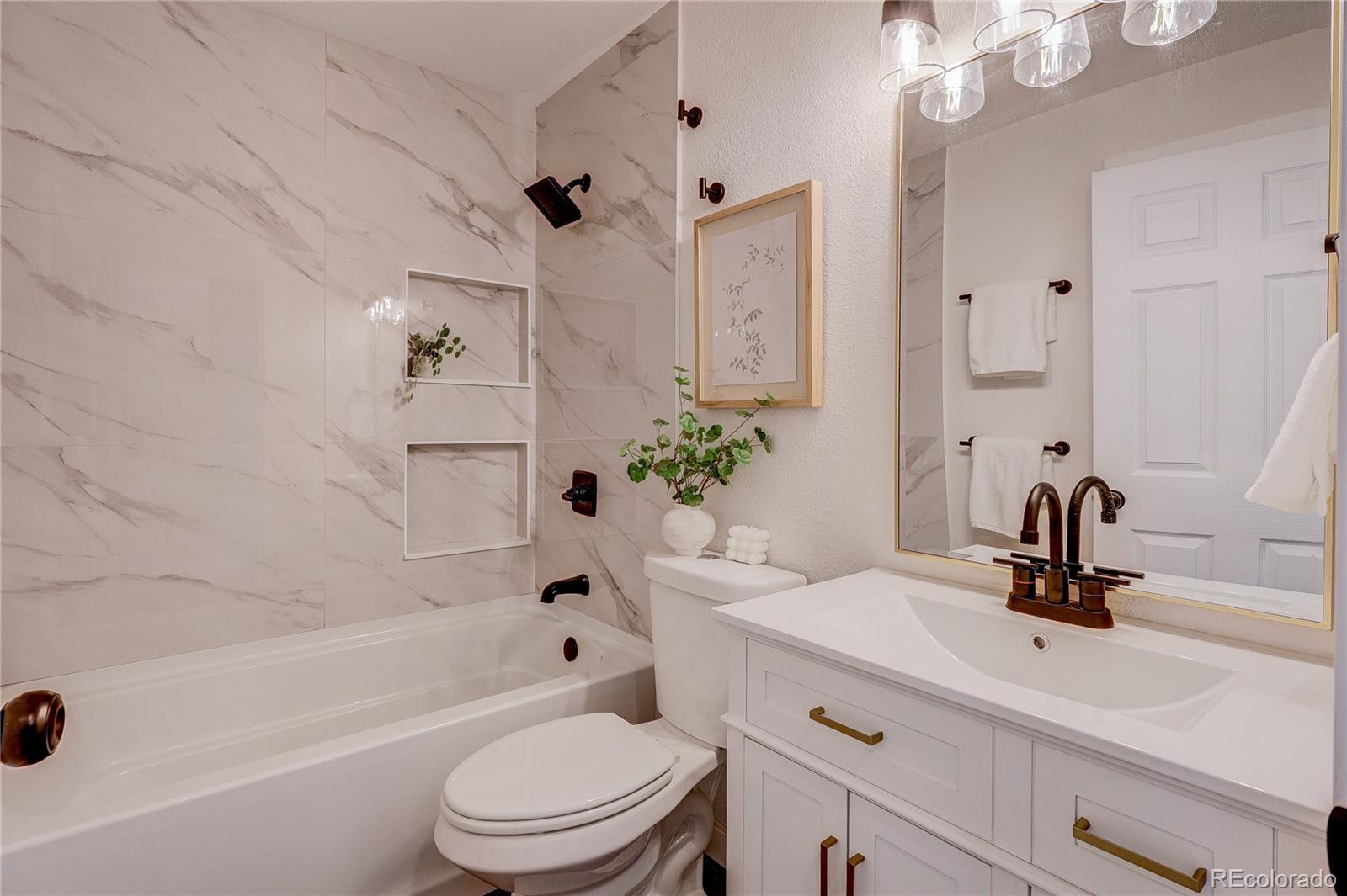 Welcome home to your fully Remodeled four bed two bath Greenway Park Gem! Move-In Ready with NEW Everything! Step into a like-new home where every detail has been thoughtfully upgraded for modern comfort and style. This 1,900+ sq ft residence sits in the heart of Greenway Park, just steps from the community golf course and scenic trails, and has been meticulously renovated top-to-bottom—including a brand-new roof with 5” gutters & downspouts, and a new concrete back patio perfect for outdoor living. Interior Highlights – All New in 2025 Gourmet Kitchen: Brand-new cabinetry, sparkling quartz countertops, and a full appliance package including: Gas range/oven, Dishwasher, Refrigerator, with built in Microwave. Also included washer and dryer! Luxury Finishes throughout including: new luxury vinyl plank flooring and new plush new carpet in all bedrooms. New custom stairs treads and contempoary banisters. Fresh interior and exterior paint. All-new lighting fixtures + new blinds on every window! Spa-Like Bathrooms; both newly remodeled with new vanities, tile showers/floors, toilets, and modern fixtures. Mechanicals – Worry-Free for Years: New furnace installed November 2025. Central A/C for cool Colorado summers Water heater (2021) – still under warranty. New stamped concrete patio – ideal for BBQs and morning coffee with Hydro-seeded backyard – lush green grass coming for Spring 2026! Private backyard that is fully fenced. Gate in backyard for easy access to the community walking path! Prime Broomfield LocationWalk to Greenway Park Golf Course & playground. Minutes to Interlocken, Flatirons Mall, & I-25 Top-rated Boulder Valley Schools with Low HOA includes community maintenance & events. HOA includes optioins for golf, the pool, and playground. No detail overlooked. No projects left. Just move in and enjoy. Priced to sell fast in one of Broomfield’s most desirable neighborhoods. Schedule your private tour today!
