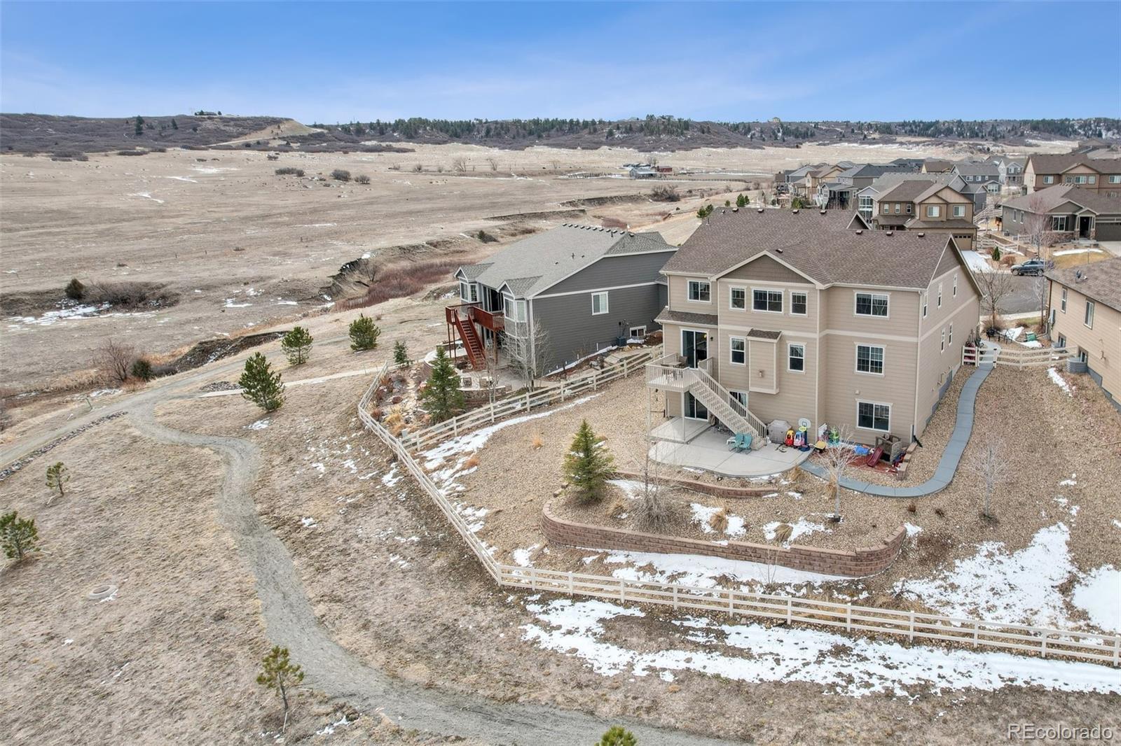 Substantial $50,000 Price Reduction!Seller is offering this incredible 5 bed, 5 bath home reduced by 6%. 4th quarter is historically one of the best times to purchase in Colorado, and this home offers exceptional value at $150/sf! Over 5,200 square feet, backing to open space, with a walkout professionally finished basement complete with a second kitchen—perfect for multigenerational living or income potential. Tucked away at the end of a quiet cul-de-sac and backing to open space, this two story home offers an ideal mix of location, function, and style. From the welcoming front porch to the foyer with soaring ceilings and hardwood floors, you’ll feel right at home. The formal dining room connects to a butler’s pantry with beverage fridge and walk-in pantry. A chef’s kitchen features a granite island, stainless steel appliances including a built-in refrigerator, gas cooktop, and double ovens. The breakfast nook and great room with fireplace capture peaceful views of trails and open space. A private study with French doors, powder bath, and large laundry with sink complete the main level. Upstairs, a loft and study nook provide flexible living. The primary suite includes a walk-in closet and four-piece bath. One secondary bedroom has its own en suite, while two others share a full guest bath.The finished walk-out basement is fully permitted as an Accessory Dwelling Unit (ADU). This bright level offers a living room, kitchen, dining area, bedroom with walk-in closet, full bath, and two storage rooms—ideal for multigenerational living or income potential. Located in the desirable Carriage Hills section of Crystal Valley Ranch, the home is close to community amenities and trails.