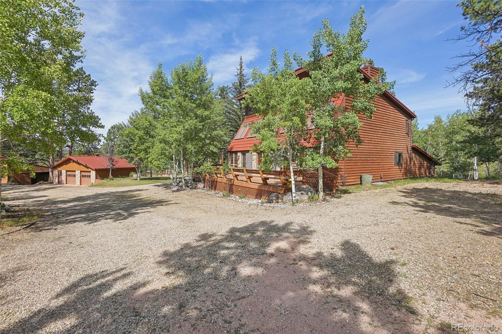 Escape from the hustle and bustle to this RARE quiet ranch estate only a few minutes from town! As you turn down the gravel driveway, prepare to be stunned by the incredible Pikes Peak views from this 8 acre property that backs to Pikes National Forest! This spectacular property features a main residence that backs to a lush gulley before entering in to the Pikes National Forest. Main residence has expansive front and back decks to take in the views and enjoy the peace and quiet. During the cold months, enjoy the day in the bright sun room that is located right off of the kitchen and living room. This spacious home has bedrooms on every level, three wood burning fire places, full walk-out basement, and multiple living areas. Steps from the main residence is a charming cabin that dates back to the 1960’s Girl Scout camp days. Complete with unique touches, this special cabin could be a wonderful guest house, rental, or home office! Detached 3 car garage is a perfect place to tinker, or park all of your vehicles. HORSE ENTHUSIASTS will fall in love with the adjacent barn complete with 5 stalls plus room for 2 more that have indoor/outdoor access, loafing shed, tack room, office, and more. After saddling up, take the private access to hit the trails. Steps from the barn, fenced pasture or outdoor riding area provide extra room for all of your animals. The CROWN JEWEL is the incredible 144x106 foot indoor riding arena complete with lights, heat in stall area, office, tack room, kitchenette and wash area, and hay storage. Roll up doors on both ends of the arena provide for incredible views while riding! Property is completely fenced with two wells, septic, an RV plug in and septic connection line. Future owners do have the option to tie in to city sewer and water. Additional pasture next to indoor arena has lots of possibilities! This opportunity to own a little slice of cowboy heaven near all the modern conveniences of town only comes along once in a lifetime!