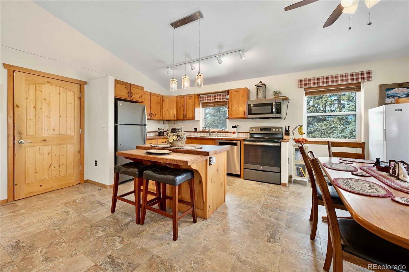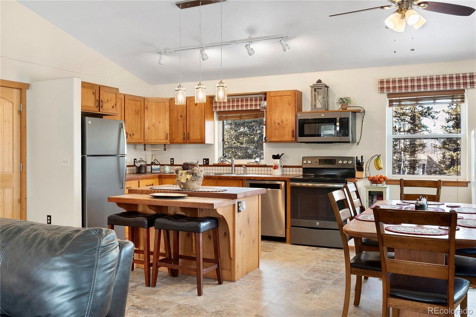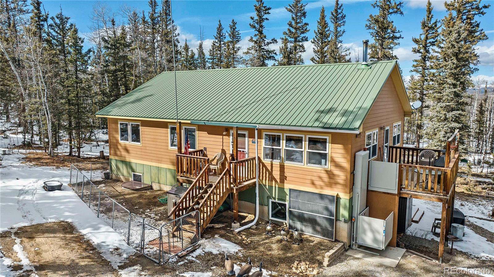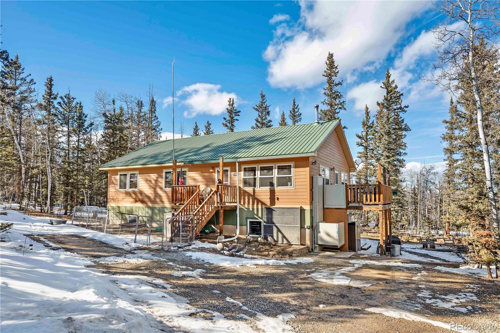 Welcome home—a thoughtfully constructed raised-ranch home located in the desirable Indian Mountain subdivision of Como, Colorado. This property offers a rare combination of modern efficiency, mountain charm, and smart design at an unbeatable price. Built with fire-rated Structural Insulated Panels (SIPs), this home offers energy efficiency, long-term durability, and lower insurance premiums. Located on a county-maintained and snow-plowed road, you'll enjoy easy year-round access, even during heavy snow seasons. The main level features vaulted ceilings, large windows, and an open-concept layout with a wood-burning stove and two expansive decks that showcase the stunning mountain surroundings. Three spacious bedrooms, two full bathrooms, and a laundry area make this level comfortable and functional. An exterior elevator ensures easy access to the main floor for all. The lower level offers its own entrance, full kitchen, pellet stove, bathroom, and bonus spaces—ideal for multi-generational living, private guest quarters, or potential rental income. A spiral staircase connects both levels while maintaining privacy. Wildlife is abundant—deer, birds, and foxes are regular visitors. You're just 60 minutes to Breckenridge, recently named one of the Top 10 small towns in the U.S., and only 20 minutes to Fairplay and South Park. Adventure awaits with ice fishing, boating, and hiking nearby at Spinney, Eleven Mile, and Tarryall Reservoirs. This is your chance to own a fire-smart, low-maintenance, adventure-ready home in the heart of the Rockies—priced well below comparable properties in the area. Investors welcome.