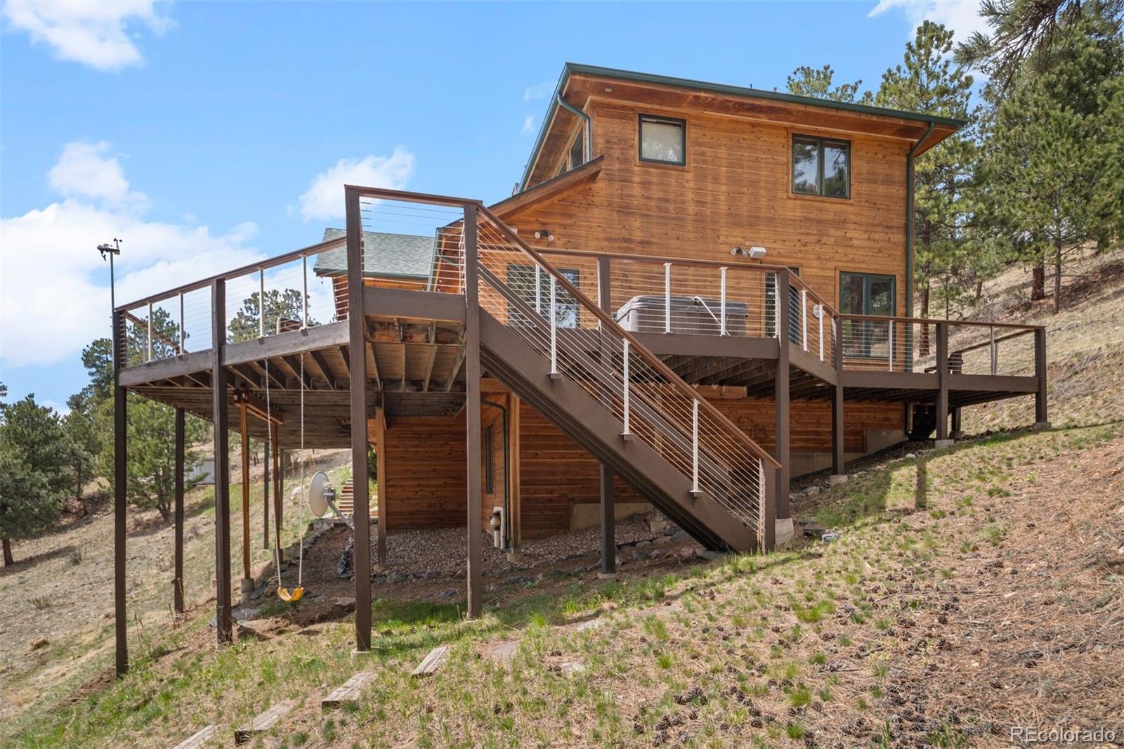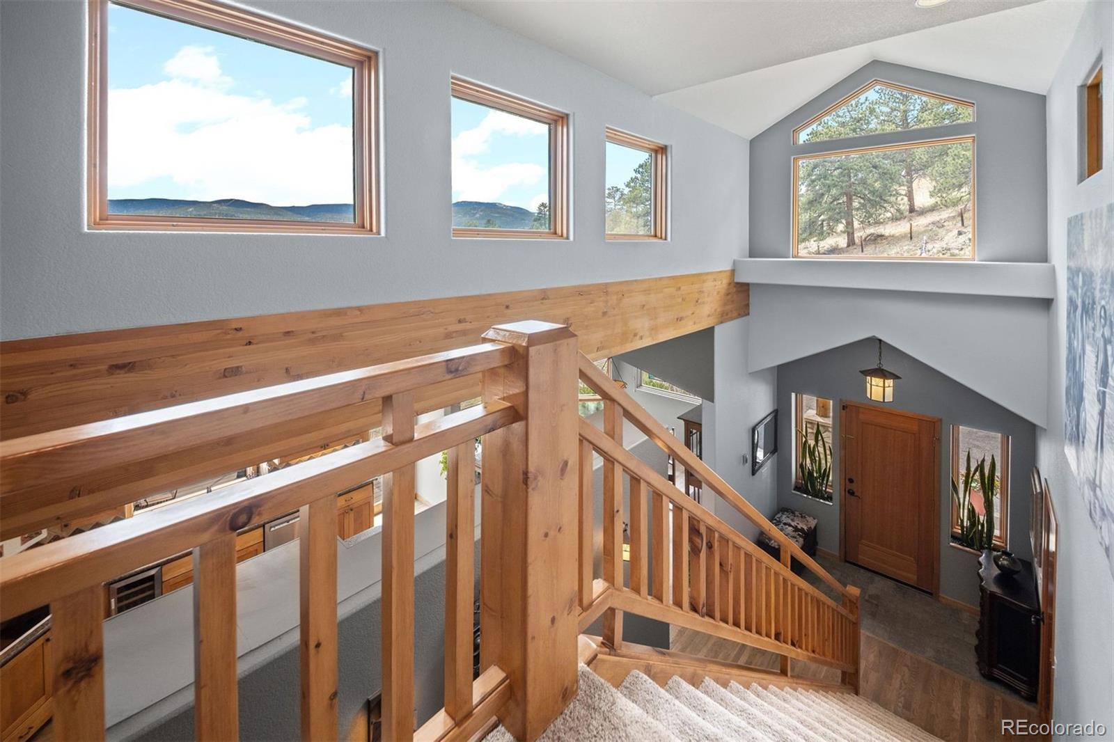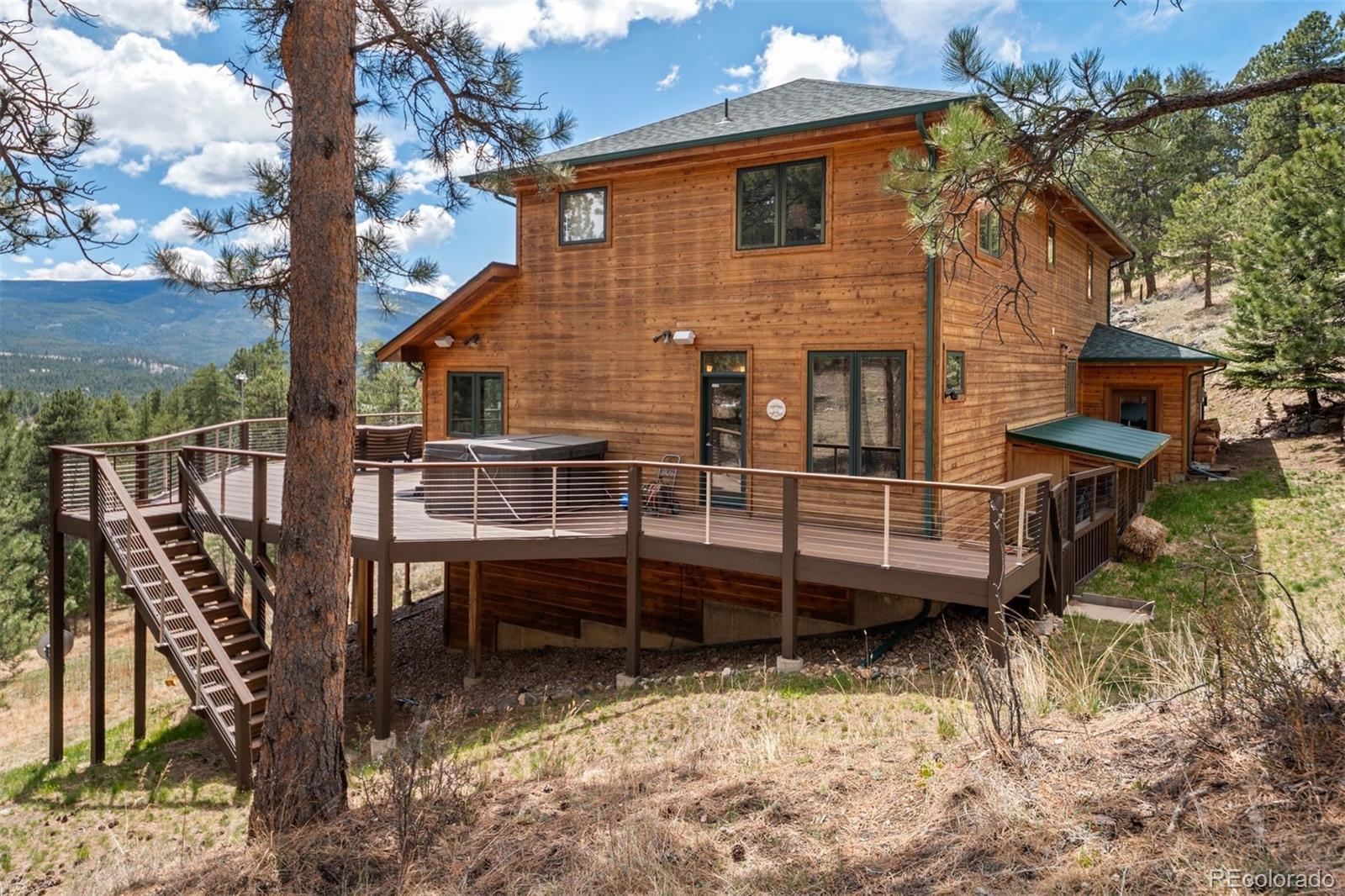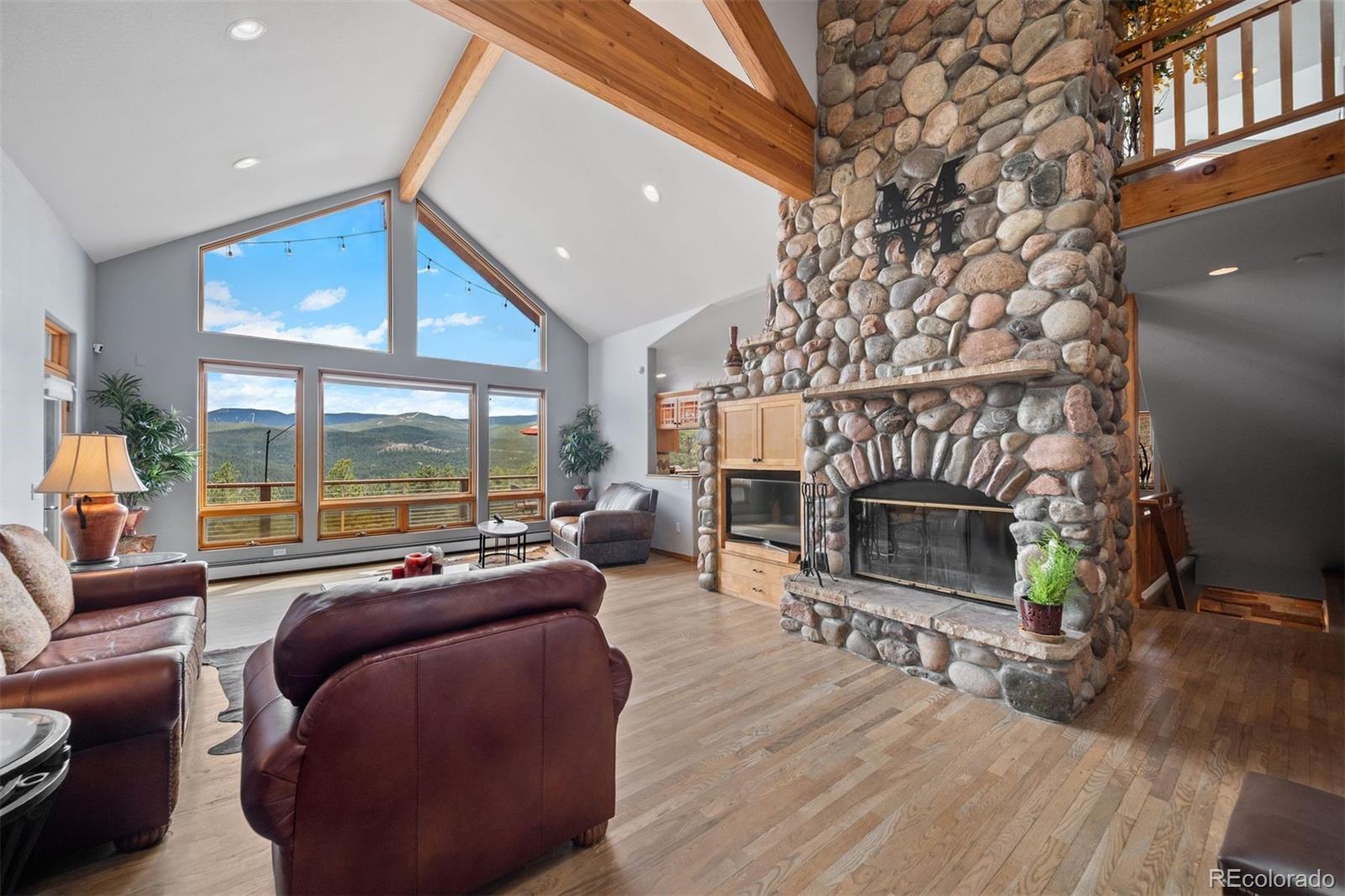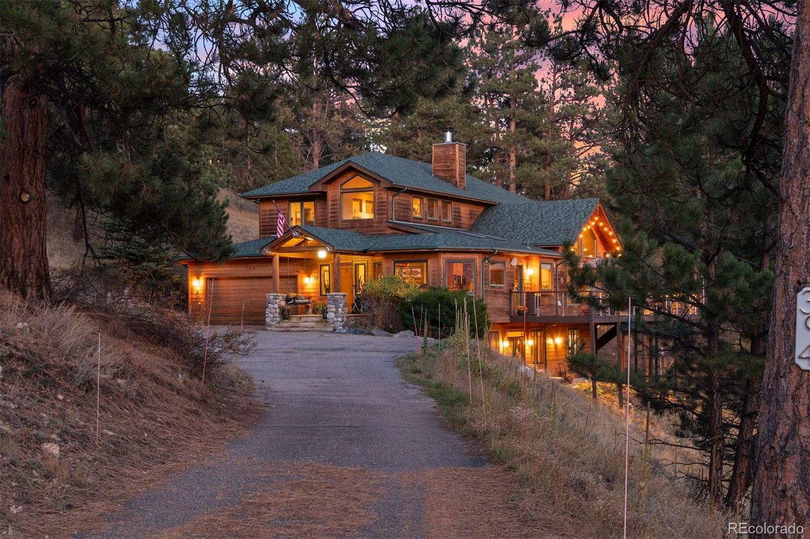 This is a Special Place to come home to and enjoy the Privacy and Mountain Serenity. The two acres are at the end of the Cul-de Sac, providing a quiet refuge. This house is Positioned at the Crest of the Property, looking out at the soothing rolling Mountains Views and surrounded by nature. The driveway is very gentle and access to town is about 10 minutes away. The Architecture of the home, with the Cedar siding and Log accents, integrates with the land and the Mountain Ambiance. The Inviting Floor Plan is conducive for entertaining or comfortable everyday living. Most of the main Living Areas like the Living Room, Dining, Kitchen and Primary Main Floor Bedroom have the inspiring Mountain Views and direct access to the Wrap around Deck. The Vaulted Ceilings with Skylights, Truss and Log accents, Sky Reaching Windows, and the Towering Rock Fireplace complete the Mountain Feel while amplifying the space. The main level has oak wood floors. The large kitchen has new Appliances and integrates both with the Living Room and Dining Room. There's a Large Office/Guest Room and Additional Bedroom Upstairs. Clear Creek Broadband has been wonderful Internet. Cell phones run off of WiFi. The Lower Level has an expansive Recreation Room with Direct Access to a Patio, two Additional Bedrooms and an enormous Workshop and Storage Area. There's a covered Dog Run on the East side of the house. Please see the Floor Plan in Supplements.