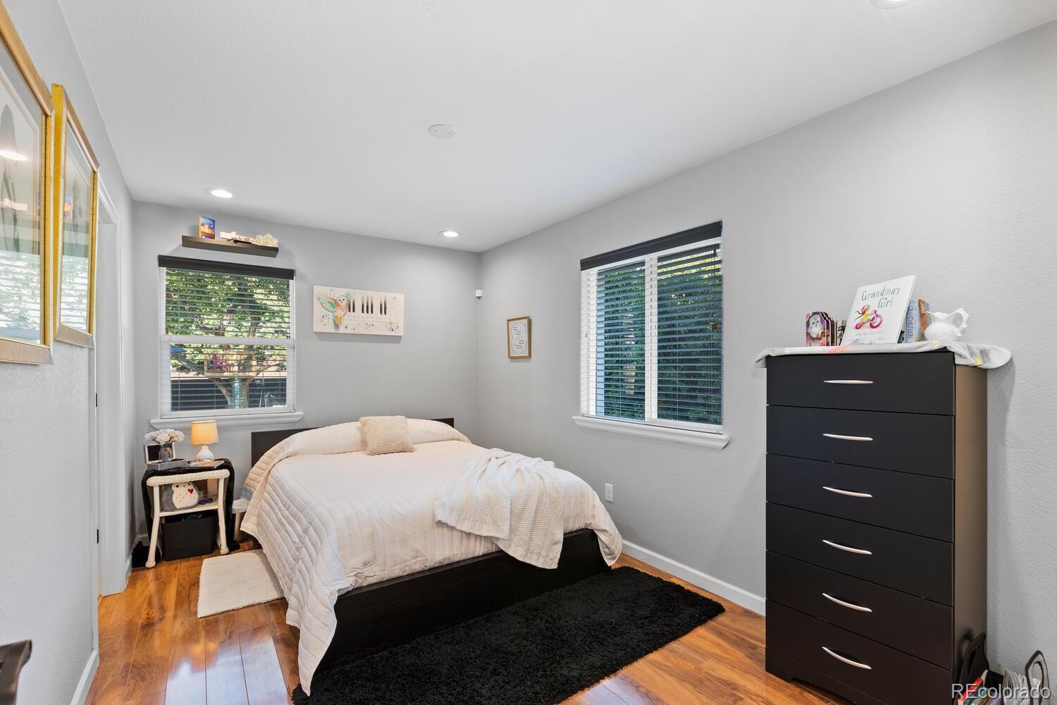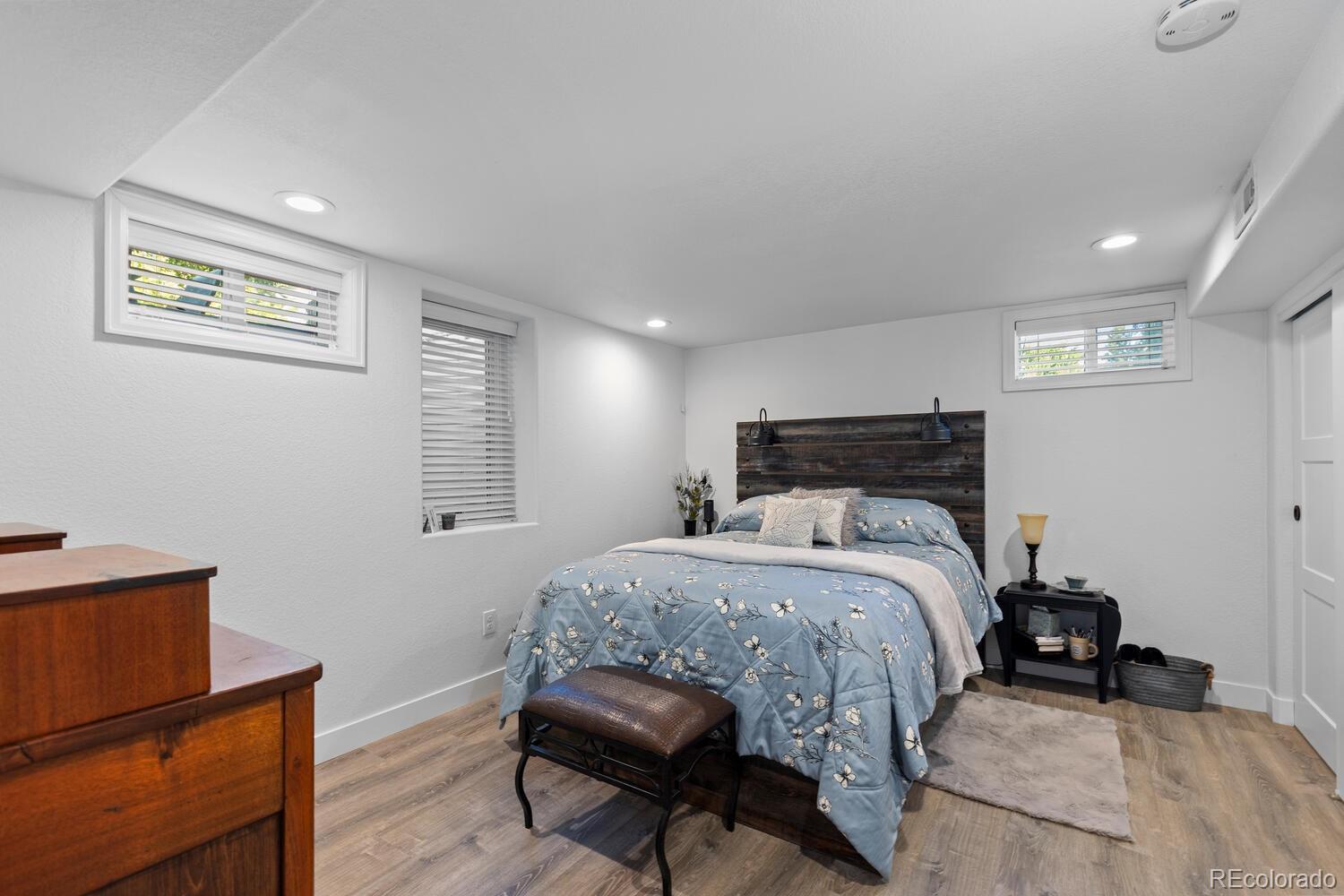 Watch the sun rise, enjoy your morning coffee and gaze at the peaceful beauty of McWilliams park from your front porch! Beautifully maintained 4 bedroom, 3 bathroom, all brick ranch, offers 2,370 SQFT of thoughtfully updated living space on a gorgeous, oversized 7,500 SQFT lot. It has a unique 4-car garage which is accompanied by an additional uncovered parking spot making this home perfect for a vehicle or hobby enthusiast. Inside, you will find a bright, sun-filled living room, an updated kitchen, and remodeled bathrooms and bedrooms. Three bedrooms are on the main floor, and one of the bedrooms has a full ensuite bathroom (can be used as the primary). The lower level features a spacious and fully renovated primary suite with a dual-vanity bath, oversized shower, and expansive walk-in closet. It could also be an in-law or college kid suite. Additional highlights include a large laundry room, inviting bar and family room. The basement also has a unique walk-in Sportsman's Room (or craft/storage room) with a secure vault door. French doors off of the kitchen open to a maintenance-free concrete deck and absolutely beautiful West-facing backyard, perfect for meals outside and entertaining. This home is uniquely situated at the end of a non-through street (see photos). Make the most of the indoor/outdoor living and Colorado's 4 seasons. Located near the University of Denver, walking distance to gorgeous Observatory Park, and close to I-25, this home provides quick access to Cherry Creek, downtown, HWY 85 (your access to mountain getaways) and local districts with great food and boutique shopping. This is your opportunity to step into a truly turn-key home in the highly desirable University Park neighborhood with multi-million dollar homes on your street.