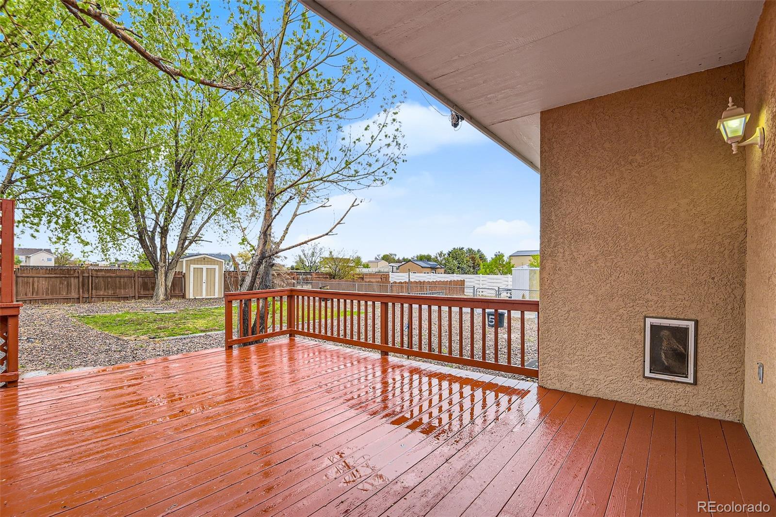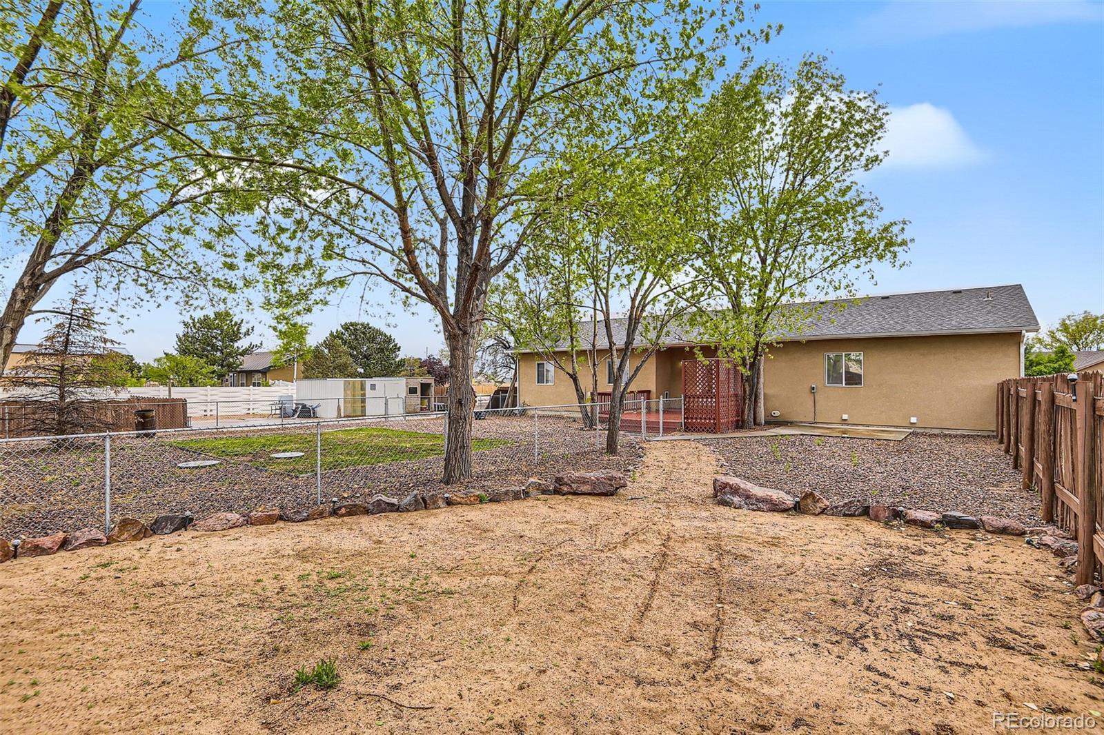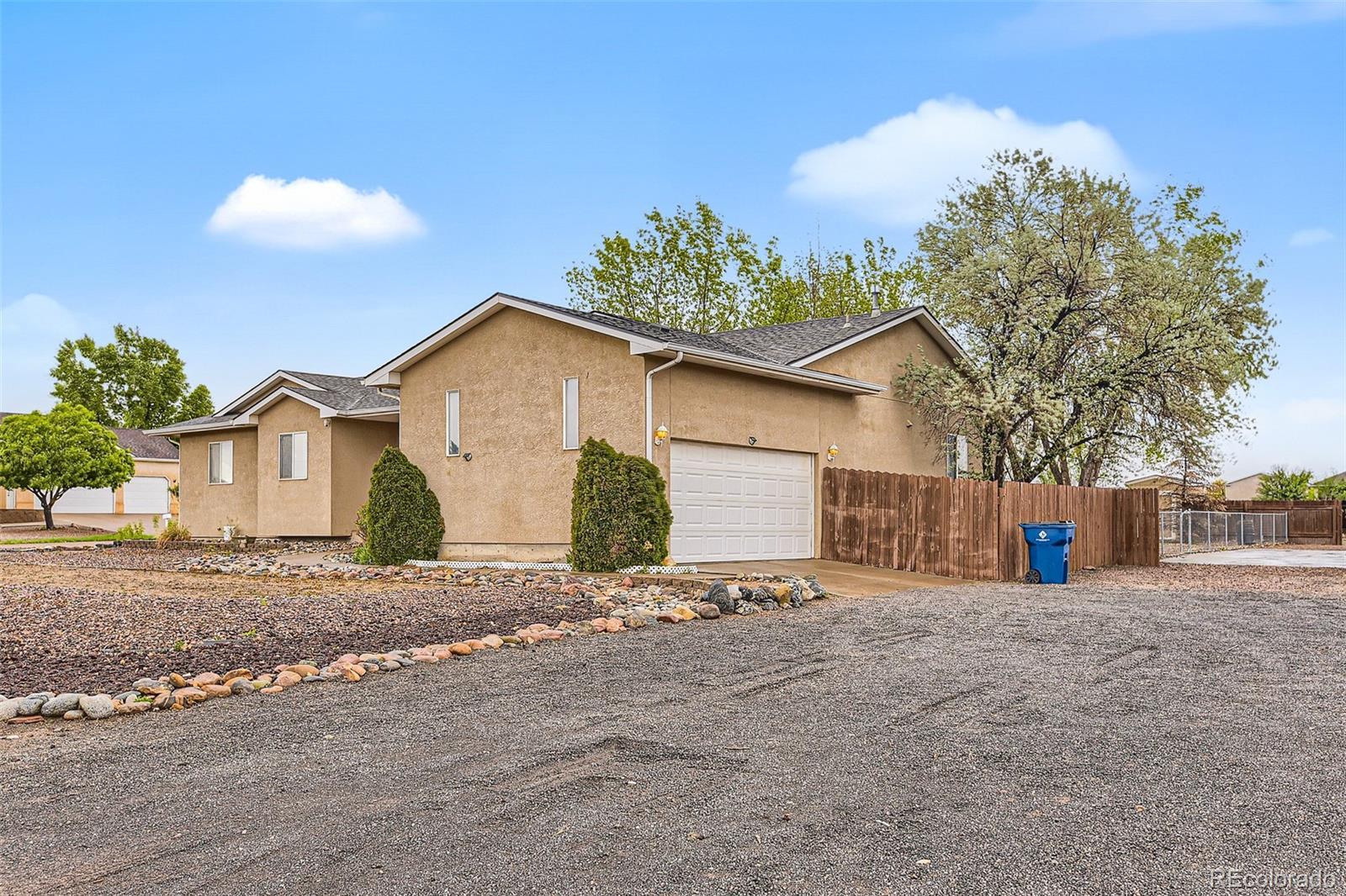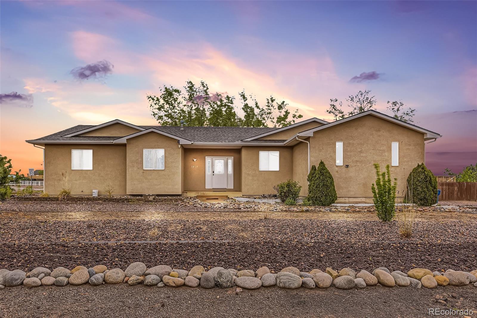 ($10,000 concession for rate buy down, closing costs, etc.) Charming ranch-style home on 1.08-Acre Corner Lot in Desirable Pueblo West Well-maintained 4-bedroom, 3-bathroom ranch-style home on a spacious corner lot with beautiful mountain views and landscaping. Located in the sought-after Pueblo West community, this property offers both space and functionality inside and out. Enjoy a bright, open-concept layout featuring a kitchen with stainless steel appliances, gas range, and ample cabinet space. The kitchen flows into the dining, living, and family rooms, all with easy-care tile and laminate flooring on the main level—perfect for everyday living and entertaining. The primary suite includes a walk-in closet and a fully remodeled en-suite bathroom with a barn door, double vanity, framed mirrors, and a large walk-in shower with rainfall showerhead. Two additional main-level bedrooms are conveniently located near the second full bath. Main-level laundry/pantry room provides extra storage and direct garage access. The partially finished basement includes a spacious fourth bedroom, third full bath, and room for future expansion—ideal for a home office, gym, or rec area. Brand new, upgraded HVAC system just installed. Step outside to a large rear deck, mature trees, and a 6-foot privacy-fenced area—great for pets, gardening, or future barn/hobby space. There is a hot-tub installation area. Side concrete pad allows for RV parking or additional outdoor use. Minutes from Lake Pueblo, schools, shopping, and outdoor recreation. Move-in ready with room to grow—don’t miss this Pueblo West gem!