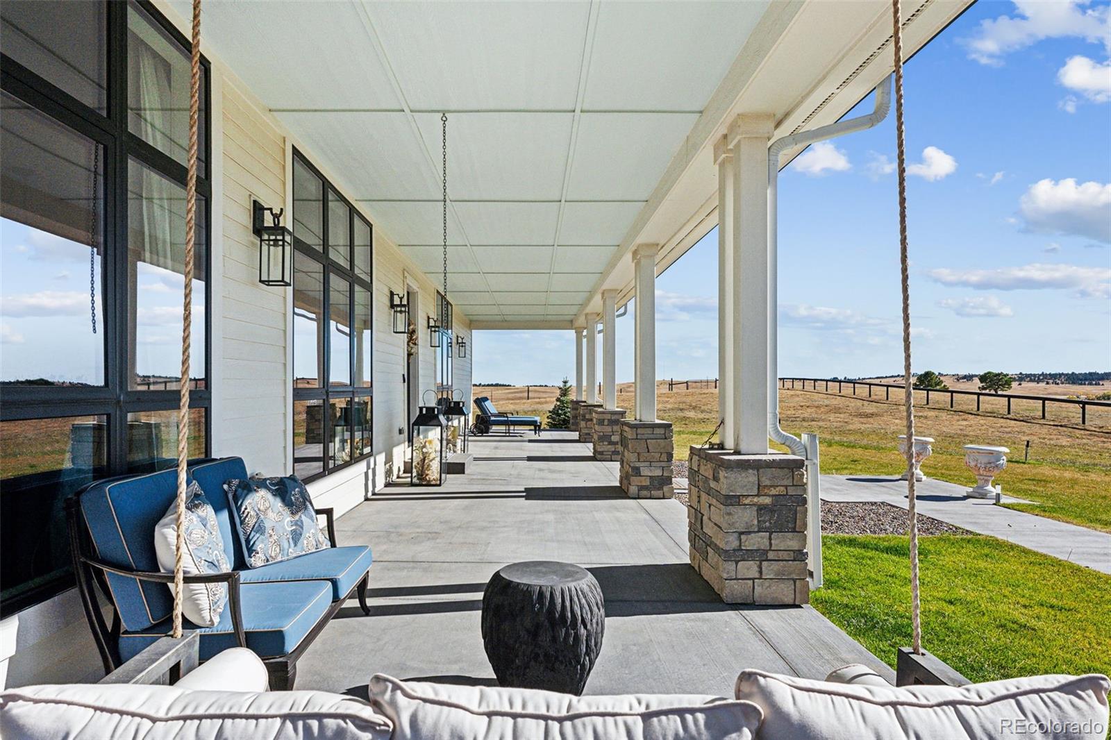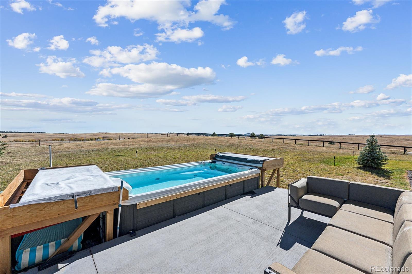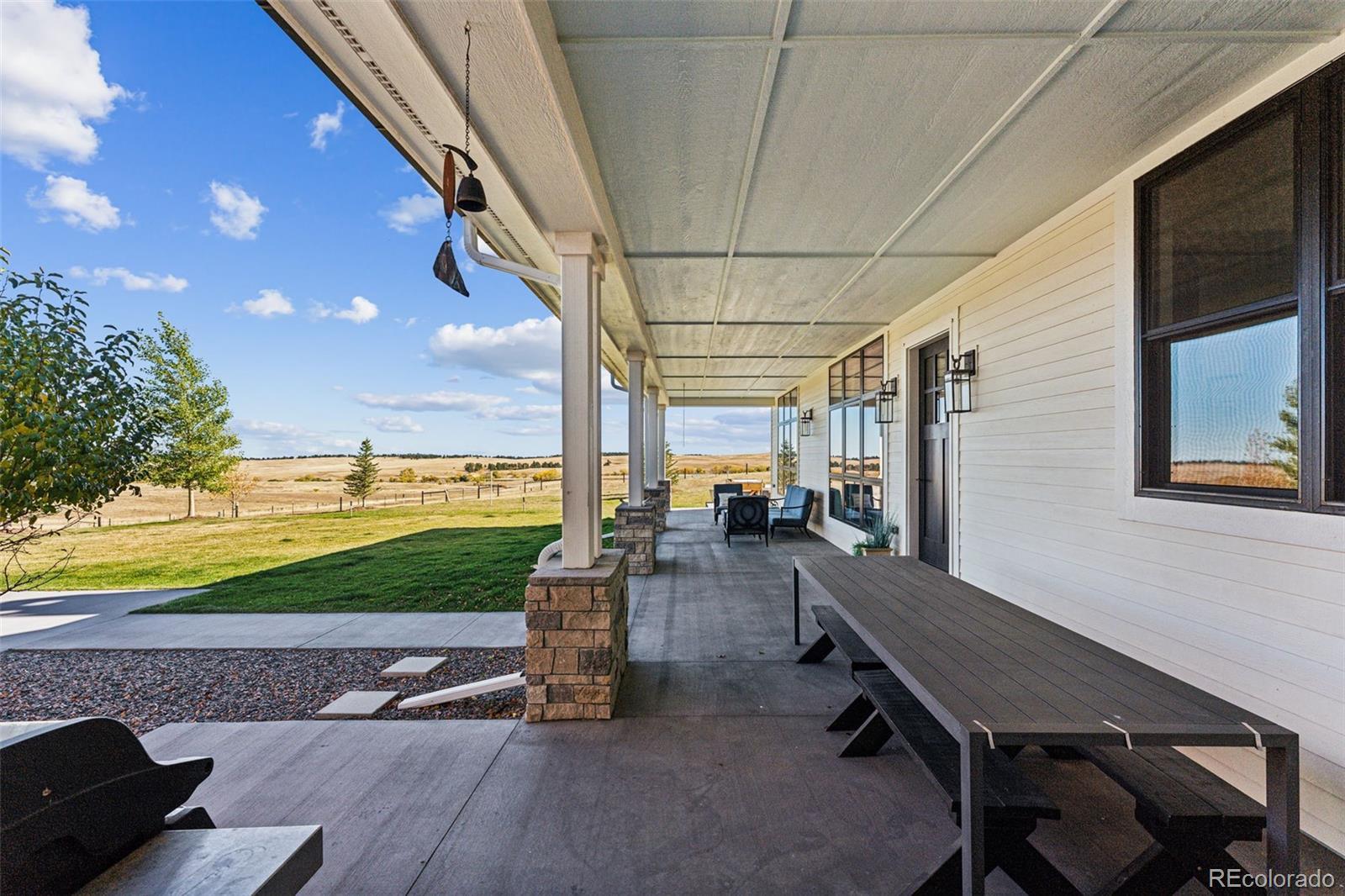 Welcome to 12377 County Road 110 - a stunning 6993 SF, custom-built, estate on 35 picturesque acres. Completed in 2020, this home combines luxury and country living with panoramic views of the countryside and Pikes Peak. Inside you will find high ceilings, expansive windows and natural light create an open but cozy atmosphere. The gourmet kitchen features GE Monogram appliances, custom cabinetry, a spacious island, and a built-in coffee maker. Thoughtfully designed, the pantry, bar, and laundry are out of sight but conveniently located for entertaining. The primary suite is a serene retreat with an extremely well thought out bath. His and her toilet, vanity and dressing areas are connected by a spa-like wet area with soaking tub and large shower. With 7 bedrooms—6 of them en-suite—this home is perfect for hosting family and friends, comfortably sleeping up to 20 adults as currently appointed. Outdoors, enjoy a private shooting range and a heated swim spa that offers planetarium like views of the stars. The fenced yard ensures safety for pets and children, while the larger fenced pastures are ready for livestock and horses. The insulated detached garage offers an exciting opportunity to build your dream equestrian facilities—whether it's a stable, barn, or riding arena, the space is there for your vision. Additional features include a naturally regulated wine cellar, dual tankless water heaters, a backup generator, 500-gallon diesel and gas fuel tanks, and an attached heated garage. The home’s southern exposure keeps snow melted in the winter, the driveway seldom needs plowing, and the breezeway between the garage and mudroom features a hot & cold water faucet perfect for tidying up before entering or washing pets. Located just 15 minutes from downtown Kiowa, 20 minutes from Elizabeth, and an hour from DEN and CO Springs airports, this property offers privacy, luxury, and endless potential. Schedule your private tour today to make this exceptional home yours!