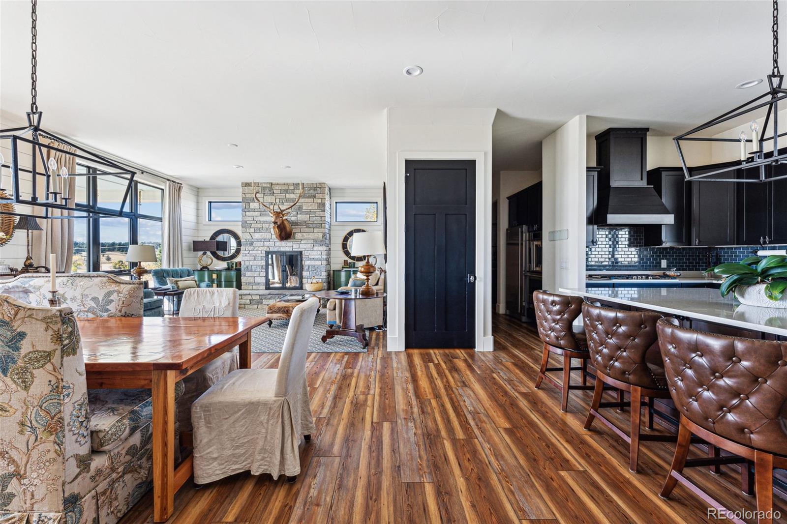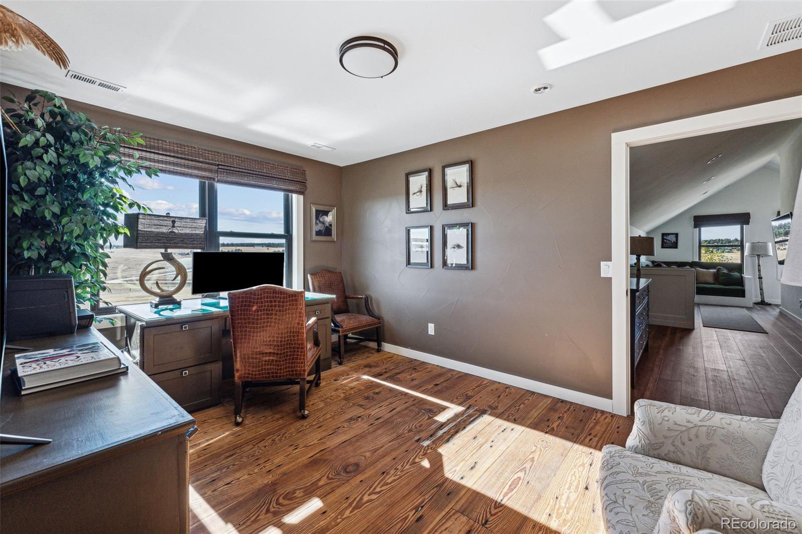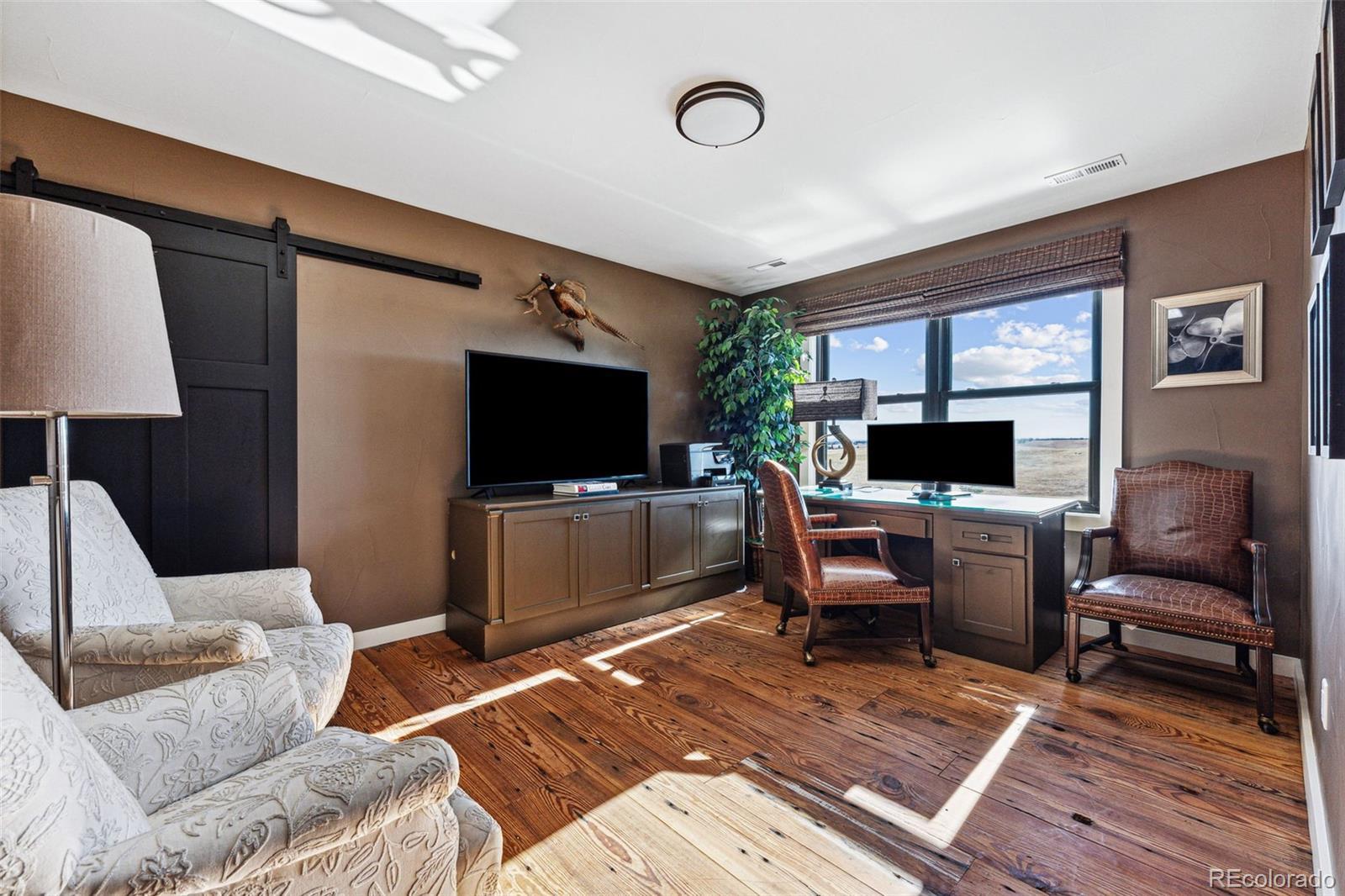 Welcome to 12377 County Road 110 - a stunning 6993 SF, custom-built, estate on 35 picturesque acres. Completed in 2020, this home combines luxury and country living with panoramic views of the countryside and Pikes Peak. Inside you will find high ceilings, expansive windows and natural light create an open but cozy atmosphere. The gourmet kitchen features GE Monogram appliances, custom cabinetry, a spacious island, and a built-in coffee maker. Thoughtfully designed, the pantry, bar, and laundry are out of sight but conveniently located for entertaining. The primary suite is a serene retreat with an extremely well thought out bath. His and her toilet, vanity and dressing areas are connected by a spa-like wet area with soaking tub and large shower. With 7 bedrooms—6 of them en-suite—this home is perfect for hosting family and friends, comfortably sleeping up to 20 adults as currently appointed. Outdoors, enjoy a private shooting range and a heated swim spa that offers planetarium like views of the stars. The fenced yard ensures safety for pets and children, while the larger fenced pastures are ready for livestock and horses. The insulated detached garage offers an exciting opportunity to build your dream equestrian facilities—whether it's a stable, barn, or riding arena, the space is there for your vision. Additional features include a naturally regulated wine cellar, dual tankless water heaters, a backup generator, 500-gallon diesel and gas fuel tanks, and an attached heated garage. The home’s southern exposure keeps snow melted in the winter, the driveway seldom needs plowing, and the breezeway between the garage and mudroom features a hot & cold water faucet perfect for tidying up before entering or washing pets. Located just 15 minutes from downtown Kiowa, 20 minutes from Elizabeth, and an hour from DEN and CO Springs airports, this property offers privacy, luxury, and endless potential. Schedule your private tour today to make this exceptional home yours!