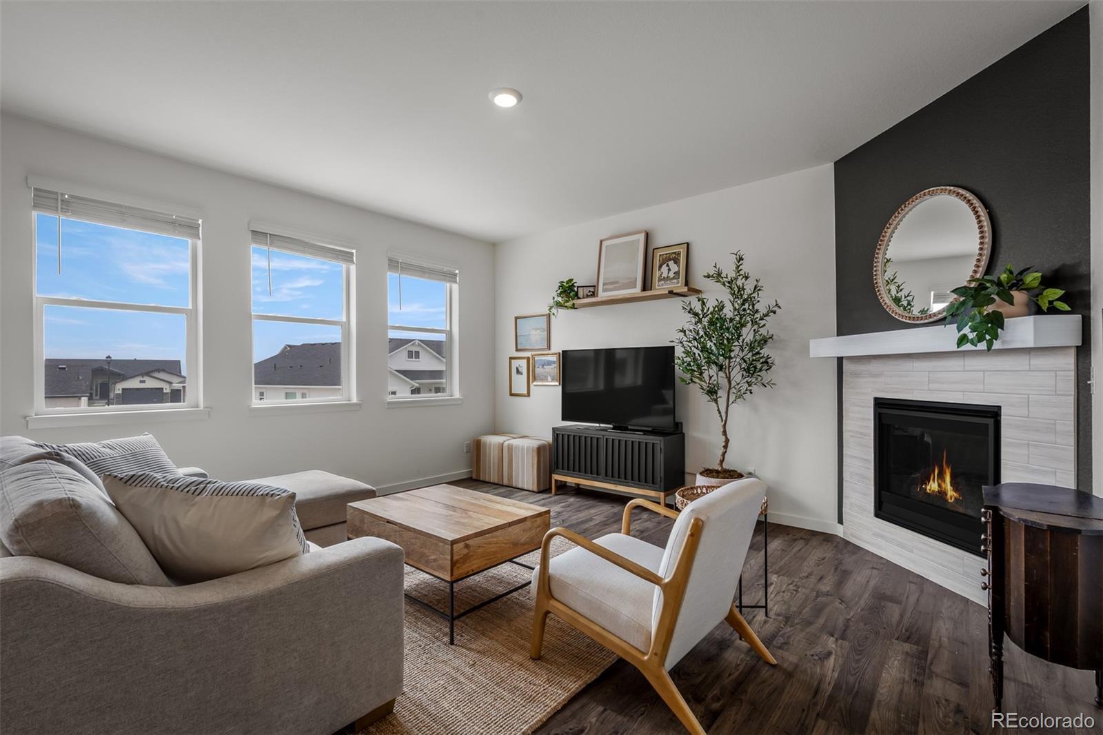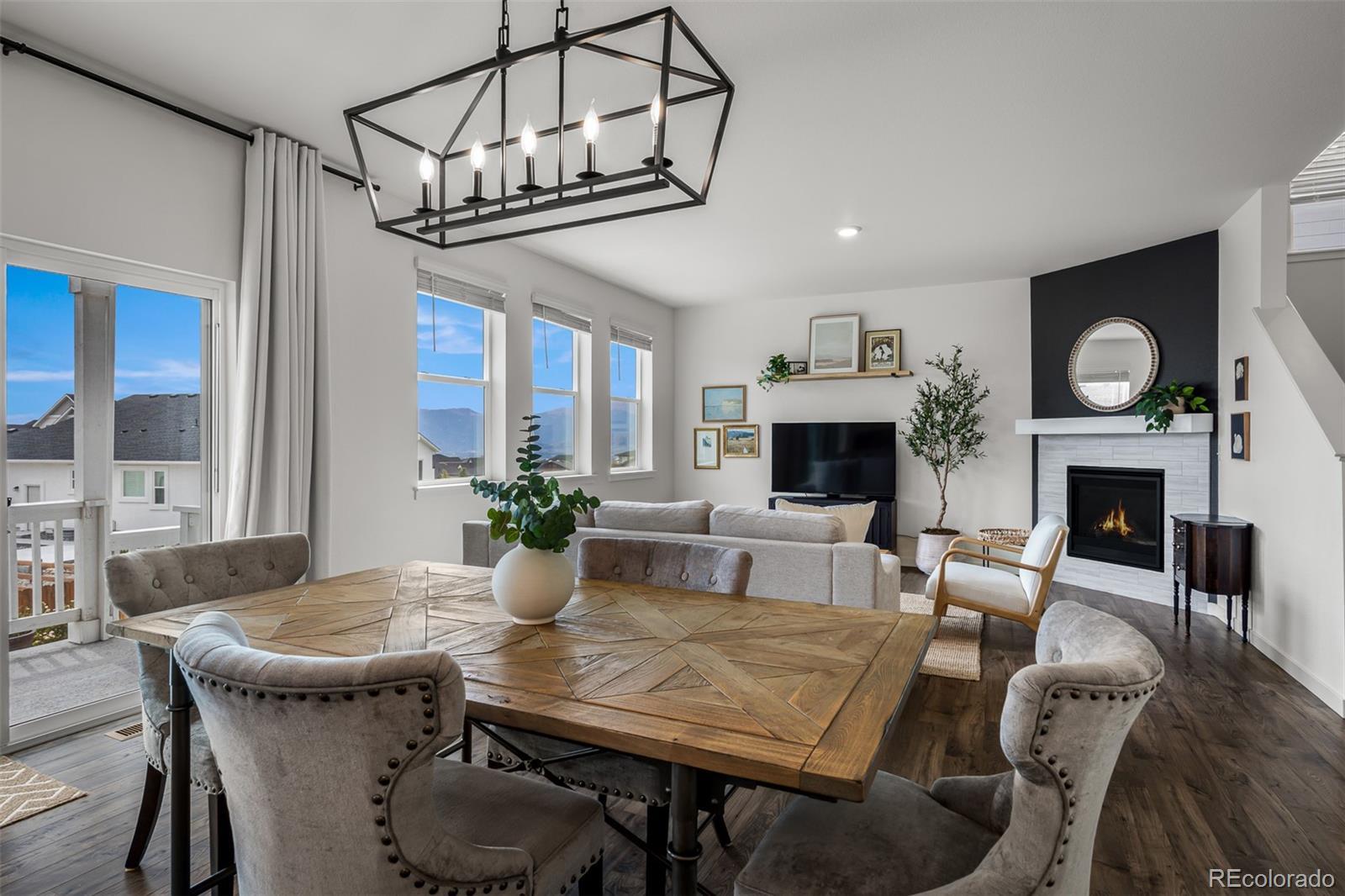 Welcome to this stunning two-story home in the highly sought-after Bradley Ranch neighborhood! Enjoy breathtaking Pikes Peak views and access to top-rated District 20 schools — the best of Colorado living. Step inside from the charming front porch to an elegant open-concept main level with beautiful LVP flooring throughout. The chef’s kitchen features a gas cooktop, solid-surface countertops, and ample cabinetry, flowing seamlessly into the spacious living room anchored by a cozy gas fireplace. The main level, with its extension of the back covered porch and patio showcasing mountain views, is perfect for entertaining. A dedicated office provides an ideal work-from-home setup. Upstairs offers a large loft area perfect for a second living space, playroom, ,media room or multifunctional. The private primary suite captures mountain views and a spa-like bath, while secondary bedrooms provide comfort and flexibility for family or guests. The unfinished basement presents endless possibilities for future expansion — create a home gym, theater, or additional bedrooms to suit your needs. Outdoor living shines with an extended back patio and covered porch, a fully fenced yard, and plenty of room to relax and enjoy the Colorado sunshine. Additional highlights include a three-car garage, washer and dryer included, and thoughtful upgrades throughout. Don’t miss your opportunity to make this beautiful Bradley Ranch home yours — truly one of Colorado’s finest!