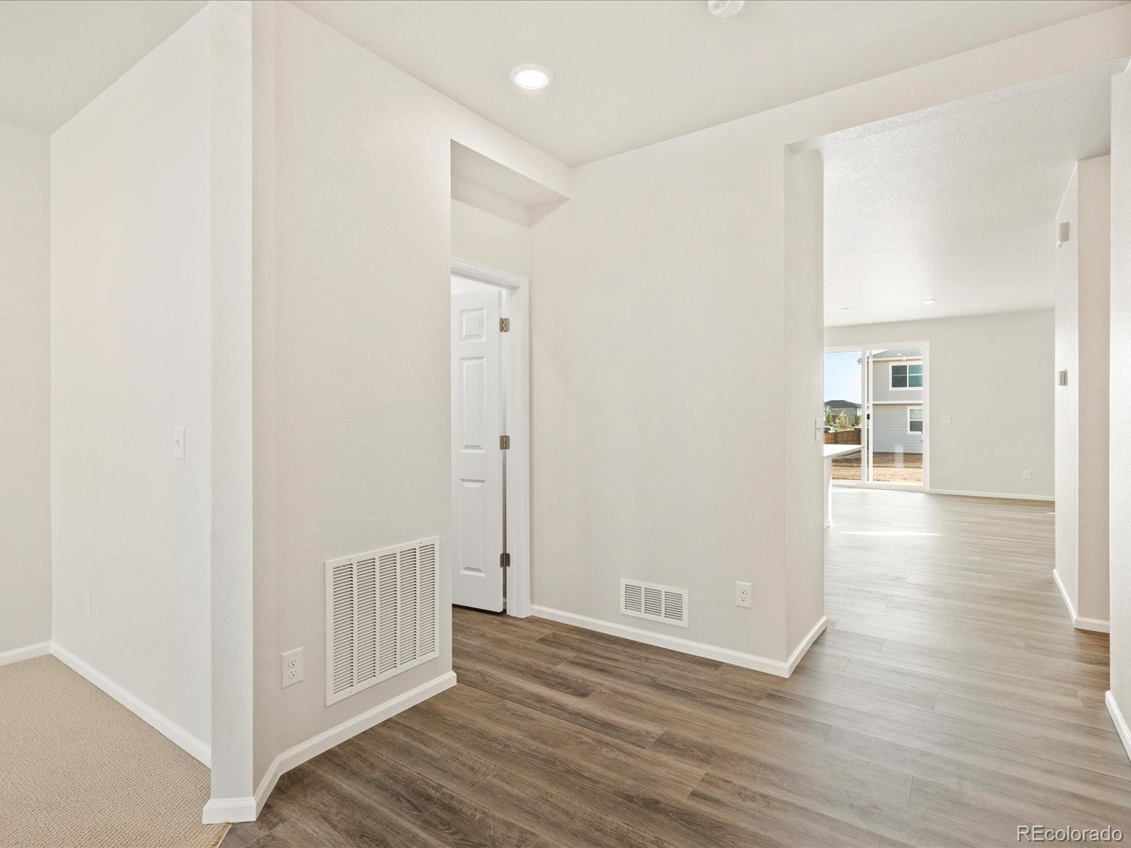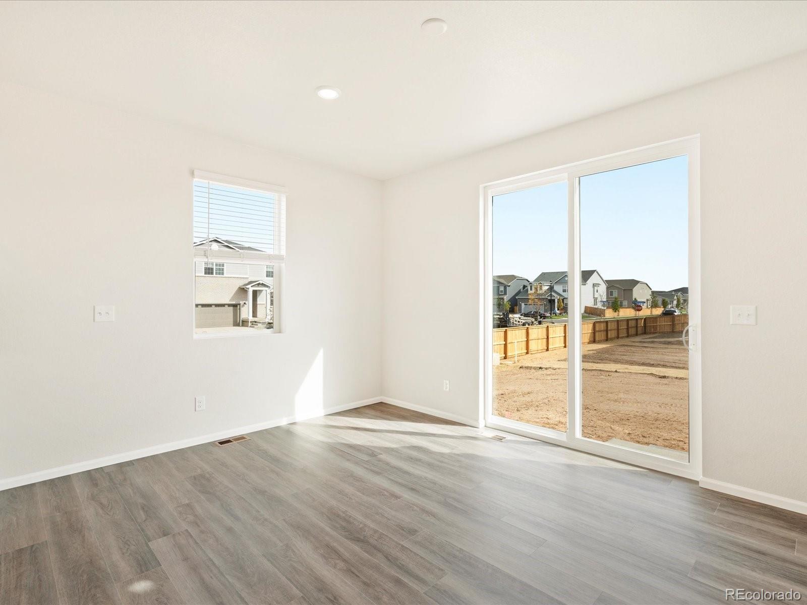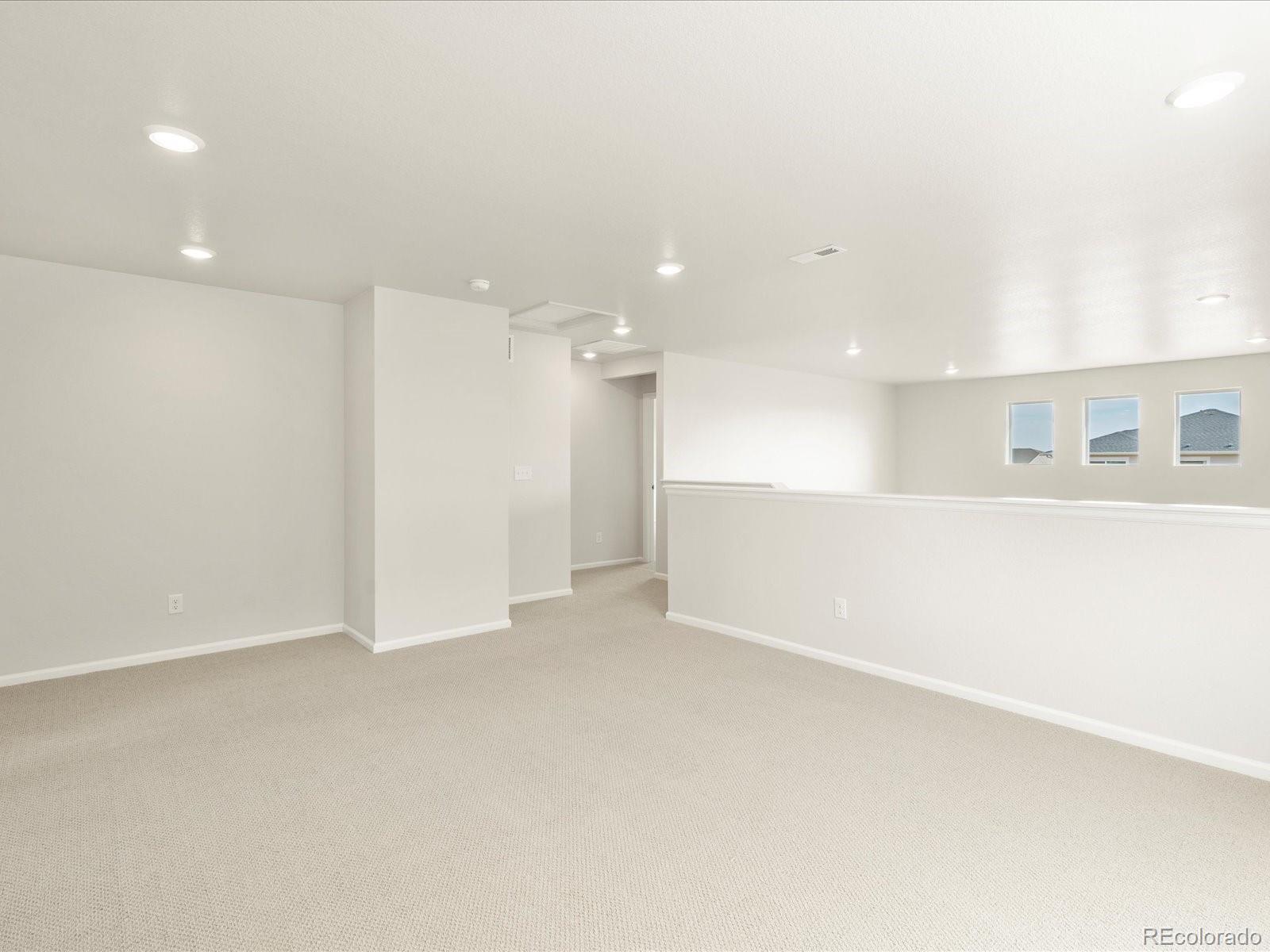 Unfinished Basement for future customization and storage! Welcome to the Bluebell — a thoughtfully designed home where elegance meets everyday comfort. As you step inside, you're greeted by a stunning two-story great room that fills the space with natural light and creates a grand yet inviting atmosphere. The open layout flows seamlessly, perfect for both entertaining and relaxing. Upstairs, convenience is key with a centrally located laundry room, making daily routines a breeze. The spacious primary suite offers a peaceful retreat, complete with ample room to unwind and recharge. With three bedrooms, two and a half bathrooms, and a two-bay garage, this two-story home blends functionality with style, offering everything you need to feel right at home. Meritage Homes is known for quality construction, innovative design, and exceptional energy efficiency—thanks to features like advanced spray foam insulation. With transparent, all-inclusive pricing, every home includes appliances, blinds, and designer upgrades, ensuring a truly move-in ready experience that reflects our commitment to excellence and sustainability. Buffalo Highlands is a welcoming community in Commerce City, ideally located near the Rocky Mountain Arsenal with access to scenic trails and nature. Residents enjoy a short commute to Downtown Denver and DIA, along with nearby attractions like Barr Lake State Park, Buffalo Run Golf Course, and The Shops at Northfield Stapleton. With convenient access to E-470, I-76, and RTD transit, Buffalo Highlands combines comfort, connectivity, and outdoor living.