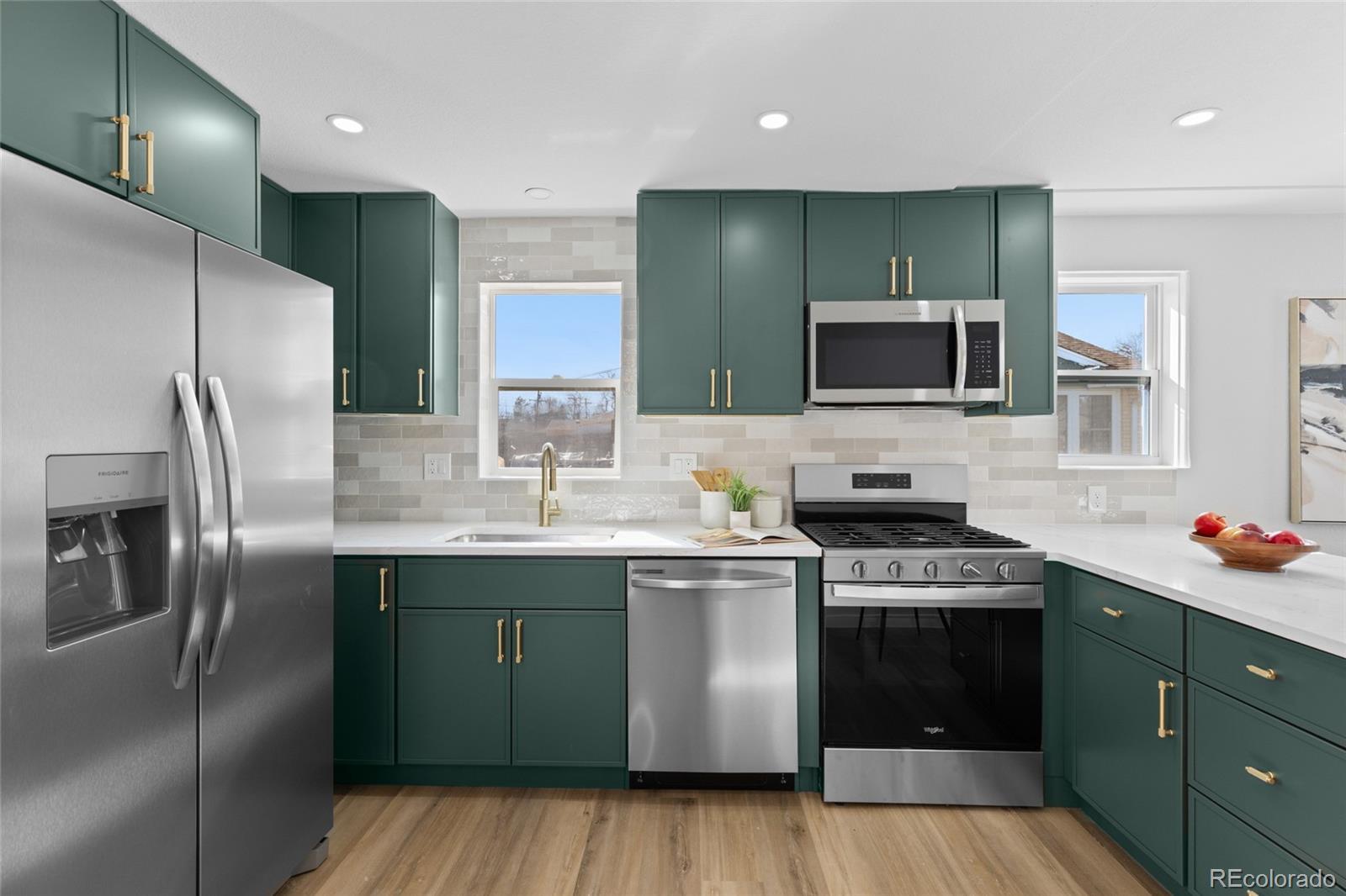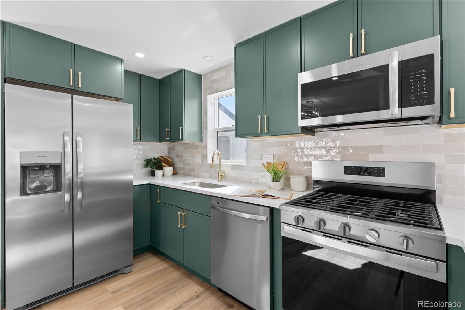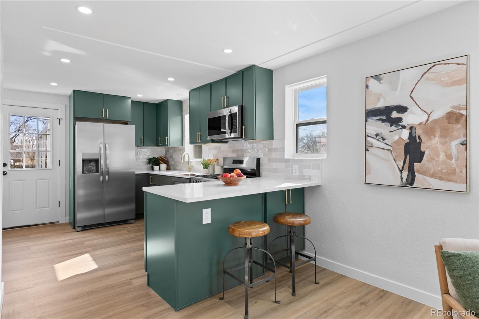 Welcome to your fully renovated 931 SF, 2-bedroom, 1-bathroom home in the sought-after Combs neighborhood of Arvada, CO. This move-in-ready home features an open, light-filled layout designed for modern living. The brand-new chef’s kitchen features custom cabinets, quartz countertops, a spacious eat-in kitchen, and a premium stainless steel appliance package. The main floor highlights an oversized primary suite and additional bedroom share a beautifully renovated full bathroom with all new tub, stylish vanity and updated tile. Additional upgrades include a composite roof with a 5-year warranty, updated flooring throughout, fresh interior paint, modern lighting and fixtures, and new water heater. Covered back patio, great backyard and single car garage round out the exterior bonuses. Every detail of this renovation was carefully considered, ensuring no corner was left untouched. Perfectly situated near the heart of Olde Town Arvada. Offering the ideal blend of comfort, convenience, and Colorado lifestyle, this home places you just minutes from boutique shopping, dining, parks, and light rail access for an easy commute to Denver. Send your clients to our open houses this week Sat/Sun 10-2 pm!