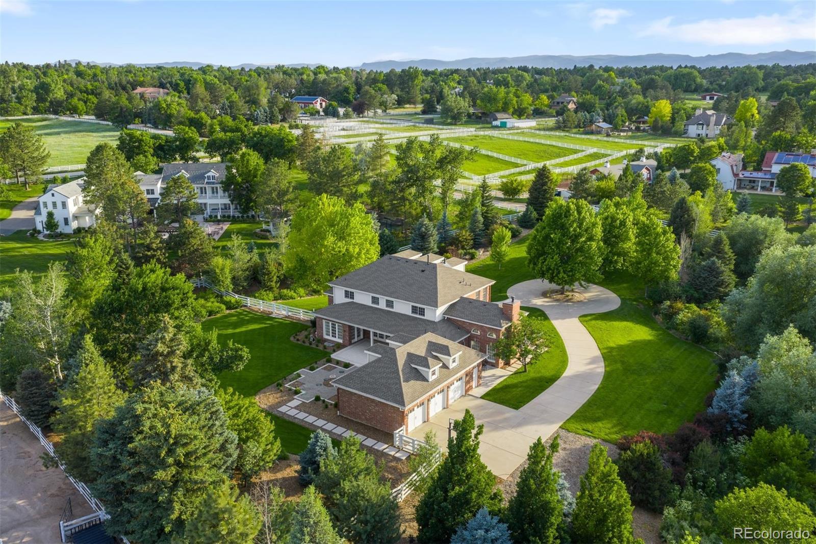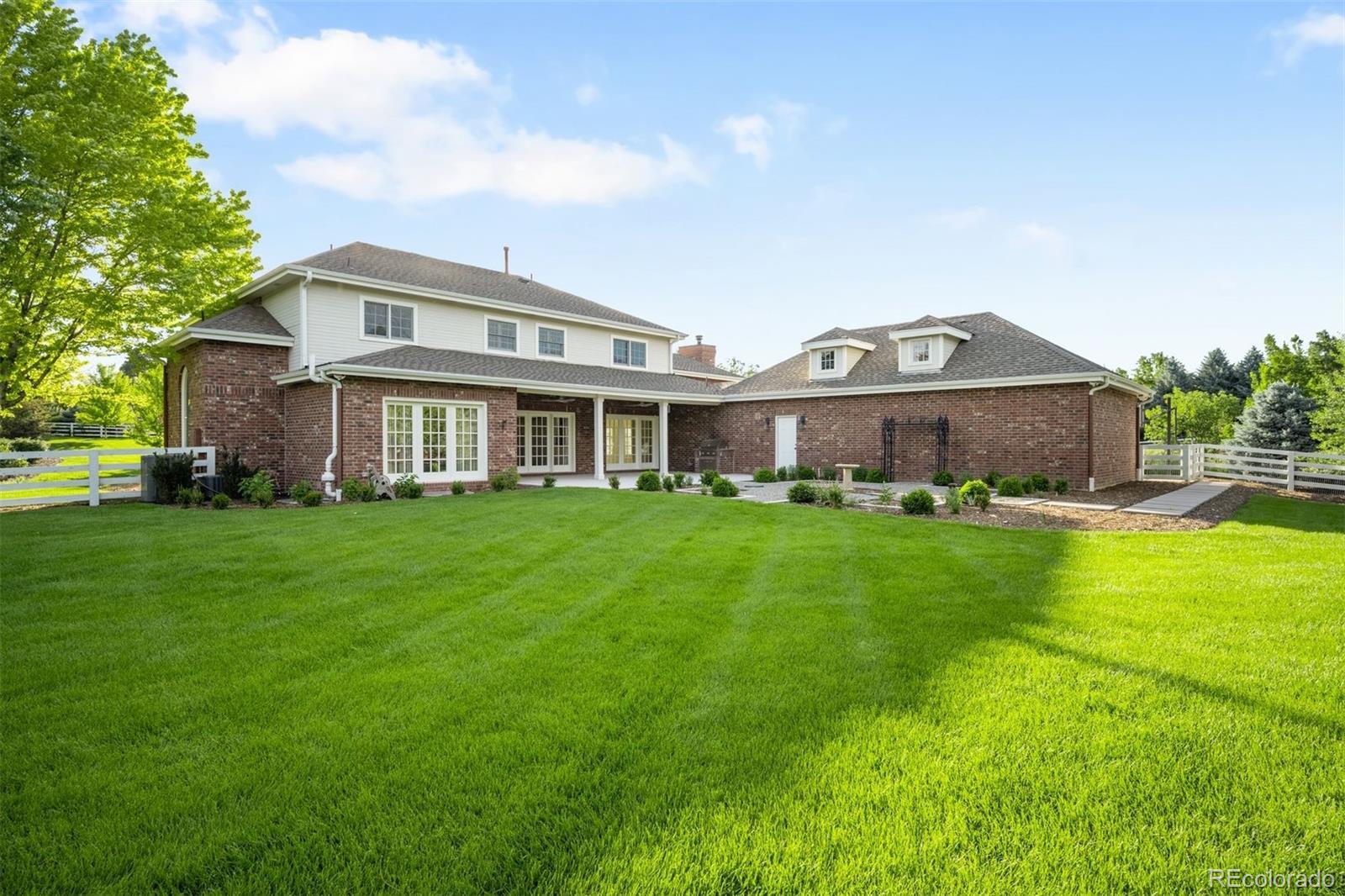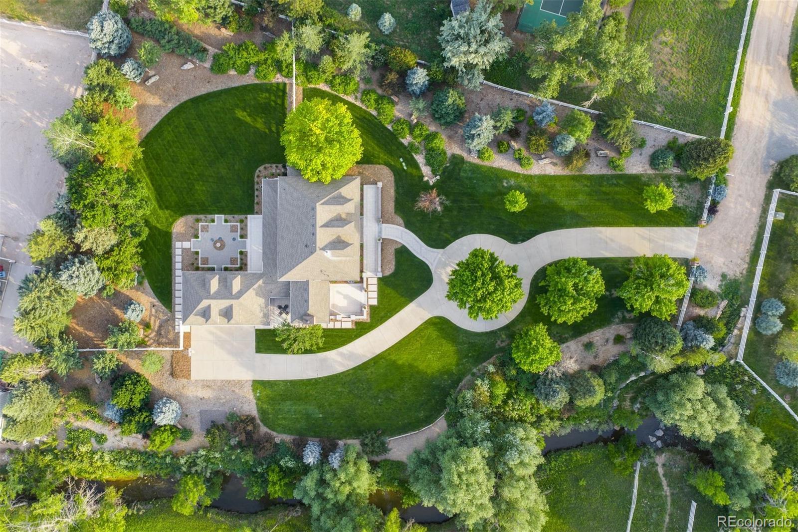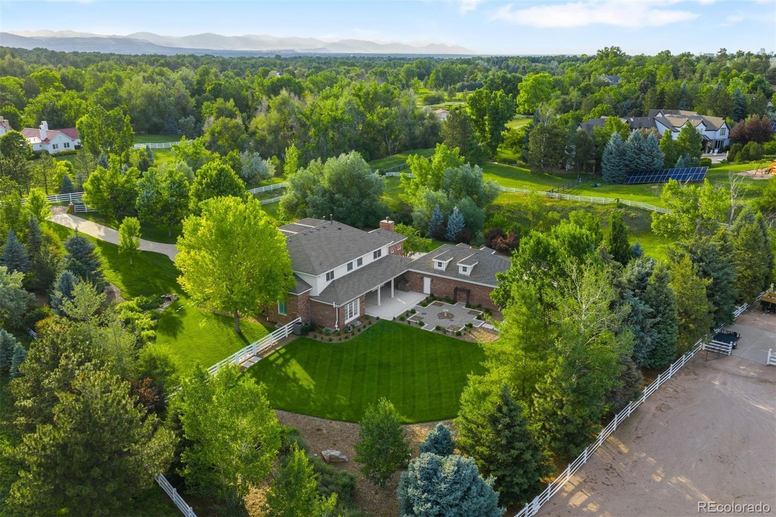 Set on a secluded 2.32-acre lot in the heart of Greenwood Village, this refined Kentucky-farmhouse estate offers quiet elegance, functional design, and rare outdoor serenity. Nestled at the end of a private road and framed by mature trees, Little Dry Creek, and neighboring equestrian properties, this residence invites a sense of retreat without sacrificing proximity to DTC, Cherry Creek, or the High Line Canal. Timeless architecture reveals itself immediately in the grand foyer, where arched doorways, hardwood floors, and classic crown molding set a sophisticated tone. The formal living and dining rooms provide ideal settings for entertaining, while the chef’s kitchen is outfitted with quartzite counters, high-end appliances, and a generous eat-in area for everyday gathering. The adjoining family room features soaring ceilings, a gas fireplace, and natural flagstone floors bathed in light -- an inviting space with a strong connection to the outdoors. A main-level primary suite offers sanctuary, complete with luxurious finishes and private views. The study, with custom built-ins, is thoughtfully placed for remote work or quiet reflection. Upstairs, four bedrooms paired by Jack-and-Jill baths alongside a large recreational room offer both space and flexibility. A spacious mudroom and 3-car garage enhance day-to-day functionality. Step outside to discover expansive lawns, all new hardscaping, and a covered patio perfect for peaceful mornings or evenings with friends. With privacy, beauty, and balance, this home represents a rare opportunity to experience country-style living within reach of Denver’s most dynamic amenities.