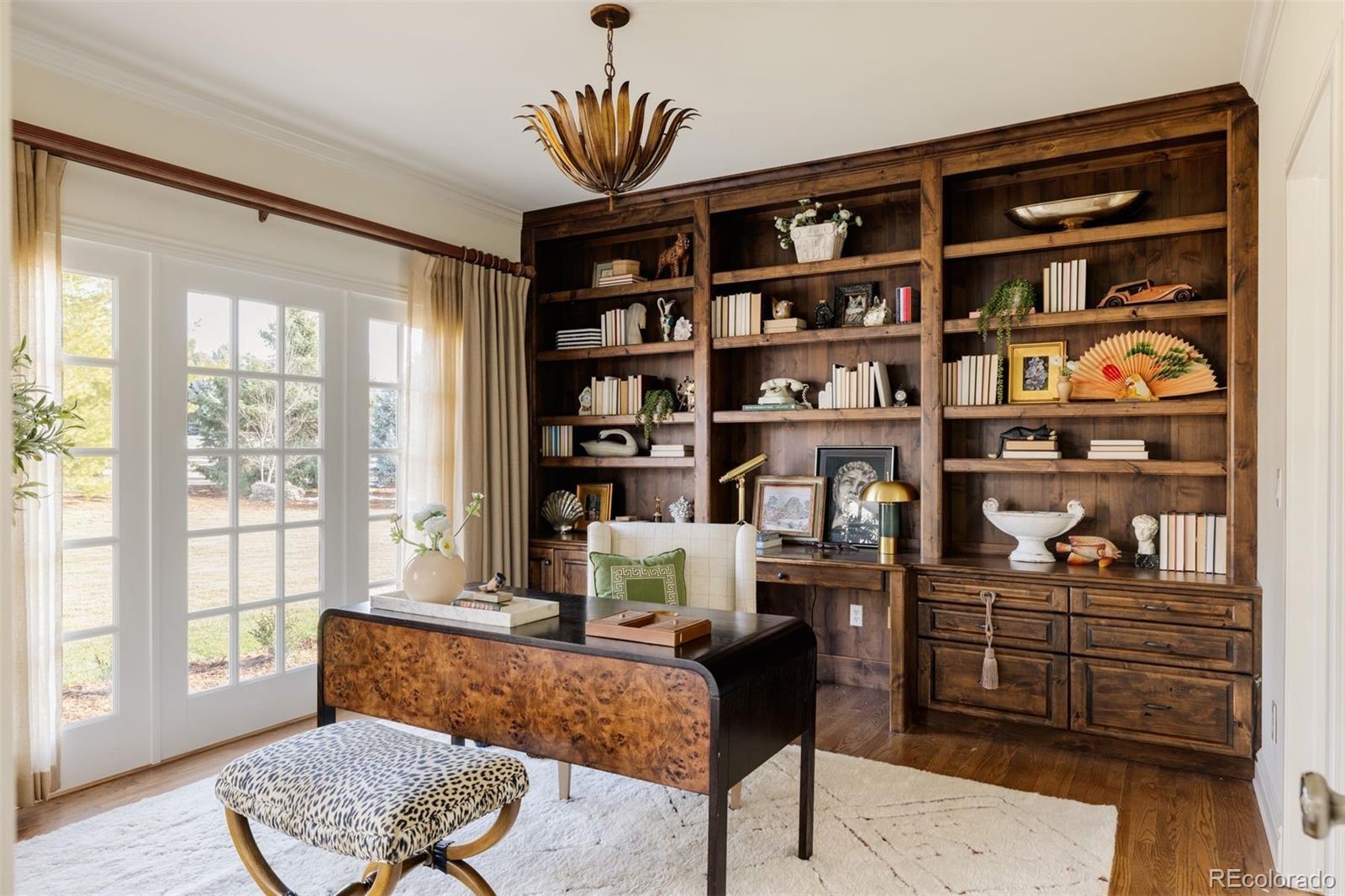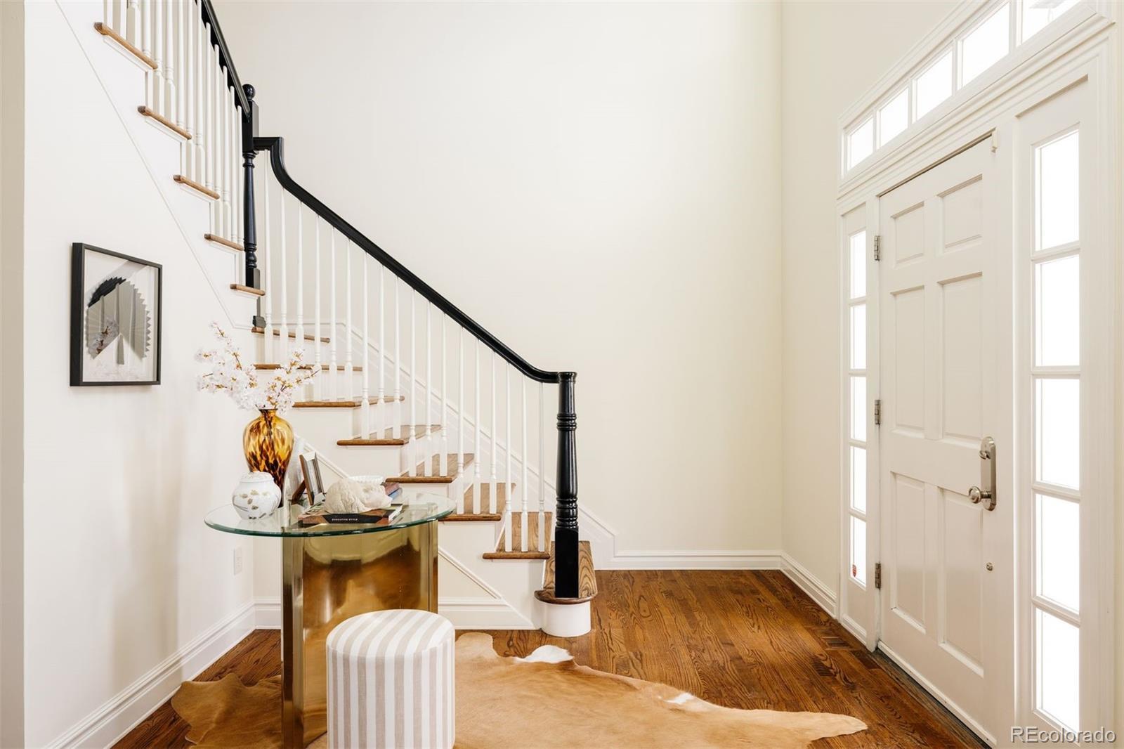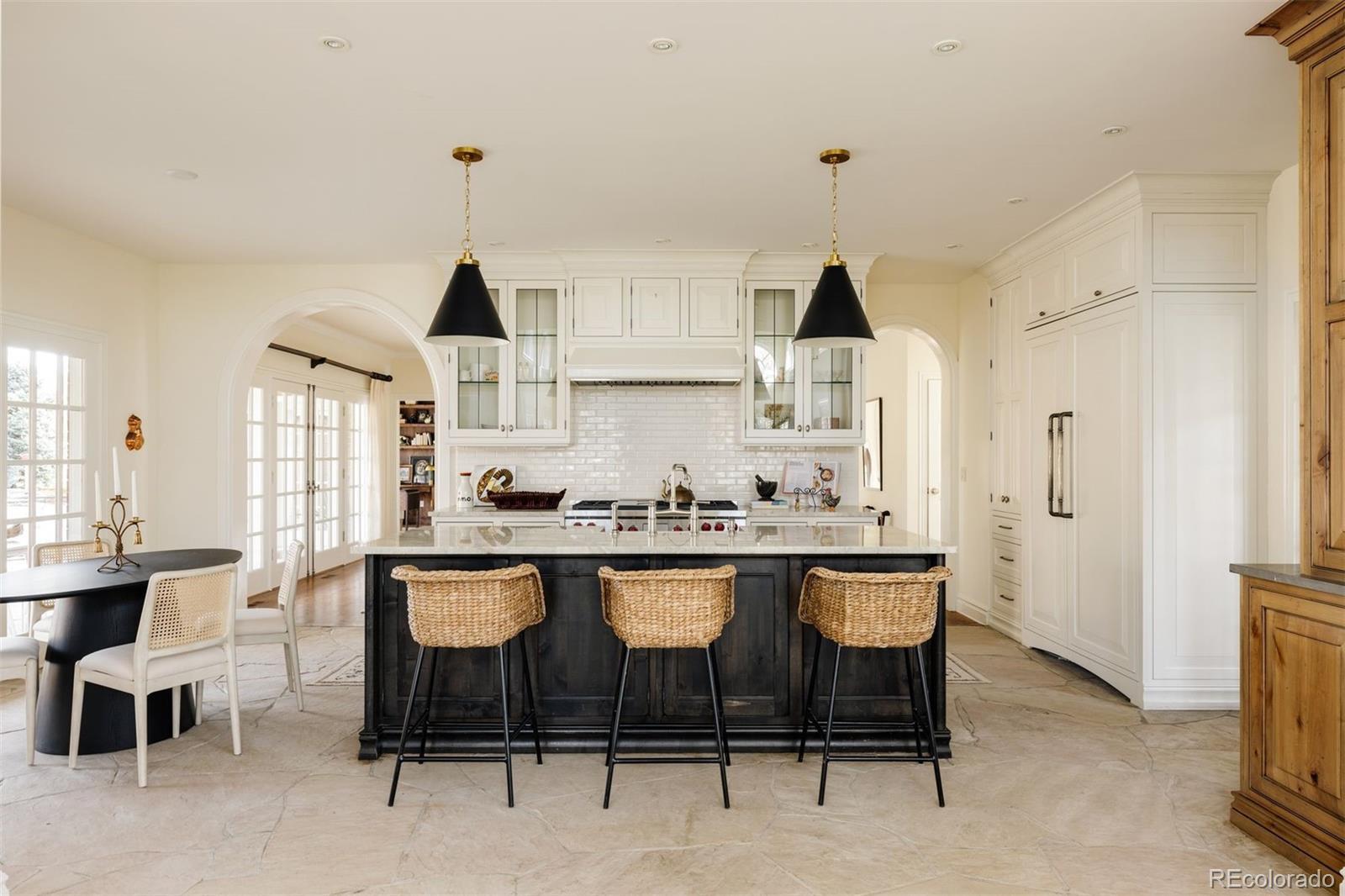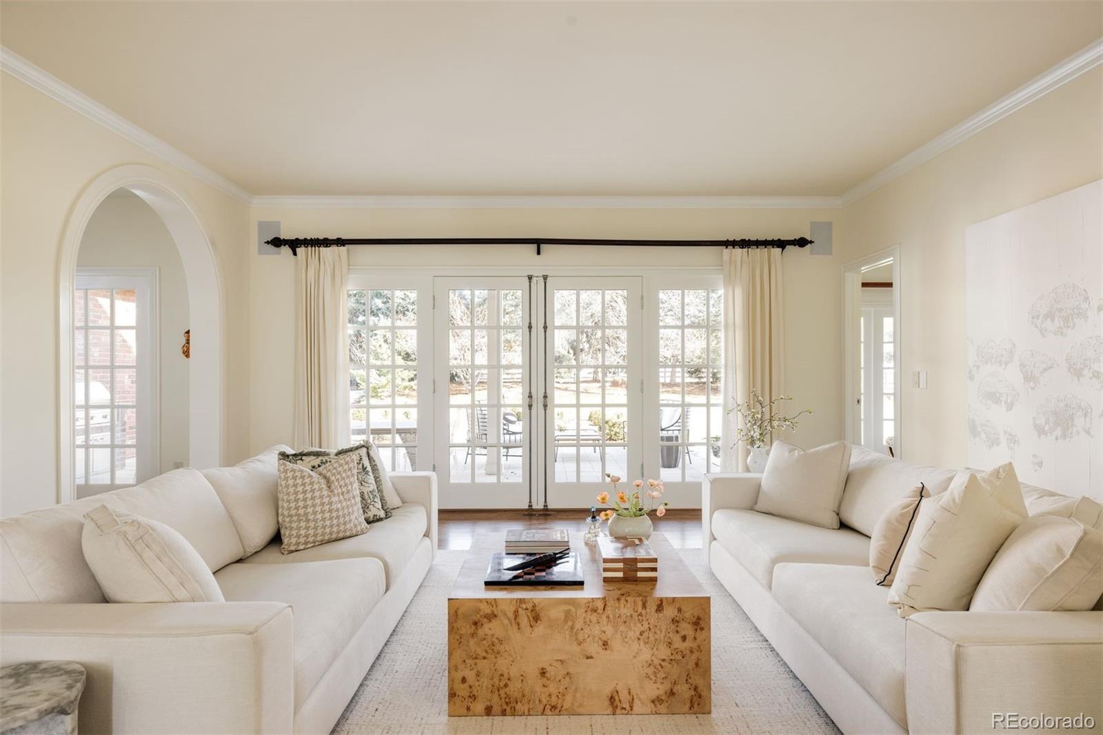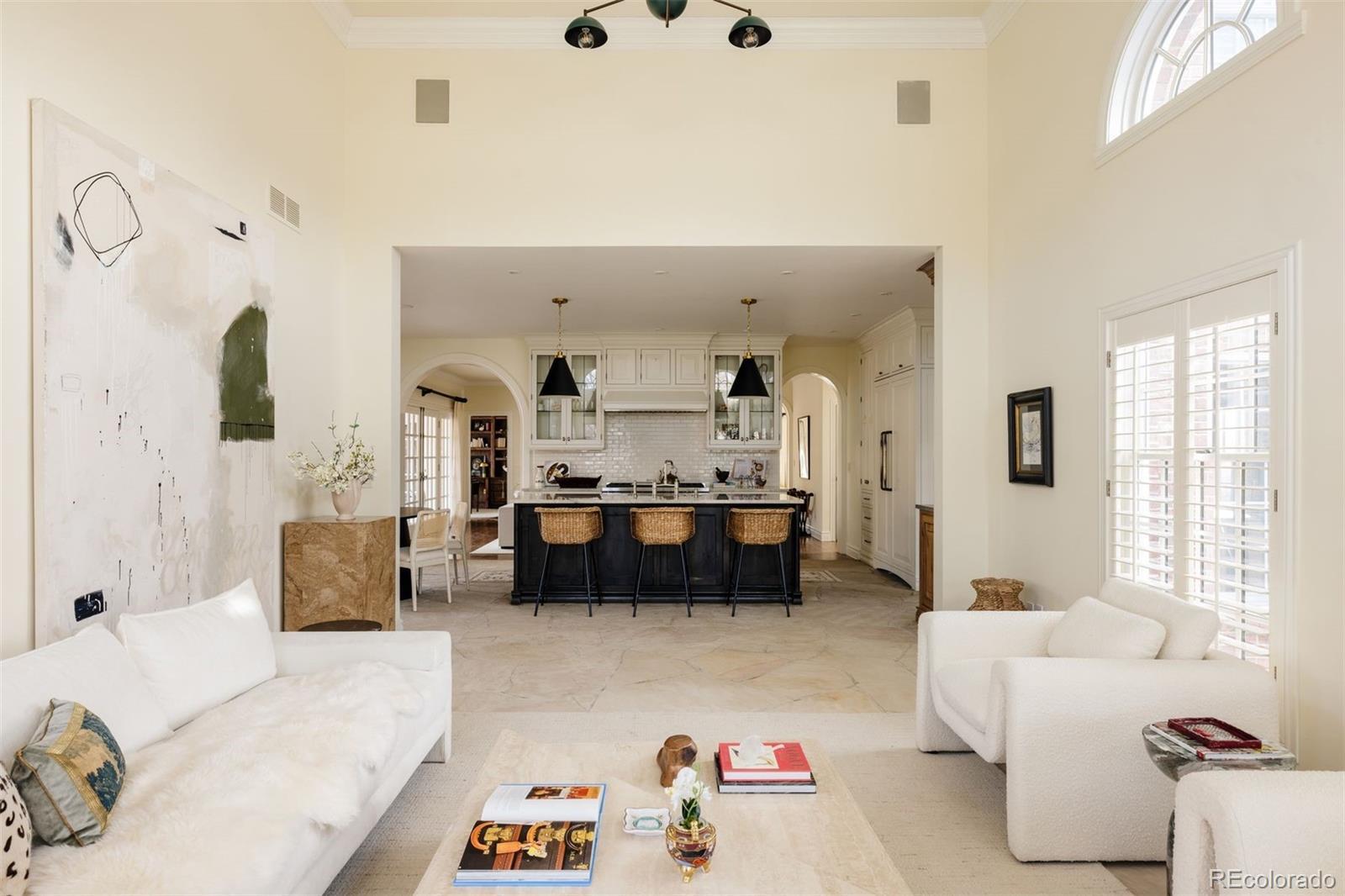 Set on a secluded 2.32-acre lot in the heart of Greenwood Village, this refined Kentucky-farmhouse estate offers quiet elegance, functional design, and rare outdoor serenity. Nestled at the end of a private road and framed by mature trees, Little Dry Creek, and neighboring equestrian properties, this residence invites a sense of retreat without sacrificing proximity to DTC, Cherry Creek, or the High Line Canal. Timeless architecture reveals itself immediately in the grand foyer, where arched doorways, hardwood floors, and classic crown molding set a sophisticated tone. The formal living and dining rooms provide ideal settings for entertaining, while the chef’s kitchen is outfitted with quartzite counters, high-end appliances, and a generous eat-in area for everyday gathering. The adjoining family room features soaring ceilings, a gas fireplace, and natural flagstone floors bathed in light -- an inviting space with a strong connection to the outdoors. A main-level primary suite offers sanctuary, complete with luxurious finishes and private views. The study, with custom built-ins, is thoughtfully placed for remote work or quiet reflection. Upstairs, four bedrooms paired by Jack-and-Jill baths alongside a large recreational room offer both space and flexibility. A spacious mudroom and 3-car garage enhance day-to-day functionality. Step outside to discover expansive lawns, all new hardscaping, and a covered patio perfect for peaceful mornings or evenings with friends. With privacy, beauty, and balance, this home represents a rare opportunity to experience country-style living within reach of Denver’s most dynamic amenities.