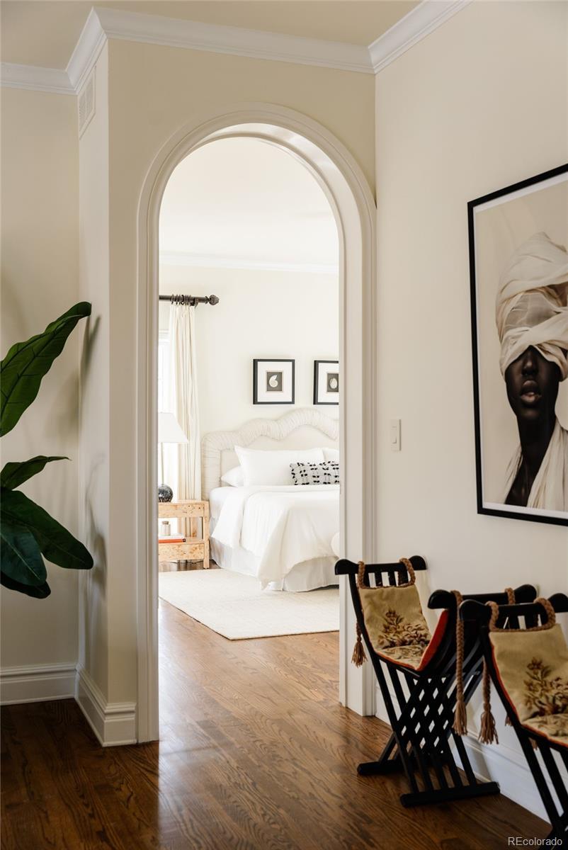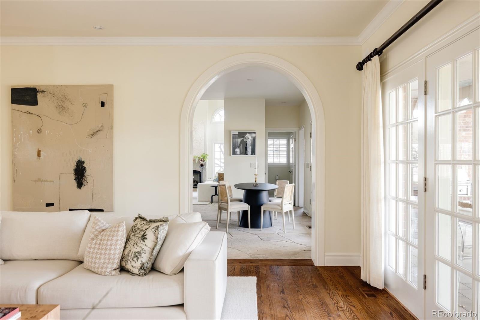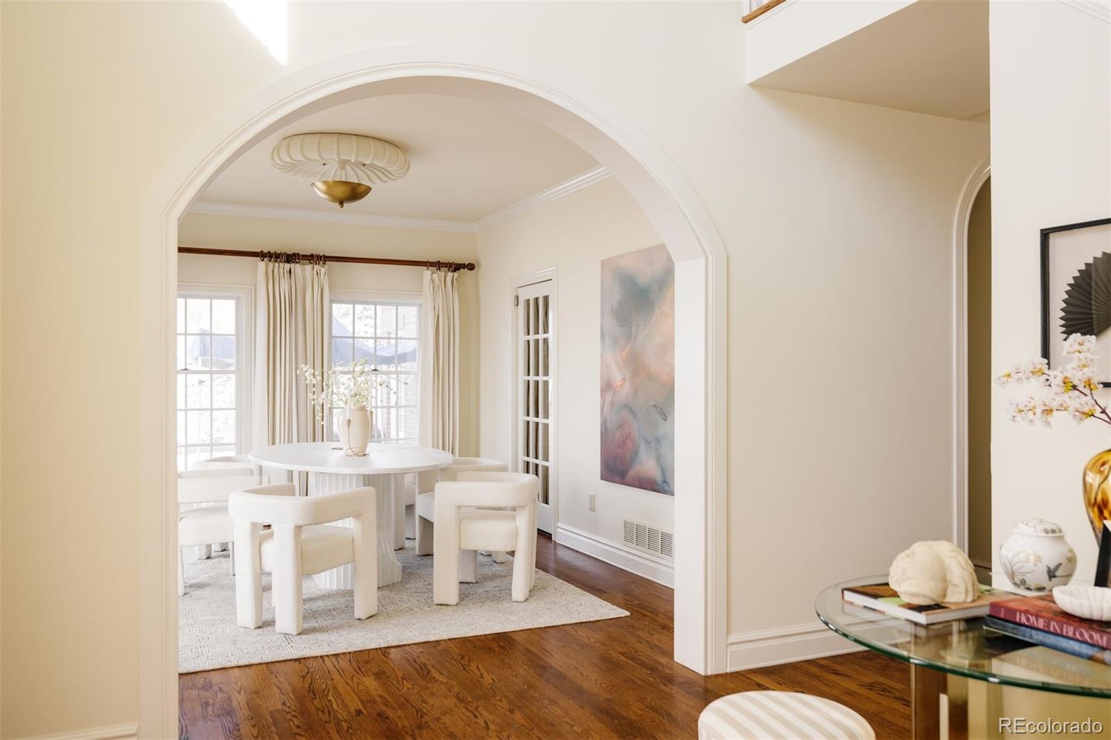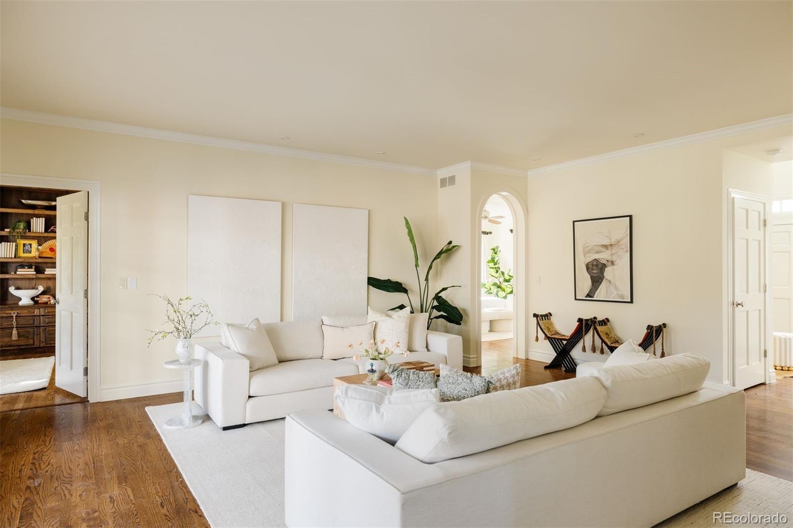 Set on a secluded 2.32-acre lot in the heart of Greenwood Village, this refined Kentucky-farmhouse estate offers quiet elegance, functional design, and rare outdoor serenity. Nestled at the end of a private road and framed by mature trees, Little Dry Creek, and neighboring equestrian properties, this residence invites a sense of retreat without sacrificing proximity to DTC, Cherry Creek, or the High Line Canal. Timeless architecture reveals itself immediately in the grand foyer, where arched doorways, hardwood floors, and classic crown molding set a sophisticated tone. The formal living and dining rooms provide ideal settings for entertaining, while the chef’s kitchen is outfitted with quartzite counters, high-end appliances, and a generous eat-in area for everyday gathering. The adjoining family room features soaring ceilings, a gas fireplace, and natural flagstone floors bathed in light -- an inviting space with a strong connection to the outdoors. A main-level primary suite offers sanctuary, complete with luxurious finishes and private views. The study, with custom built-ins, is thoughtfully placed for remote work or quiet reflection. Upstairs, four bedrooms paired by Jack-and-Jill baths alongside a large recreational room offer both space and flexibility. A spacious mudroom and 3-car garage enhance day-to-day functionality. Step outside to discover expansive lawns, all new hardscaping, and a covered patio perfect for peaceful mornings or evenings with friends. With privacy, beauty, and balance, this home represents a rare opportunity to experience country-style living within reach of Denver’s most dynamic amenities.
