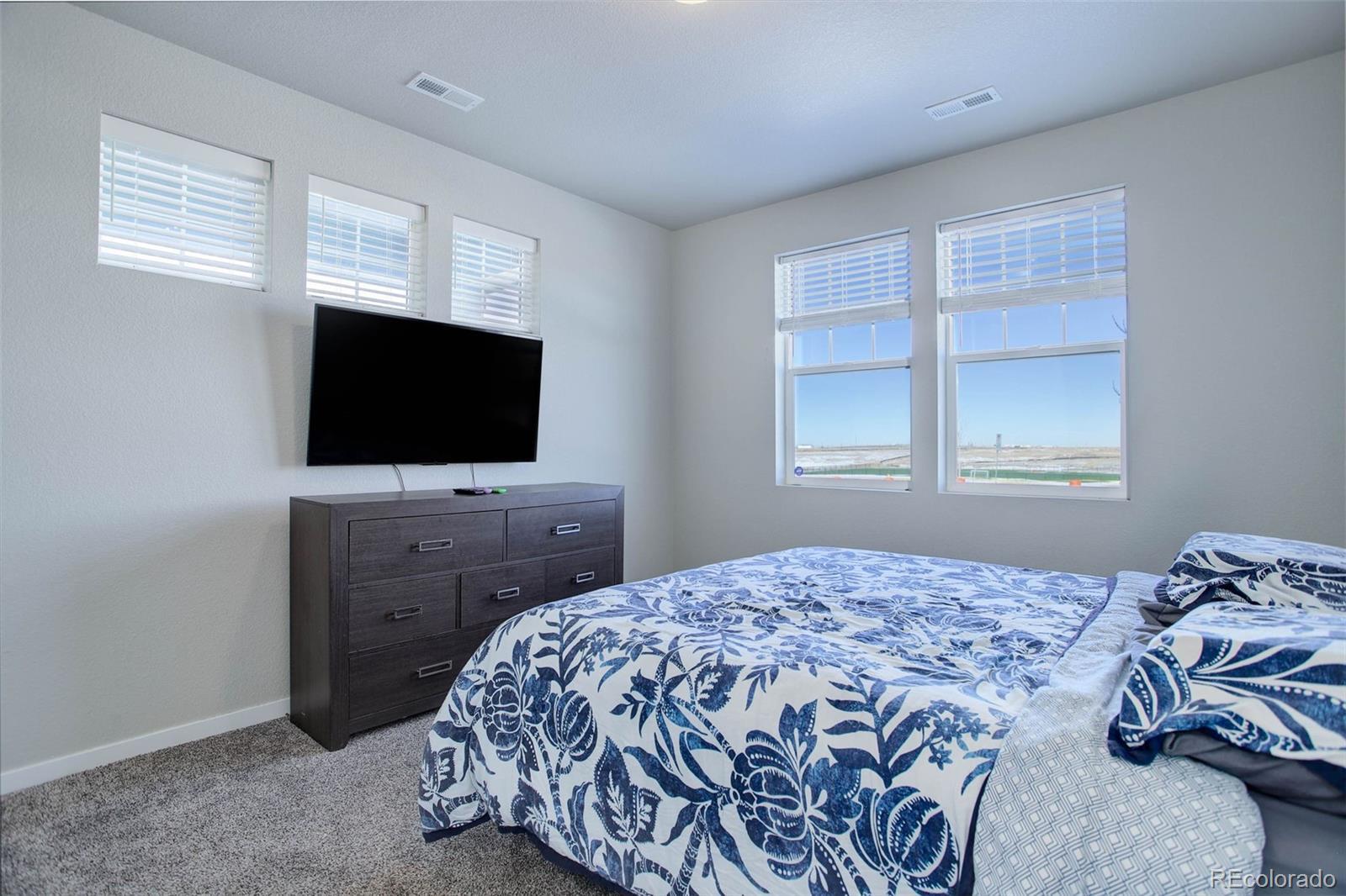 Back on the market! Short sale listed at bank approved price. Please allow extra time for response and closing. Property to be sold as-is. Buyer to verify all information, including HOA, square footage, and condition. All offers must include proof of funds or pre-approval and be submitted with lender-required short sale addenda. Welcome to your dream home! This stunning 4-bedroom, 3-bathroom property offers the perfect blend of modern luxury, thoughtful design, and family-friendly comfort. Nestled in the new community Sky Ranch and directly across the street from Sky Ranch Academy, this meticulously maintained home is move-in ready and waiting for you. Only 20 minutes from Denver International Airport and only 30 minutes to Downtown Denver! Inside, the open floor plan showcases a chef’s kitchen with stainless steel appliances, a spacious island, and ample storage—perfect for culinary enthusiasts and entertainers alike. The main-floor primary suite offers a private retreat, complete with an en suite bathroom featuring dual sinks and premium finishes. Upstairs, a versatile loft space provides endless possibilities, whether you need a game room, home office, or relaxation area. Natural light pours through the large windows in every room, enhancing the home’s welcoming atmosphere. Additional conveniences include a dedicated laundry room, an attached two-car garage, and a covered back patio that opens to a beautifully landscaped yard, ideal for outdoor gatherings or quiet evenings under the stars. With gorgeous curb appeal, contemporary landscaping, and proximity to brand new schools, this home is the perfect package of convenience and style. Don’t miss your chance to make it yours, schedule a showing today!