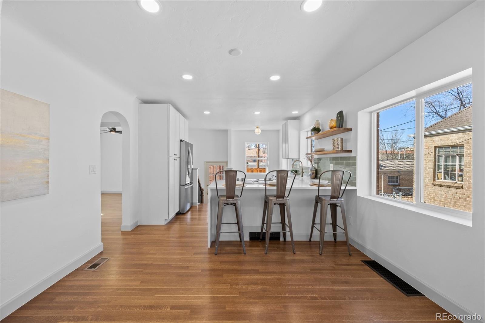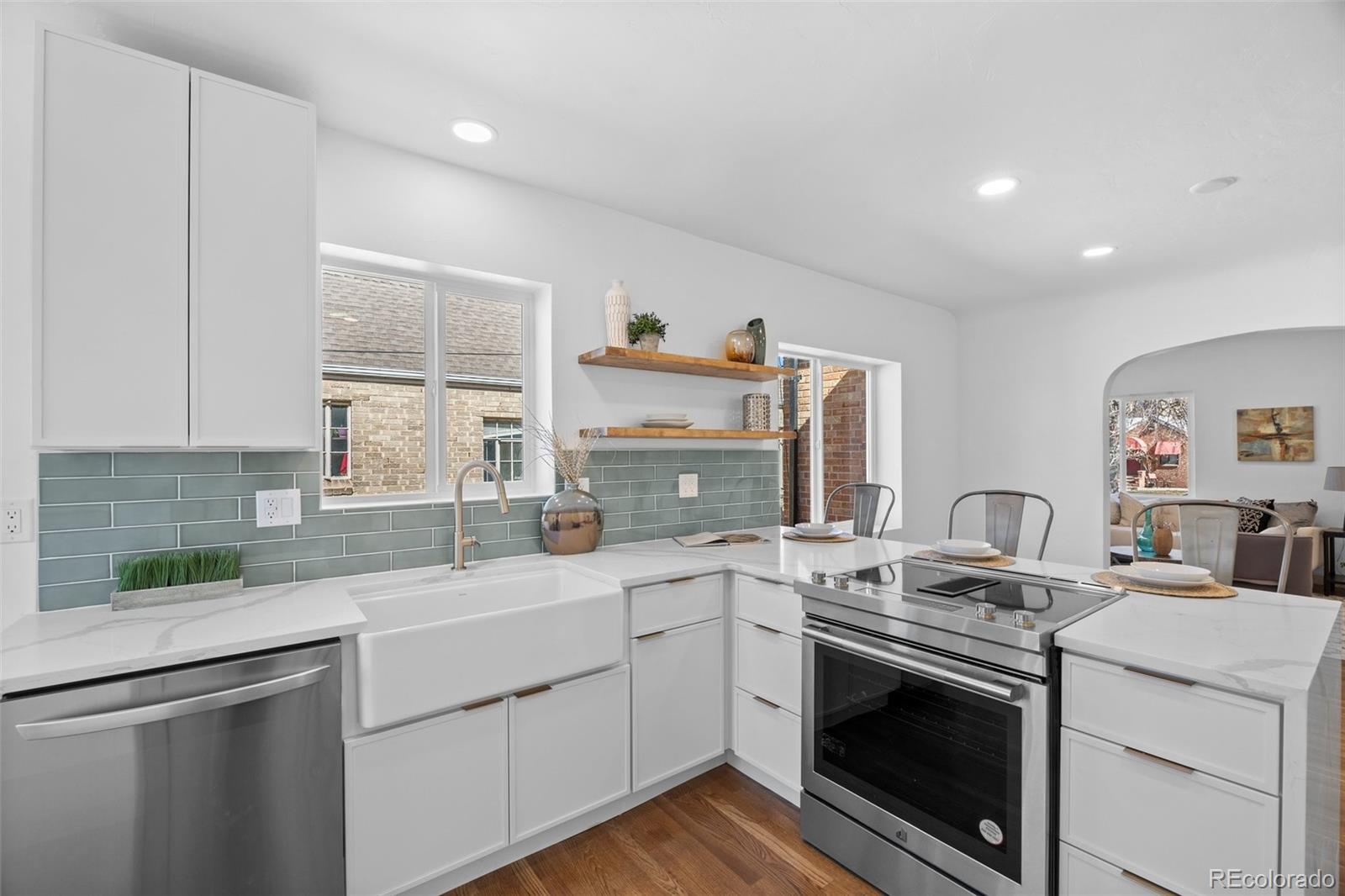 PRICE IMPROVED! Nestled in Denver’s sought-after Hale neighborhood, this beautifully updated 4-bed, 2-bath Tudor is the perfect blend of charm and modern convenience! With over 2,000 sqft of living space, this home is bathed in natural light and features stunning hardwood floors throughout the main level. The open-concept kitchen is a chef’s dream, boasting brand-new soft-close cabinets, sleek quartz countertops, an eat-in bar, and plenty of room for a dining table. Outfitted with top-of-the-line stainless steel LG appliances, this kitchen is ready to impress! The main level offers two spacious bedrooms and a stylish full bathroom, while the lower level features a massive flex space, two additional generously sized bedrooms, and another beautifully updated bathroom. Step outside to a large backyard, perfect for entertaining, with a detached two-car garage for all your storage needs. Located just minutes from some of Denver’s best restaurants and parks, this home has everything you’ve been looking for. Don’t miss out—schedule your showing today!