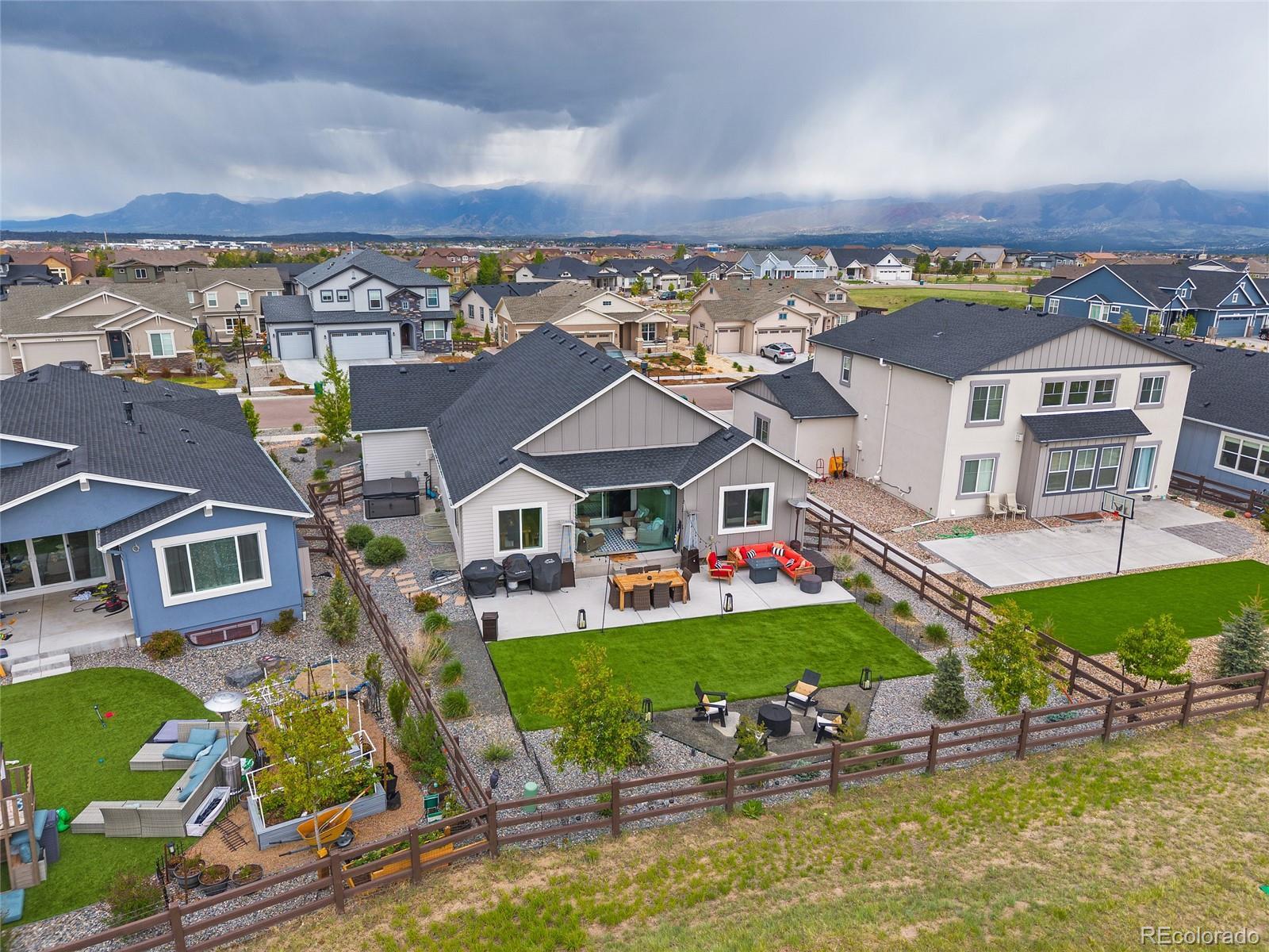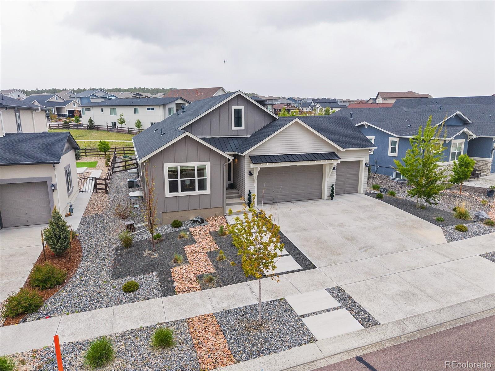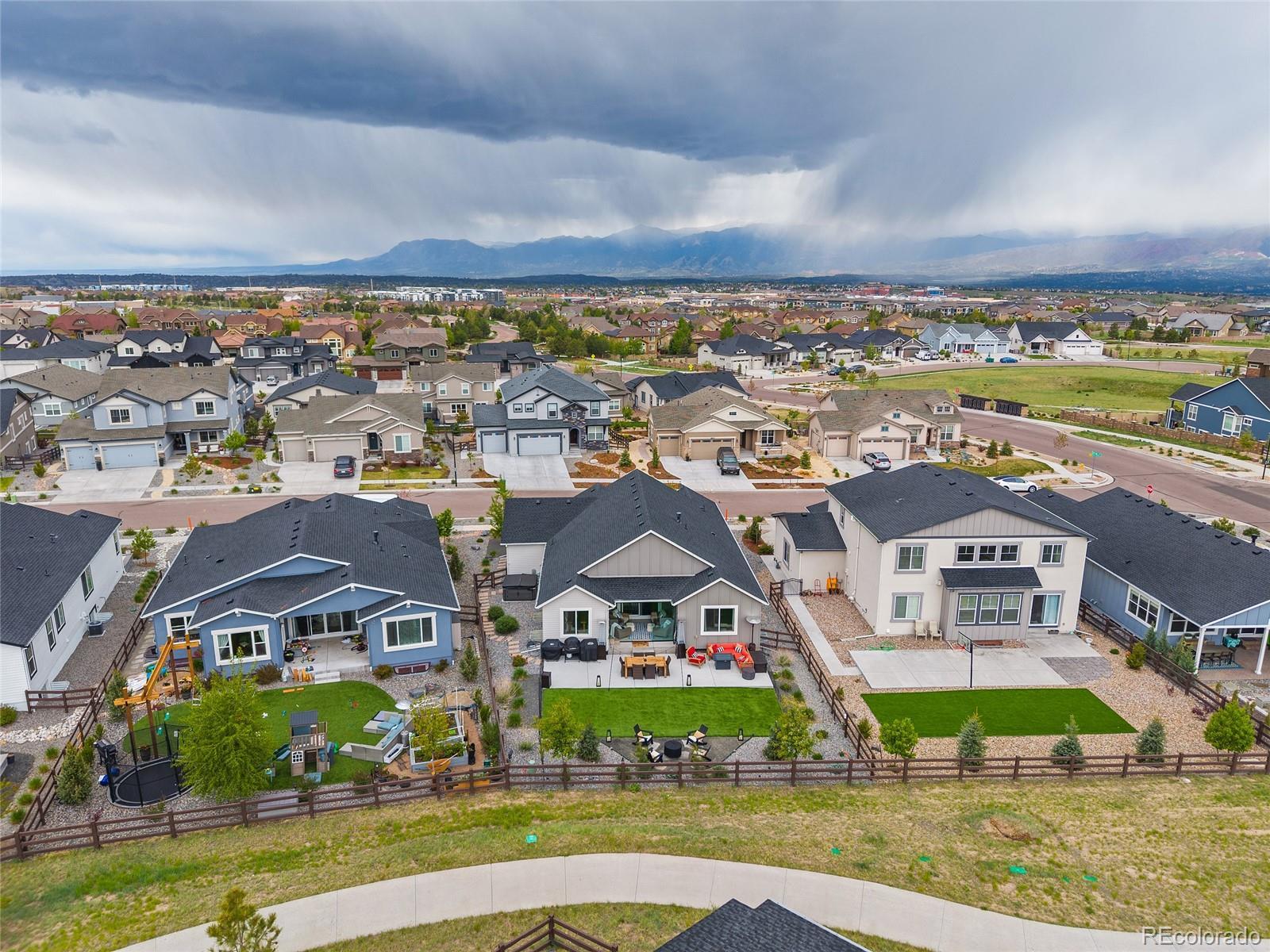 Exquisite Ranch-Style Home in Cordera | Backs to Open Space | District 20 Schools Tucked away on a peaceful cul-de-sac in the coveted Cordera community, this semi-custom Toll Brothers Oxford ranch plan offers 3,574 sq. ft. of refined living. Built in 2021 and backing to open space, this 4-bedroom, 3-bathroom home blends privacy, elegance, and convenience. The home also offers the potential to add a 5th bedroom. The great room boasts 10-ft ceilings, a gas fireplace with tile surround, custom wood mantle, and shiplap accent wall. The gourmet kitchen features quartz countertops, a large island, stainless steel appliances, a gas range, maple shaker cabinetry with upgraded hardware, a built-in microwave, and pantry. The adjacent dining area shines with natural light, oak hardwood flooring, and a modern chandelier. Retreat to the vaulted primary suite offering a spa-like bath with quartz counters, oversized shower with glass enclosure, linen closet, and a walk-in closet with custom built-ins. A main-level secondary bedroom and full bath offer flexible use, while the finished basement includes two additional bedrooms, a full bath, and a spacious family room with 9-ft ceilings. Additional features include beautiful oak hardwood floors, custom closet systems throughout, and a professionally enclosed patio with wind-resistant glass doors—perfect for year-round enjoyment. The basement has been upgraded with a sump pump and French drain system for added peace of mind. Enjoy all Cordera offers: a community center, fitness facility, pool, parks, trails, and more. Walking distance to Chinook Trail Elementary, and minutes from Timberview MS, Pine Creek HS, major roads, USAFA, and shopping. HOA is $123/month and includes covenant enforcement, management, and trash removal. This exceptional home is the perfect blend of thoughtful design, premium finishes, and prime location.