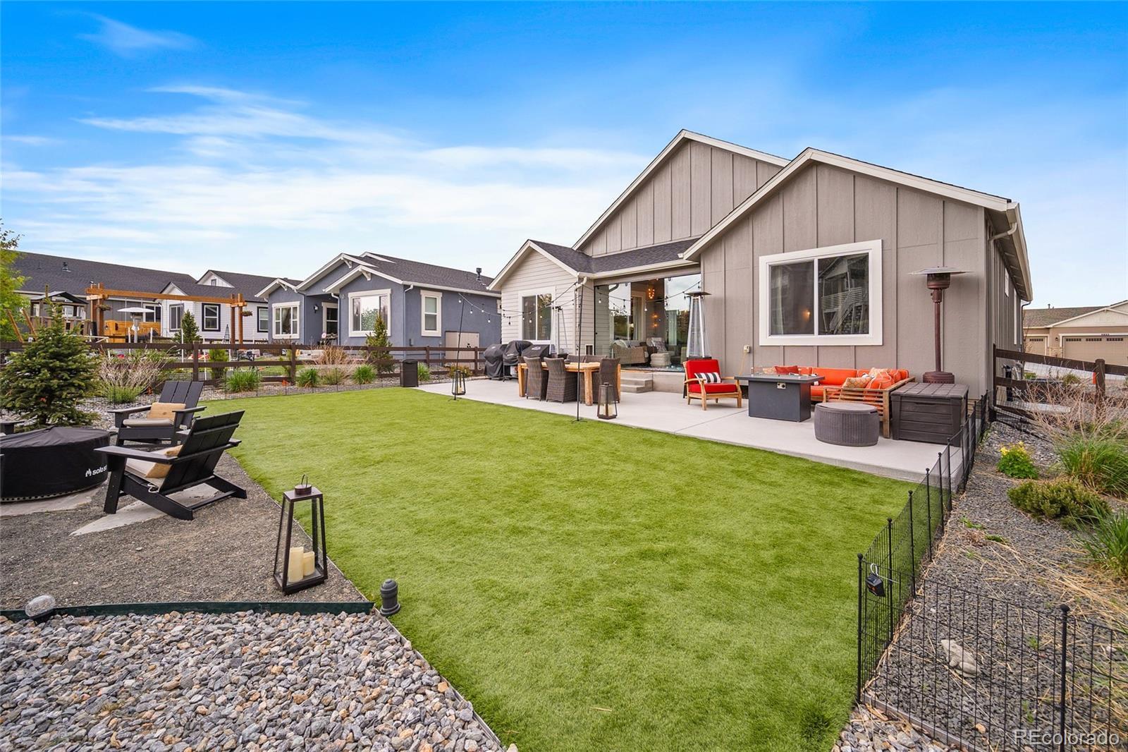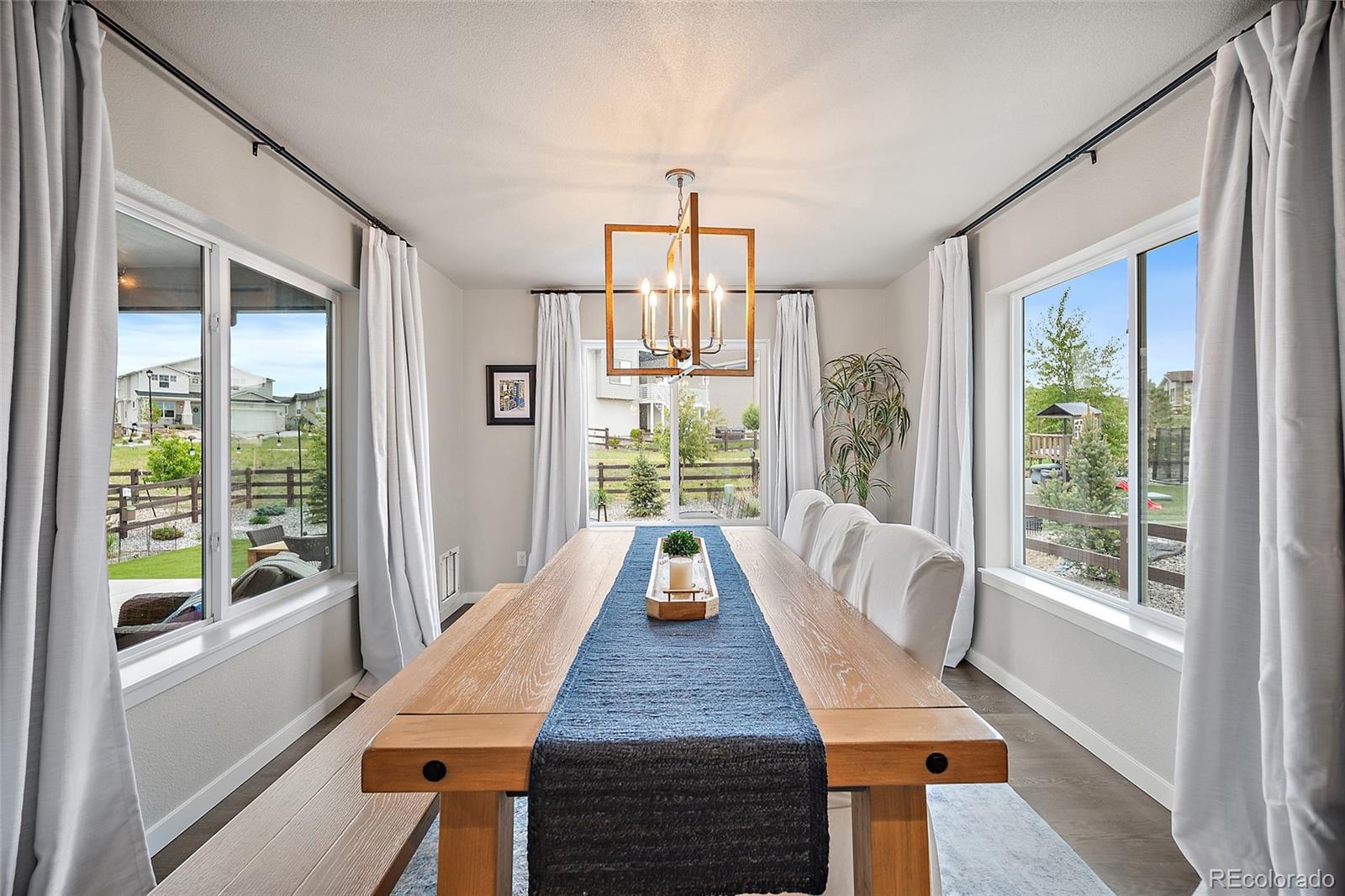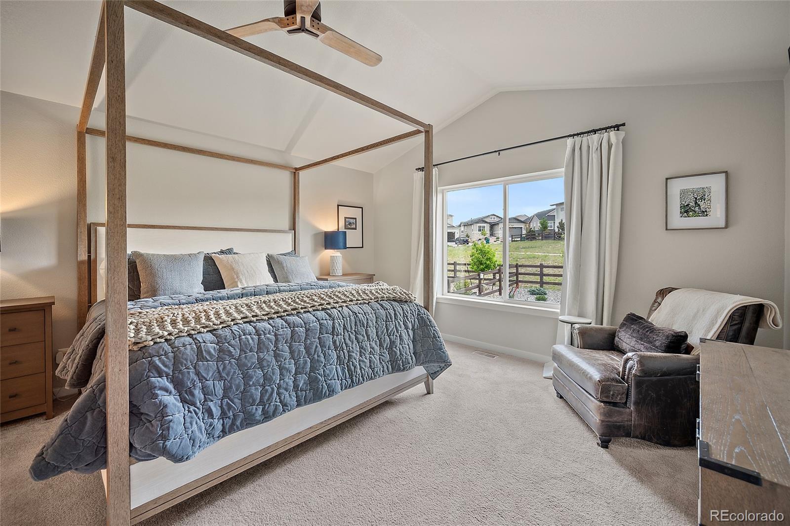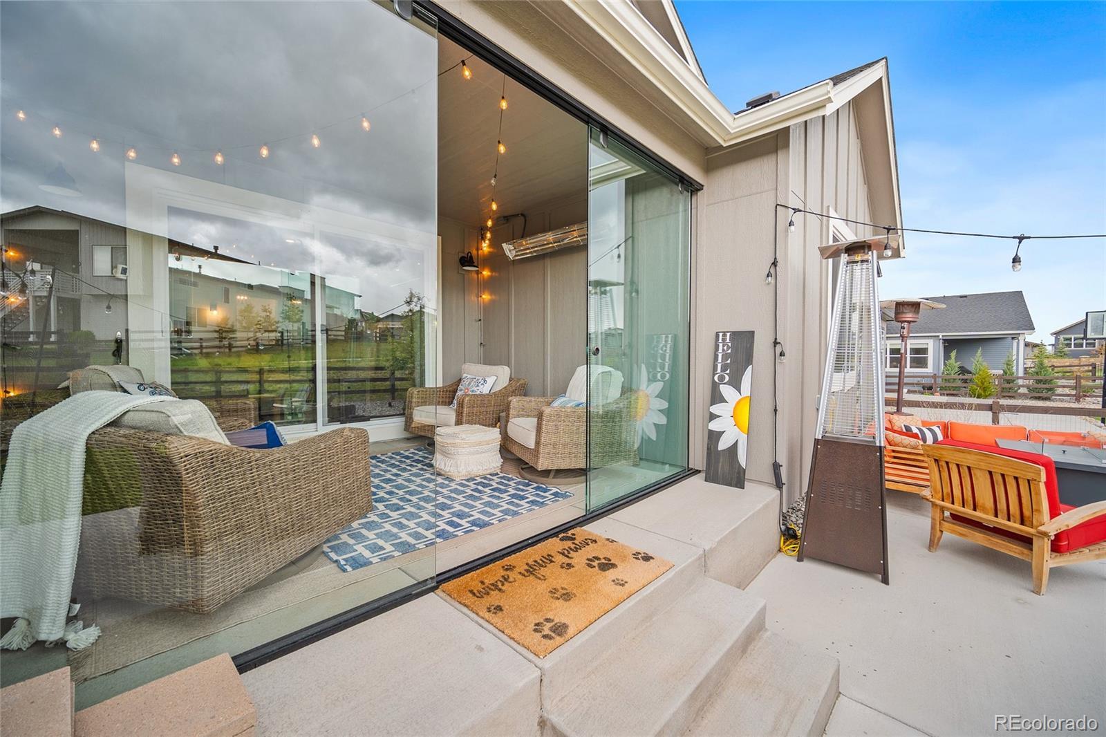 Exquisite Ranch-Style Home in Cordera | Backs to Open Space | District 20 Schools Tucked away on a peaceful cul-de-sac in the coveted Cordera community, this semi-custom Toll Brothers Oxford ranch plan offers 3,574 sq. ft. of refined living. Built in 2021 and backing to open space, this 4-bedroom, 3-bathroom home blends privacy, elegance, and convenience. The home also offers the potential to add a 5th bedroom. The great room boasts 10-ft ceilings, a gas fireplace with tile surround, custom wood mantle, and shiplap accent wall. The gourmet kitchen features quartz countertops, a large island, stainless steel appliances, a gas range, maple shaker cabinetry with upgraded hardware, a built-in microwave, and pantry. The adjacent dining area shines with natural light, oak hardwood flooring, and a modern chandelier. Retreat to the vaulted primary suite offering a spa-like bath with quartz counters, oversized shower with glass enclosure, linen closet, and a walk-in closet with custom built-ins. A main-level secondary bedroom and full bath offer flexible use, while the finished basement includes two additional bedrooms, a full bath, and a spacious family room with 9-ft ceilings. Additional features include beautiful oak hardwood floors, custom closet systems throughout, and a professionally enclosed patio with wind-resistant glass doors—perfect for year-round enjoyment. The basement has been upgraded with a sump pump and French drain system for added peace of mind. Enjoy all Cordera offers: a community center, fitness facility, pool, parks, trails, and more. Walking distance to Chinook Trail Elementary, and minutes from Timberview MS, Pine Creek HS, major roads, USAFA, and shopping. HOA is $123/month and includes covenant enforcement, management, and trash removal. This exceptional home is the perfect blend of thoughtful design, premium finishes, and prime location.