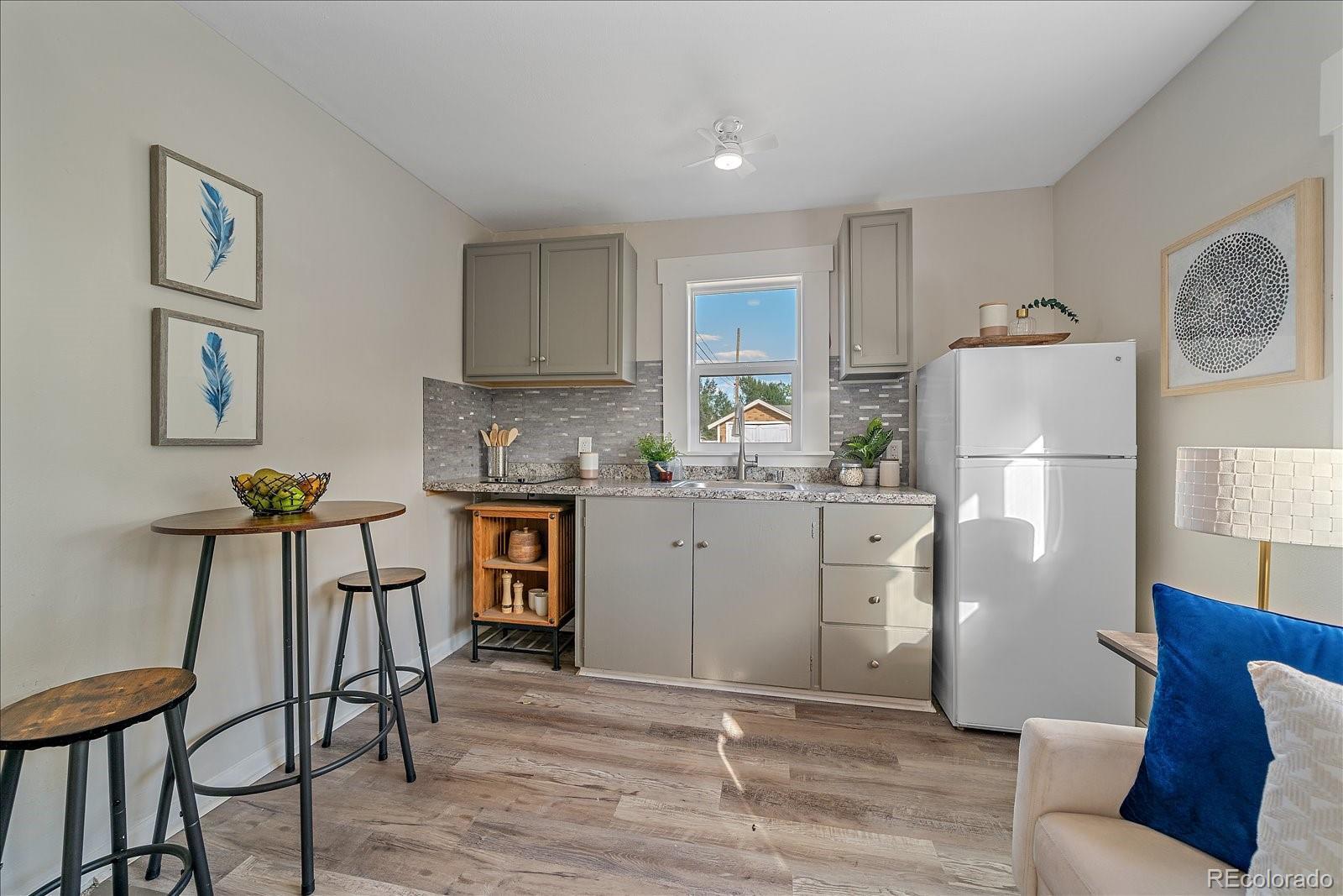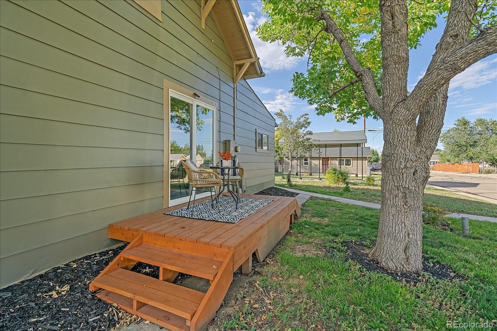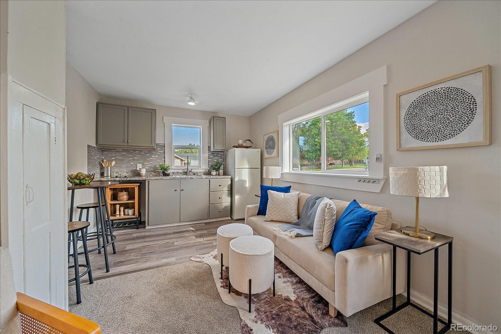 Main House (4 Bed / 1 Bath): Completely updated with brand-new finishes and major system upgrades. Features include all new Pella windows, furnace, tankless water heater and hot and cold water plumbing. Power outlets, switches, and lighting fixtures have been modernized throughout. The new kitchen offers updated appliances including a gas stove with a vented microwave to the outside. Additional highlights include new flooring (carpet and LVT), fresh paint, and new gutters. A large storage space sits behind the bedrooms, offering convenient attic-style storage. Central A/C currently being installed! Accessory Dwelling Unit (ADU): Approved and fully updated, this all-electric ADU is ideal for rental income, guests, or a private workspace. Features include a new electric cooktop, new water heater, and a new Arctic Hyper Heat mini-split air conditioning and heating system. Additional updates include new ceiling fans, LED lighting, updated sinks, and new Pella windows. The exterior has brand-new siding, providing a fresh, modern look with low-maintenance appeal. Both dwellings include large storage sheds. Off-street parking is provided by a new covered carport with 9.5 feet of clearance, perfect for tall work vehicles with ladder racks. The ~7,000 sqft lot offers mature landscaping (ash and pear trees), newer plantings, and year-round mountain views. No HOA. The adjacent lot of similar size is also available for purchase for $135,000. The neighbors could not be nicer!! Conveniently located just minutes from Highway 52 and I-25, with easy access to Denver, Boulder, and northern communities. Dacono offers a welcoming small-town feel, a growing calendar of community events, and nearby attractions like the Colorado National Speedway. This property qualifies for a 2-1 Buy-down reducing the Buyer’s interest rate and payments for the first two years. Buyer is not obligated to use preferred lender to have offer accepted however must use to qualify for the credit.