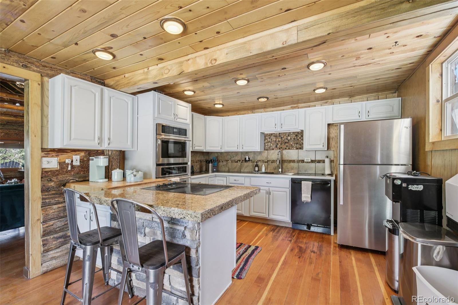 Authentic Colorado Mountain Cabin with Scenic Views & Modern Comforts Experience the best of Colorado mountain living in this charming 2-bedroom, 2-bathroom retreat tucked into the hills of Golden. With its rustic character and modern conveniences, this home is designed for both comfort and adventure. Rustic Charm Step inside and you’ll find exposed wood piers, rich log accents, and two stone fireplaces, complemented by a cozy wood-burning stove—perfect for winter nights by the fire. Inviting Kitchen The spacious eat-in kitchen combines warmth and functionality with a blend of stainless and black appliances, butcher block and tile countertops, a rustic backsplash, and a peninsula with bar seating—an ideal spot for gathering after a day outdoors. Scenic Living Both bedrooms offer direct access to expansive decks where breathtaking mountain and valley views steal the show. A versatile storage loft and fiber-optic internet ensure convenience for work or play. Private Yet Accessible Tucked away on a private drive, the cabin offers seclusion with quick access to CO-72—a fully paved, CDOT-maintained highway for year-round reliability. No HOA, nearby Wondervu Disc Golf Course, and close proximity to the Coal Creek Canyon Fire Department add peace of mind and recreation. Outdoor Adventure Hiking trails to Eldorado Falls, Royal Arch, and Green Mountain Peak are just minutes away, along with endless biking routes. Gross Reservoir and South Boulder Creek provide world-class fishing for trout, muskie, and more. After a day out, stop by the beloved Wondervu Café for local fare and espresso. Location Highlights 30 minutes to Boulder, Nederland, or Golden 1 hour to Denver International Airport Whether you’re searching for a peaceful getaway or a full-time residence, this mountain cabin offers rustic beauty, modern comforts, and unbeatable access to Colorado’s great outdoors.