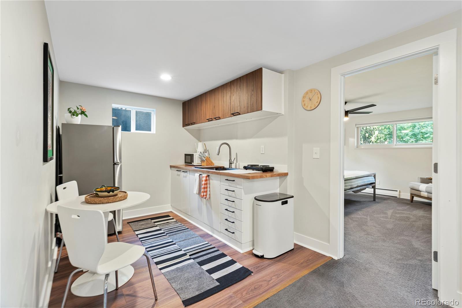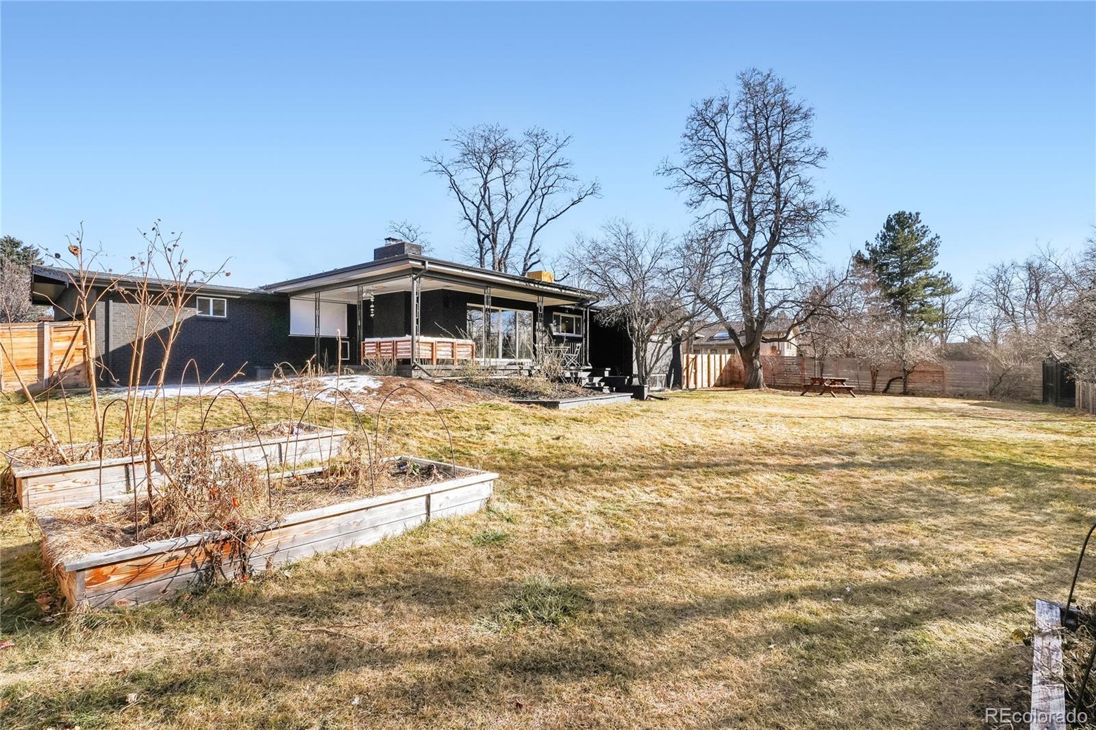 Welcome to this beautifully updated Mid-Century home in desirable Holly Hills perched atop a large and private corner lot. Located in southeast Denver this quiet, established neighborhood offers access to the scenic High Line Canal for walking, biking, and outdoor enjoyment. A family-friendly community with tree-lined streets, nearby parks, and served by the highly regarded Cherry Creek School District. Convenient access to Cherry Creek, Denver Tech Center, downtown Denver, shopping, and dining. The house offers an inviting open floor plan, vaulted ceilings and thoughtful modern upgrades throughout. The updated kitchen boasts wood cabinetry, quartz slab countertops, pantry, breakfast bar and dining area. The spacious primary bedroom includes a large en-suite bath with dual vanity. Outdoor living is a highlight with a large covered patio perfect for relaxing or entertaining. With extensive updates and so much more to offer, this move-in-ready home is a must-see. LOOKING TO HOUSE HACK?!?!?! The basement is set up to be used as a short term rental. Bring in extra cashflow to offset your monthly expenses (see supplements for rental history). Don't want the income? The wall behind the desk in the basement is easily removed to re-open the circular floor plan. Don't miss out on this amazing home!