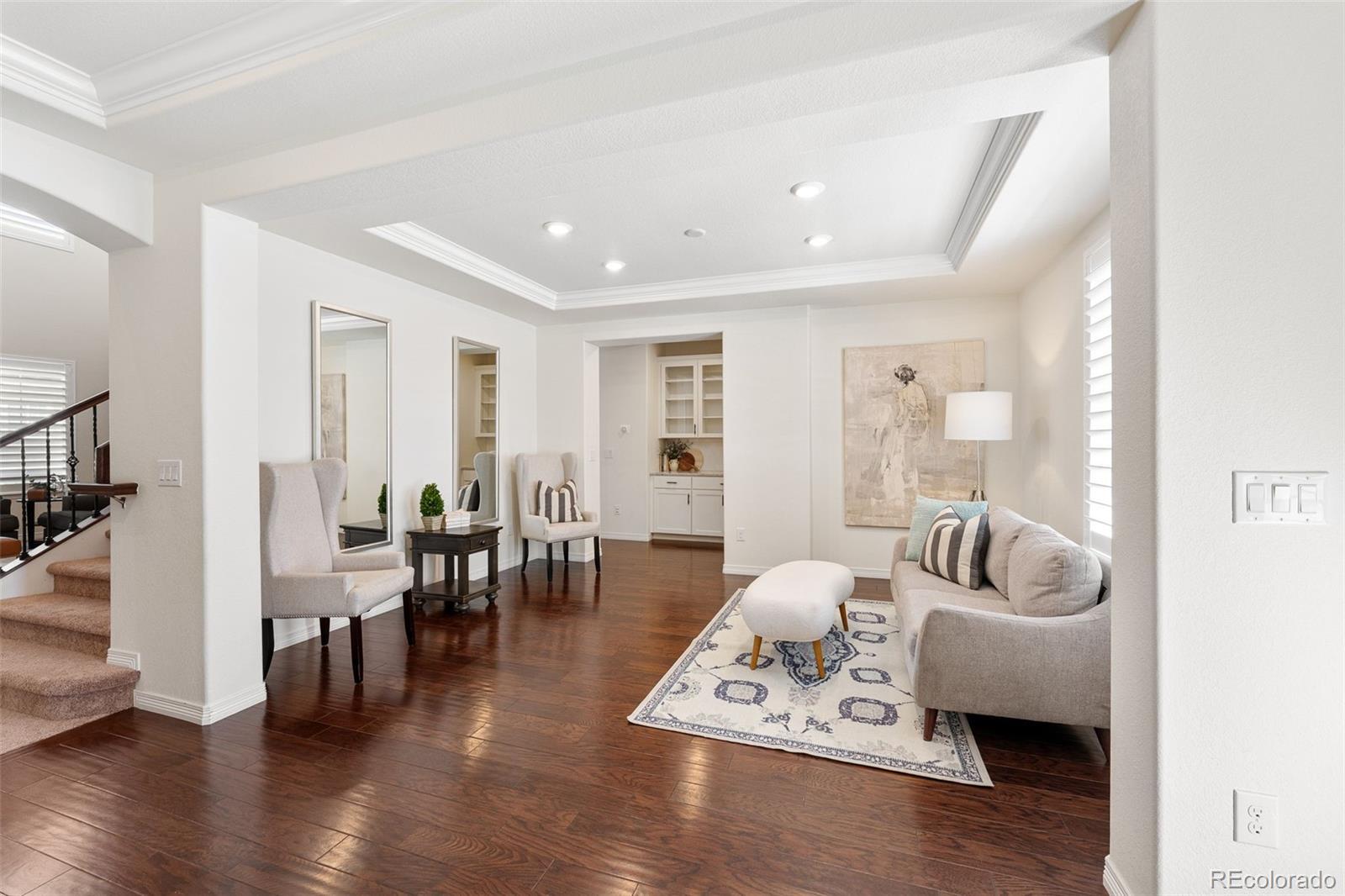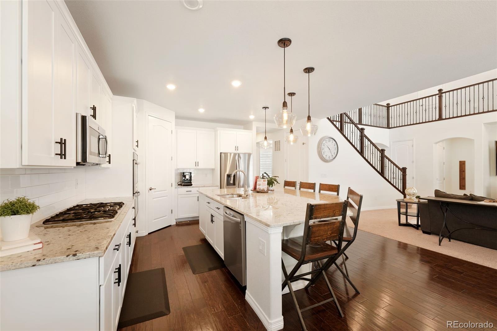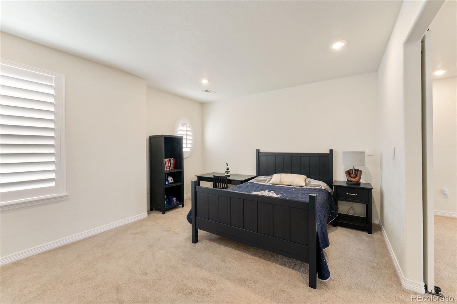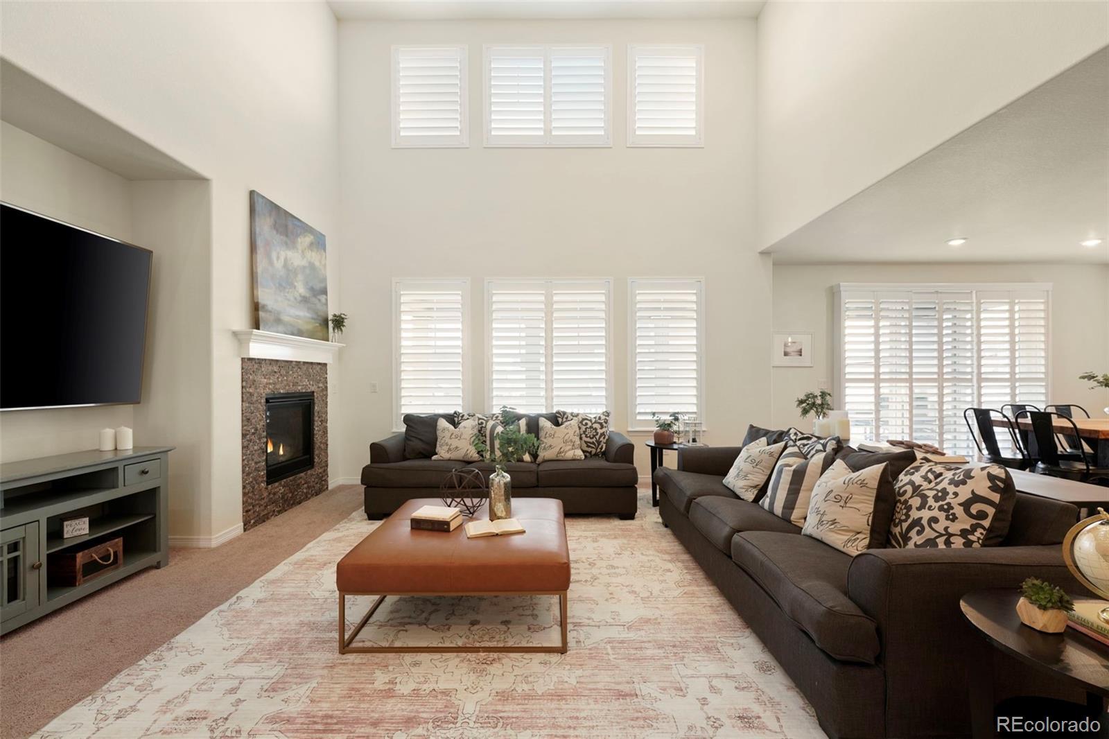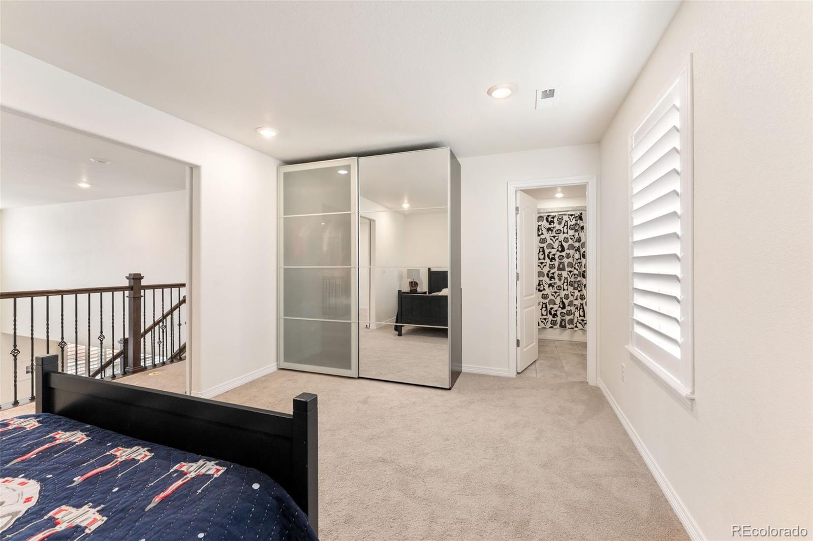 Welcome to this stunning 7-bedroom, 6-bathroom home featuring the highly coveted Prescott model — thoughtfully designed for luxurious yet effortless living and entertaining. From the moment you step inside, the expansive layout and intentional design make it clear why this floorplan is consistently in demand. The home offers a seamless flow throughout, anchored by a beautifully appointed kitchen at its heart. Highlights include an oversized island, refinished cabinetry, and a spacious walk-in pantry — perfect for gatherings both large and small. The adjacent family room features soaring ceilings and a cozy gas fireplace, creating an inviting and impressive space. The main floor also includes a dedicated office and a private bedroom with a full en-suite bath — ideal for guests, multigenerational living, or a secondary workspace. Upstairs, the luxurious primary suite serves as a true retreat, complete with a 5-piece bath featuring a deep soaking tub, dual vanities, and an expansive walk-in closet with direct access to the laundry room equipped with a utility sink and ample cabinetry. Two additional upstairs bedrooms each offer walk-in closets and individual vanities, connected by a Jack-and-Jill full bathroom. An additional upstairs bedroom — accented with stylish barn doors — includes a private full bath and an attached standalone closet, making it perfect as a fourth upstairs bedroom or a versatile bonus/recreation space. The garden-level finished basement expands the home’s entertainment potential with a spacious gathering area and wet bar, along with two generously sized bedrooms and a large full bathroom. Additional highlights include a Newer Roof with Class 4 Shingles (2024), Recently serviced HVAC systems, Plantation shutters throughout, and a garage equipped with EV charging capability. Ideally located with convenient access to E-470 and I-25, and just minutes from grocery stores, restaurants, parks, and more! This exceptional home truly offers it all.