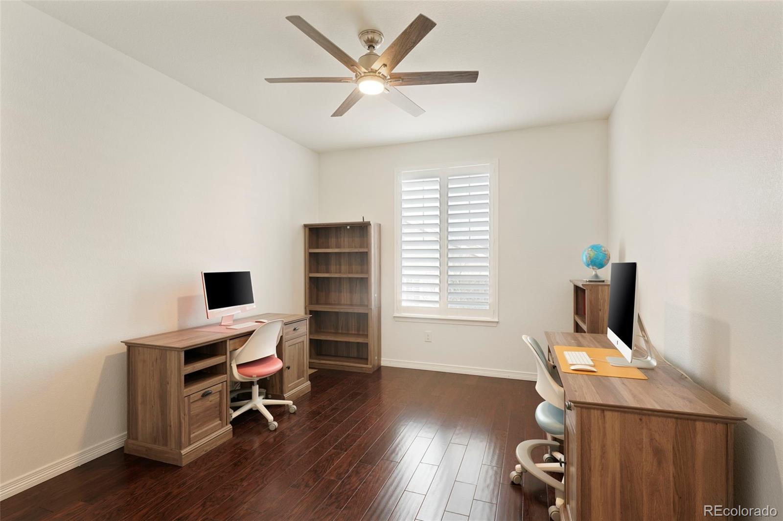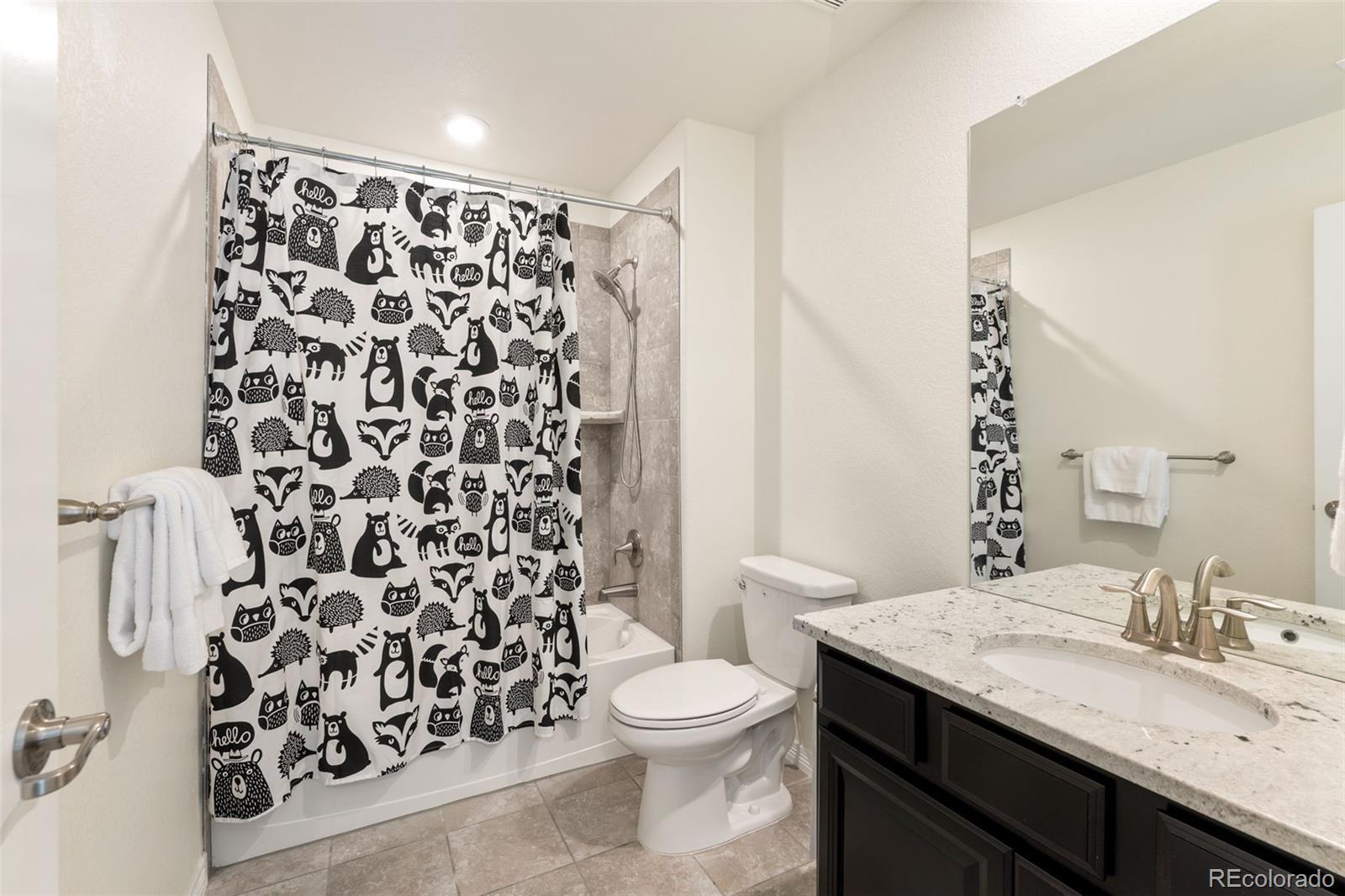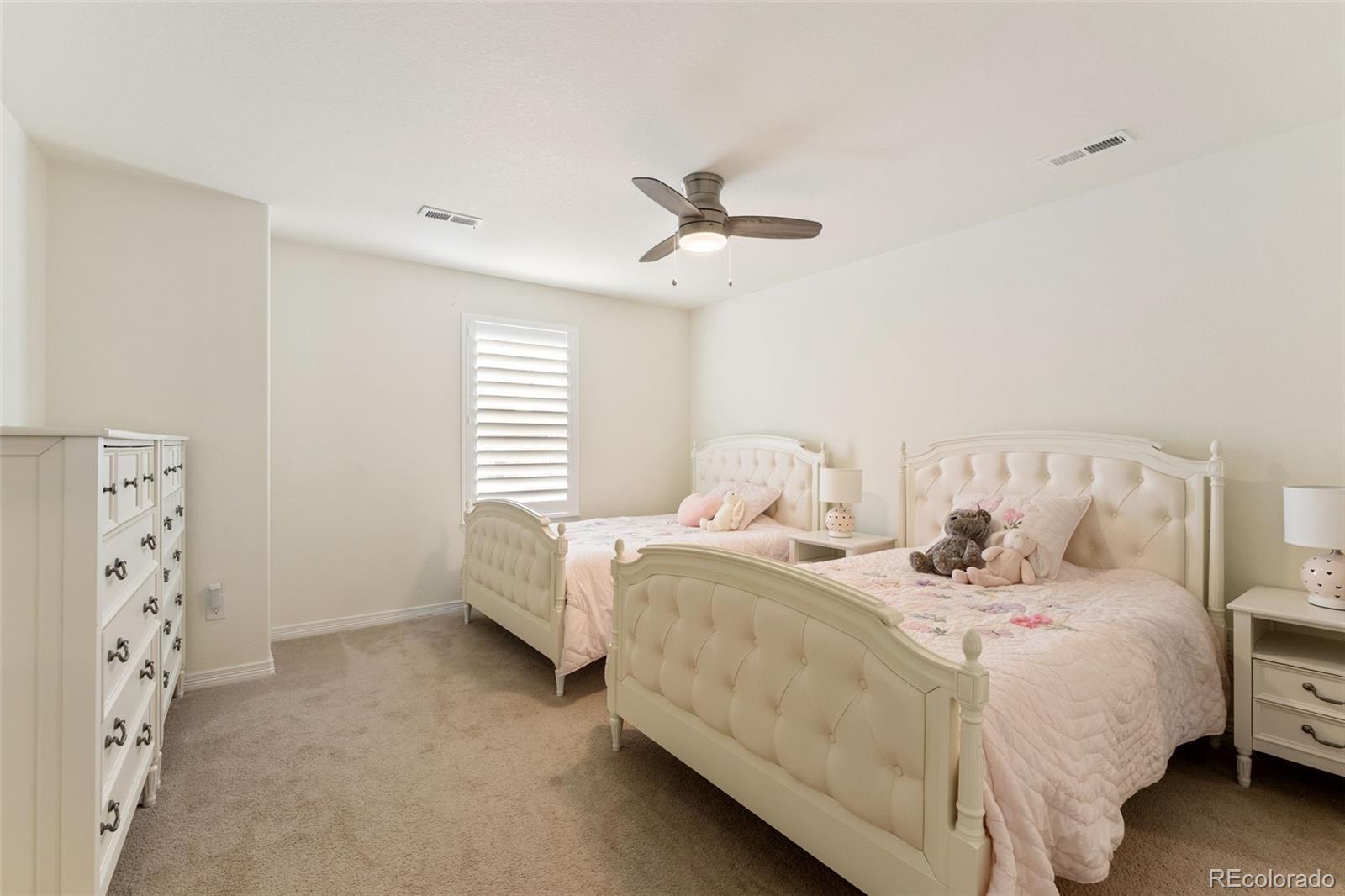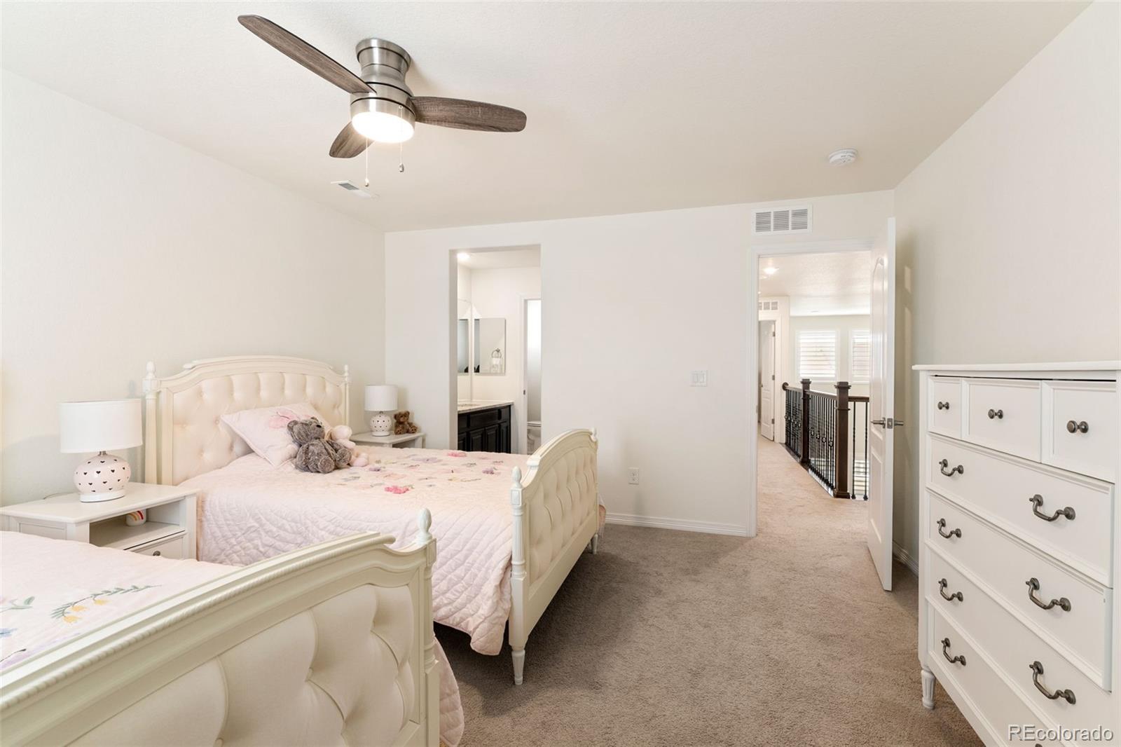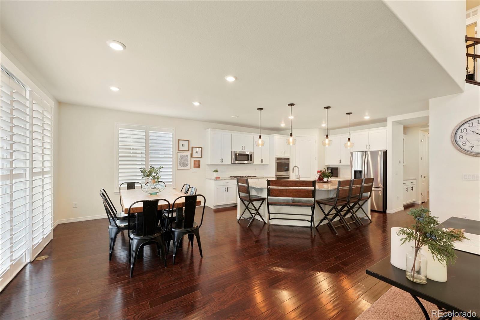 Welcome to this stunning 7-bedroom, 6-bathroom home featuring the highly coveted Prescott model — thoughtfully designed for luxurious yet effortless living and entertaining. From the moment you step inside, the expansive layout and intentional design make it clear why this floorplan is consistently in demand. The home offers a seamless flow throughout, anchored by a beautifully appointed kitchen at its heart. Highlights include an oversized island, refinished cabinetry, and a spacious walk-in pantry — perfect for gatherings both large and small. The adjacent family room features soaring ceilings and a cozy gas fireplace, creating an inviting and impressive space. The main floor also includes a dedicated office and a private bedroom with a full en-suite bath — ideal for guests, multigenerational living, or a secondary workspace. Upstairs, the luxurious primary suite serves as a true retreat, complete with a 5-piece bath featuring a deep soaking tub, dual vanities, and an expansive walk-in closet with direct access to the laundry room equipped with a utility sink and ample cabinetry. Two additional upstairs bedrooms each offer walk-in closets and individual vanities, connected by a Jack-and-Jill full bathroom. An additional upstairs bedroom — accented with stylish barn doors — includes a private full bath and an attached standalone closet, making it perfect as a fourth upstairs bedroom or a versatile bonus/recreation space. The garden-level finished basement expands the home’s entertainment potential with a spacious gathering area and wet bar, along with two generously sized bedrooms and a large full bathroom. Additional highlights include a Newer Roof with Class 4 Shingles (2024), Recently serviced HVAC systems, Plantation shutters throughout, and a garage equipped with EV charging capability. Ideally located with convenient access to E-470 and I-25, and just minutes from grocery stores, restaurants, parks, and more! This exceptional home truly offers it all.