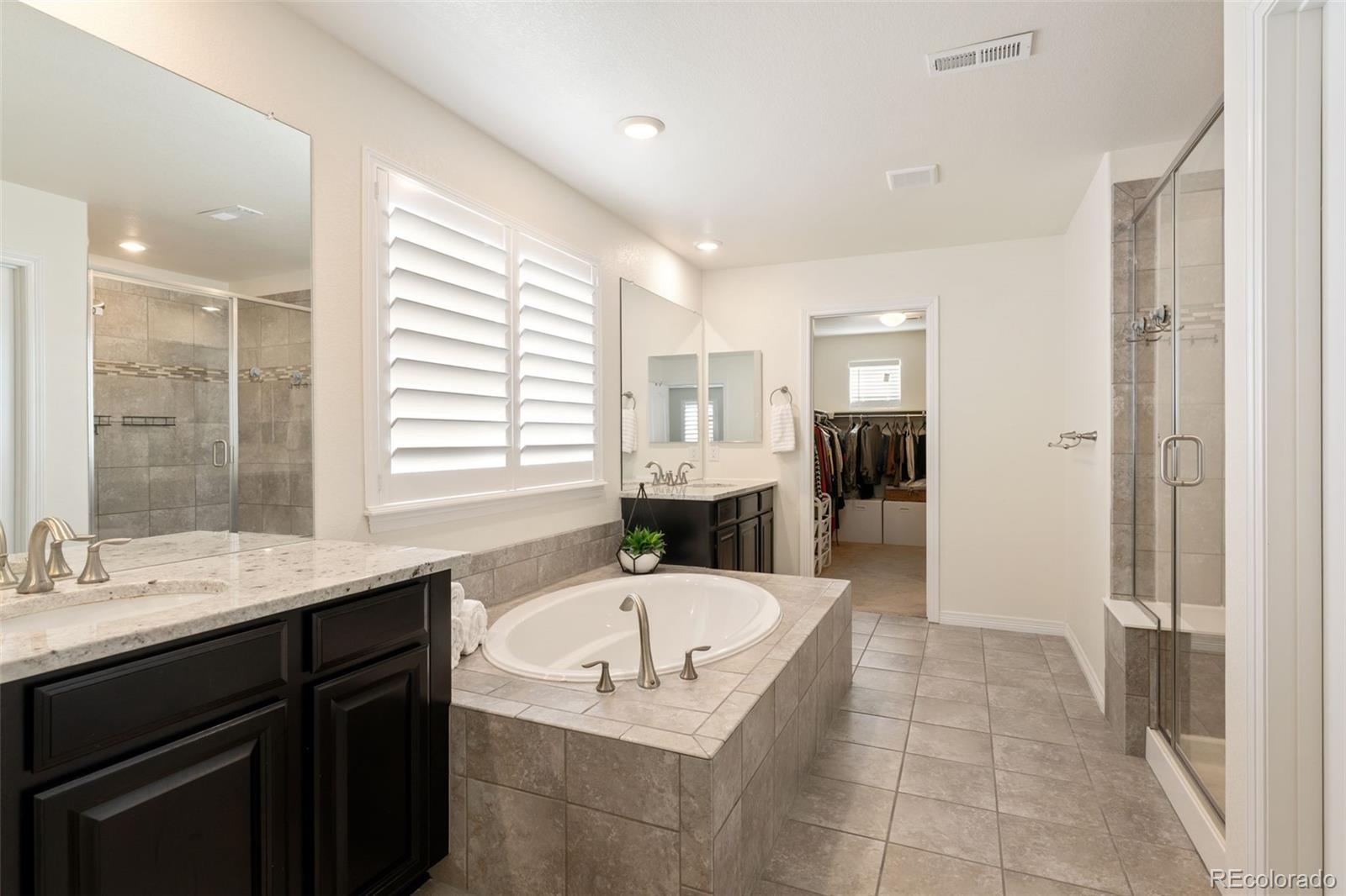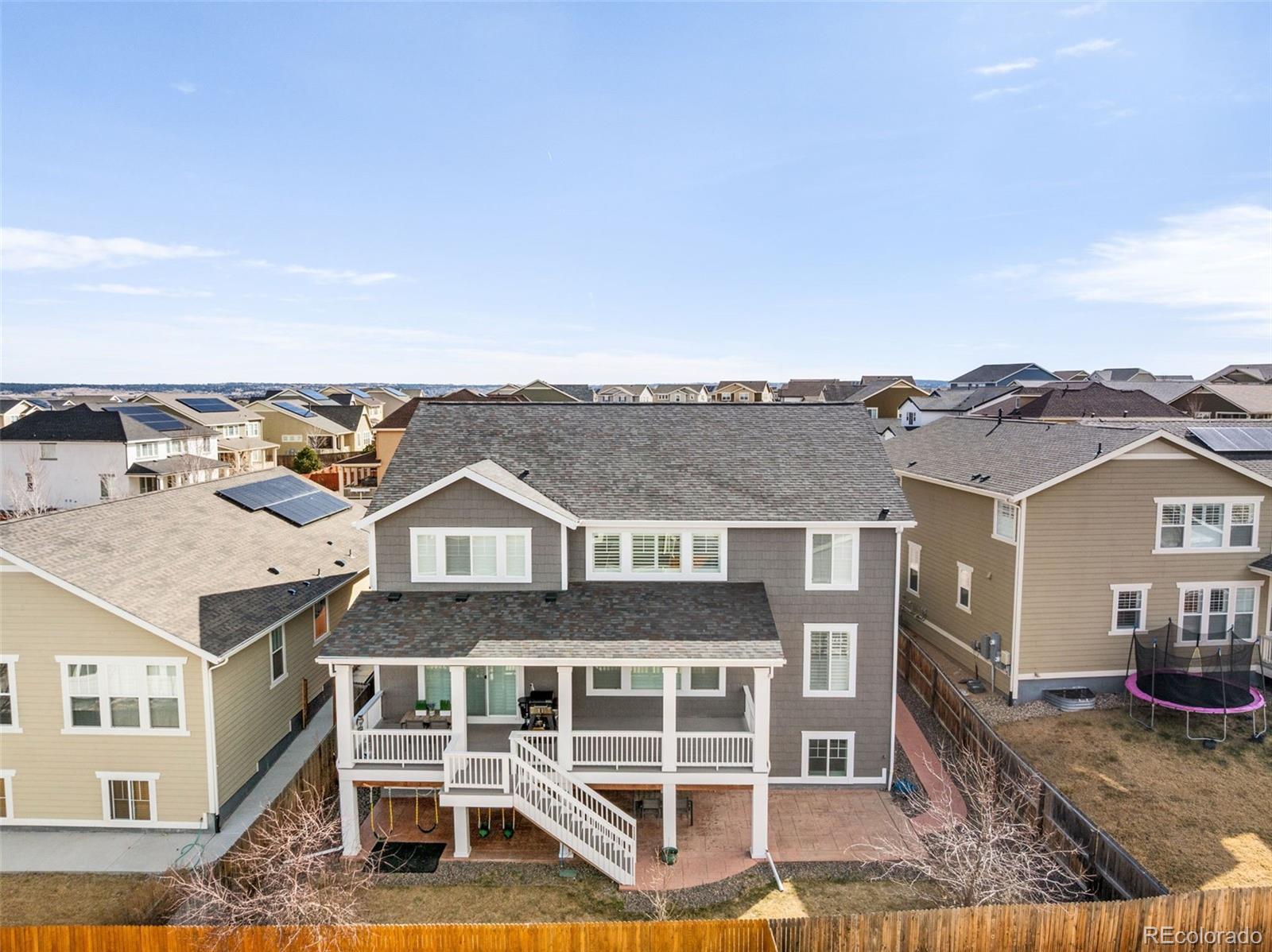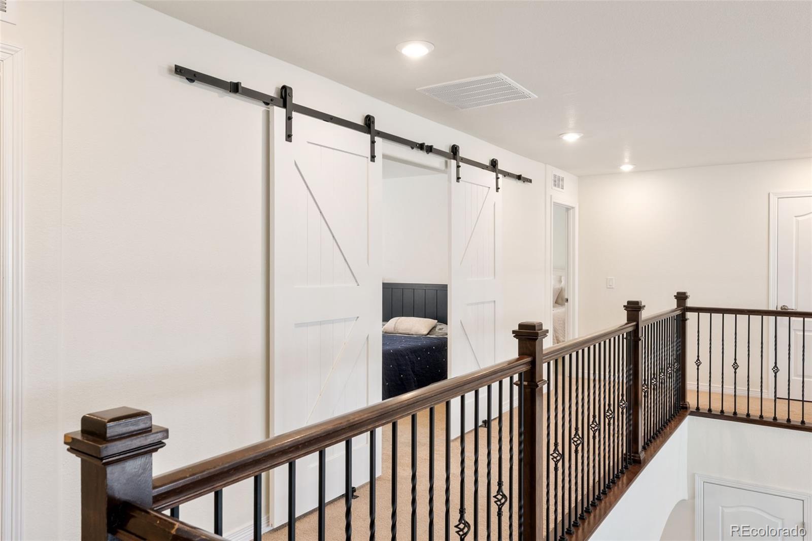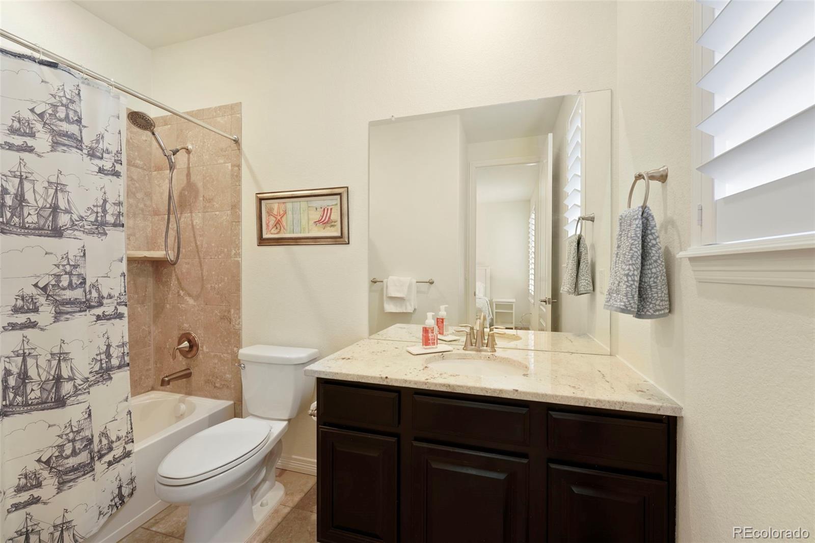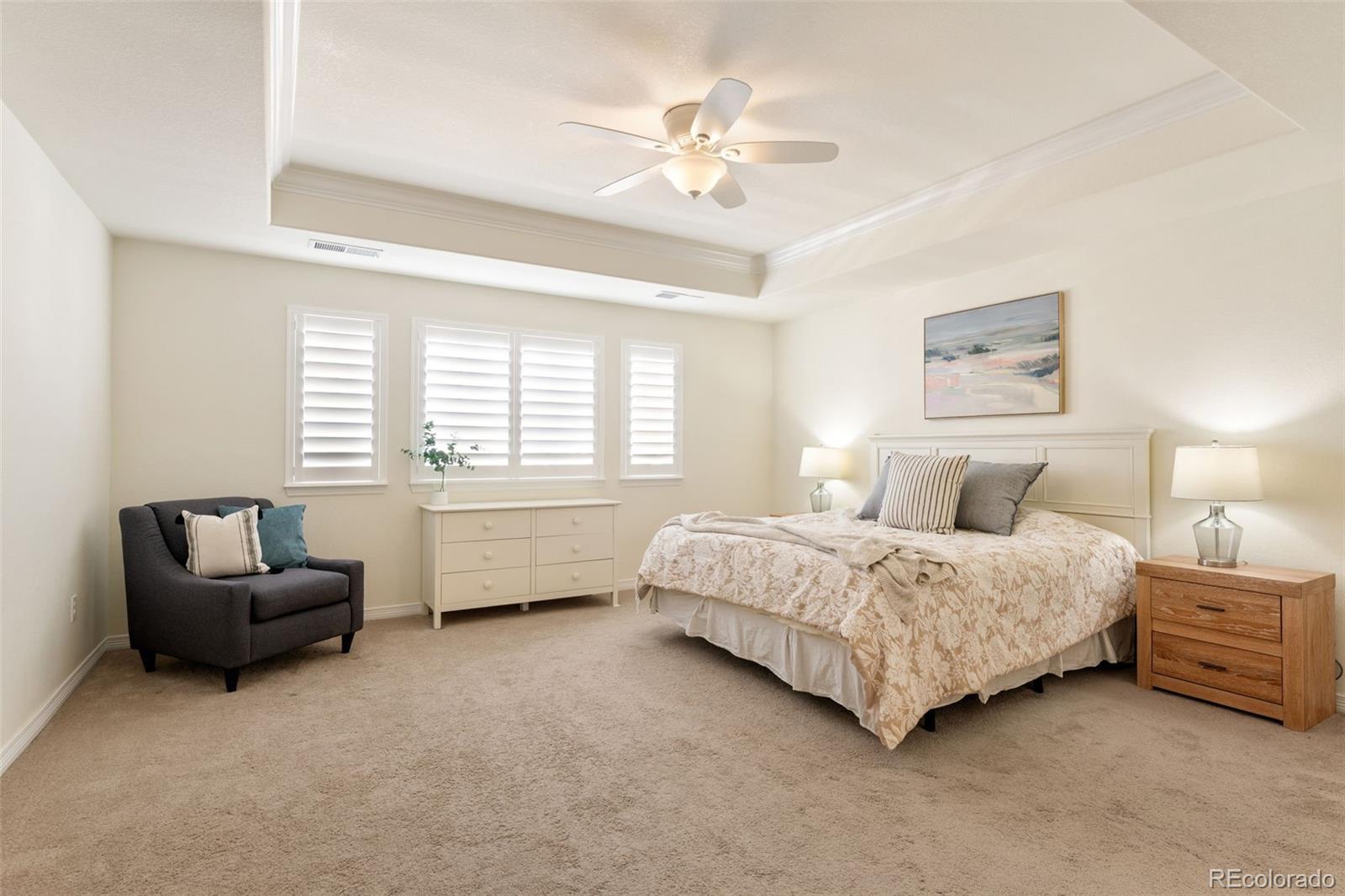 Welcome to this stunning 7-bedroom, 6-bathroom home featuring the highly coveted Prescott model — thoughtfully designed for luxurious yet effortless living and entertaining. From the moment you step inside, the expansive layout and intentional design make it clear why this floorplan is consistently in demand. The home offers a seamless flow throughout, anchored by a beautifully appointed kitchen at its heart. Highlights include an oversized island, refinished cabinetry, and a spacious walk-in pantry — perfect for gatherings both large and small. The adjacent family room features soaring ceilings and a cozy gas fireplace, creating an inviting and impressive space. The main floor also includes a dedicated office and a private bedroom with a full en-suite bath — ideal for guests, multigenerational living, or a secondary workspace. Upstairs, the luxurious primary suite serves as a true retreat, complete with a 5-piece bath featuring a deep soaking tub, dual vanities, and an expansive walk-in closet with direct access to the laundry room equipped with a utility sink and ample cabinetry. Two additional upstairs bedrooms each offer walk-in closets and individual vanities, connected by a Jack-and-Jill full bathroom. An additional upstairs bedroom — accented with stylish barn doors — includes a private full bath and an attached standalone closet, making it perfect as a fourth upstairs bedroom or a versatile bonus/recreation space. The garden-level finished basement expands the home’s entertainment potential with a spacious gathering area and wet bar, along with two generously sized bedrooms and a large full bathroom. Additional highlights include a Newer Roof with Class 4 Shingles (2024), Recently serviced HVAC systems, Plantation shutters throughout, and a garage equipped with EV charging capability. Ideally located with convenient access to E-470 and I-25, and just minutes from grocery stores, restaurants, parks, and more! This exceptional home truly offers it all.