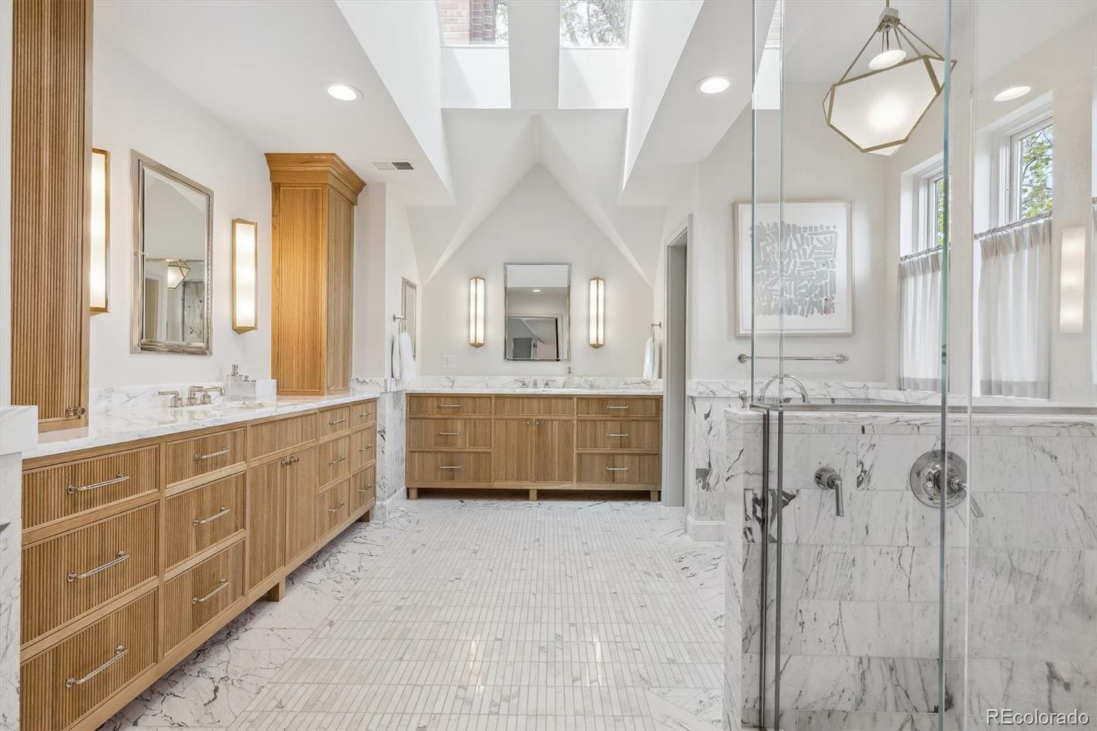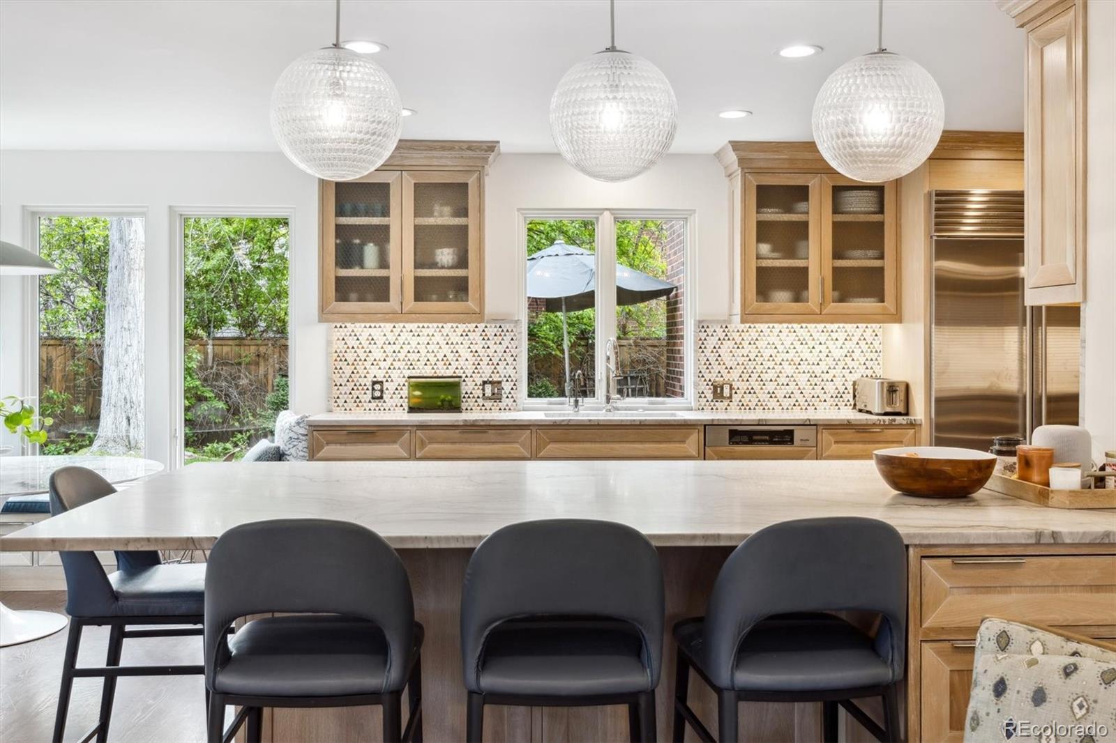 Discover one of Hilltop’s most exciting opportunities - a complete top-to-bottom transformation of a classic Tudor on one of Denver’s most coveted blocks. Reimagined by Emily Tucker Design in 2021 and featured in Luxe magazine, this residence blends East Coast sophistication with fresh, modern livability. Elevated on a beautifully landscaped lot with mature trees, the home makes a striking first impression and an even warmer welcome inside. Every detail has been thoughtfully considered: cerused white oak cabinetry and quartzite counters anchor the chef’s kitchen, while layered materials, custom millwork, and jewel-toned accents create depth and character throughout. Bay windows, built-ins, and architectural charm honor the Tudor’s historic roots, seamlessly balanced by modern updates that deliver move-in-ready comfort. The generous floor plan offers six bedrooms (five upstairs), five baths, and a finished basement, perfectly suited for both daily life and effortless entertaining. Light-filled living spaces flow easily for gatherings large and small. Positioned on an A+ block in Hilltop, this property is more than a home; it’s a statement of style, comfort, and community. In today’s market, opportunities like this are rare: a fully renovated, one-of-a-kind Tudor in Denver’s premier neighborhood, ready for its next chapter.