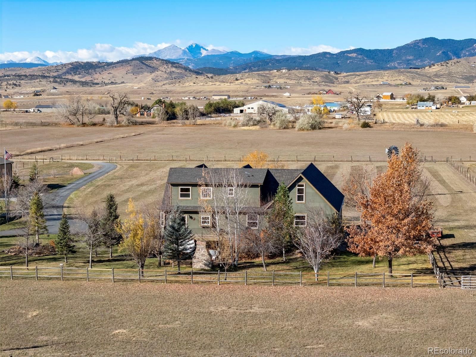 Tucked away on 5 private acres with jaw-dropping, unobstructed mountain views, this one-of-a-kind Berthoud retreat will take your breath away. To the east, you're just minutes from TPC Colorado Golf Course, and to the west, Carter Lake awaits less than 10 minutes away. Pull your boat out of the 3,400+ sq ft shop, or saddle up and ride straight off your property from the 4-stall horse barn-this is Colorado living at its finest. NO HOA. NO METRO DISTRICT. NO LIMITS! Just peaceful acreage living minutes from downtown Berthoud, where freedom meets convenience. Both the CLIMATE-CONTROLLED SHOP and equestrian barn have PULL THROUGH DOORS and ready for their new owner. 2025 HEAT PUMP, 2025 AC, 2023 CLASS 4 SHINGLE ROOF and 2023 WATER HEATER allow you to just enjoy your new property! Inside, thoughtful renovations continue: a remodeled kitchen, two gas fireplaces, updated laundry room, and beautiful custom finishes throughout. The primary suite spans the top floor with a 5-piece luxury bath, three closets, a loft, and two bonus rooms perfect for an office, gym, or nursery. Step onto the wrap-around deck to soak in both sunrise and sunset, or unwind in the hot tub beside a wood-burning outdoor fireplace-the perfect spot for quiet country evenings under the stars. Downstairs, a walk-out basement hosts two additional bedrooms, a large custom wine cellar, and an oversized crawl space with room for all your storage needs. Every inch of this property has been cared for and upgraded with attention to detail. Opportunities like this don't come around often-reach out today for your private showing before someone else discovers this rare diamond!