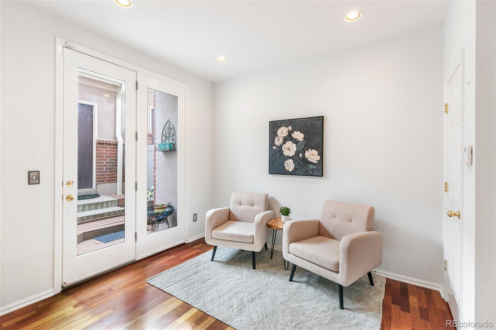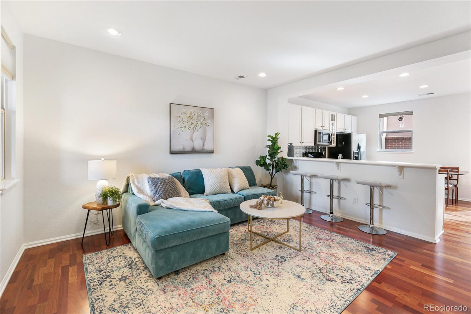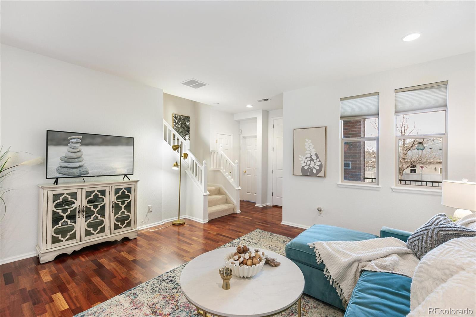 Chic contemporary townhome in a super convenient location! Brownstone vibes and fantastic curb appeal welcome you with steps up to a wide covered front porch. Step inside to an open and inviting living space that flows into the large kitchen, perfect for day-to-day life and entertaining friends and family! Quality far surpasses new construction—cherry hardwood floors and a spacious floorplan not seen in new builds! Fresh white paint throughout, nothing to do here but move in! Kitchen is efficient with tons of counterspace and storage, plus an eat-in bar and space for your kitchen table, and plenty of room to lounge! Step out the back door from the kitchen for another year-round usable outdoor space with southern exposure and space to grill and chill. Main floor powder room for added convenience. Upstairs, you will find 3 bedrooms, 2 full bathrooms, and a laundry closet. The primary suite is spacious with a walk-in closet, Juliet balcony, and en-suite full bathroom. Each bedroom is nicely sized with good closet space. Laundry closet with included washer and dryer upstairs. LARGE 2-car detached garage with alley—room to back out of your garage! Fantastic location with walkability to Centennial Center Park and many conveniences. Coffee shops, restaurants, retail, and gyms abound within a 1-mile radius. Cherry Creek Park to the north has endless opportunities to enjoy the Colorado outdoors with trails, vistas, and an off-leash dog park. Quick 10-minute commute to the Denver Tech Center! Highly desirable Cherry Creek Schools. Make this one yours today!