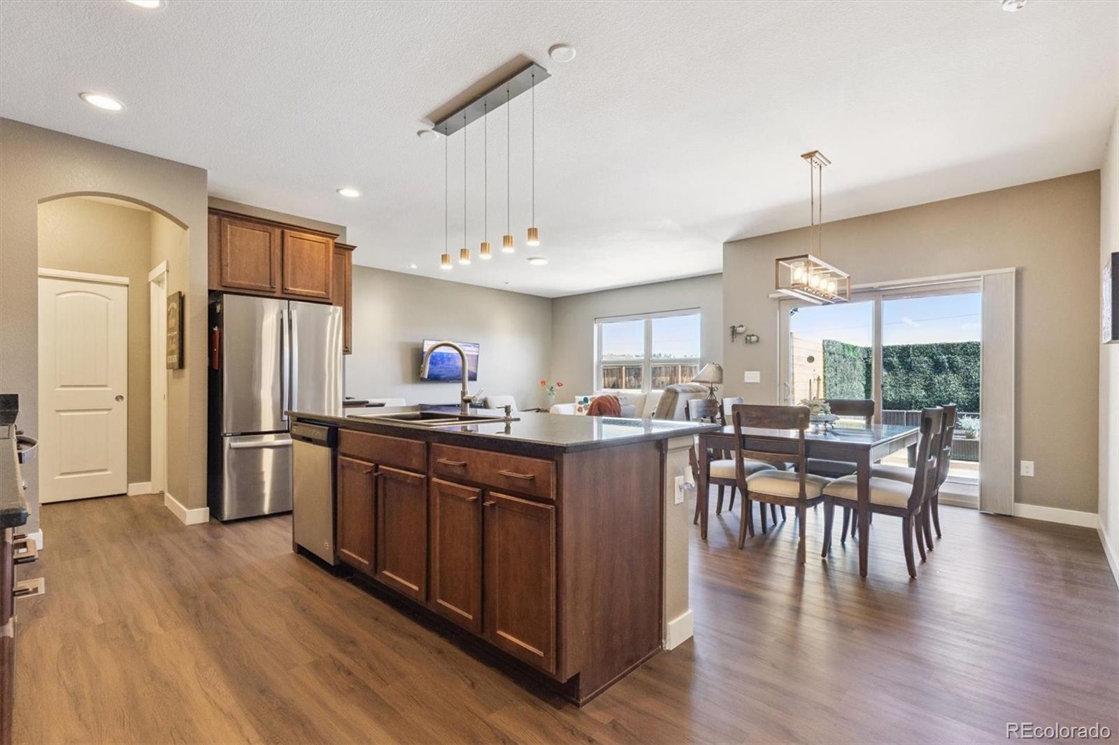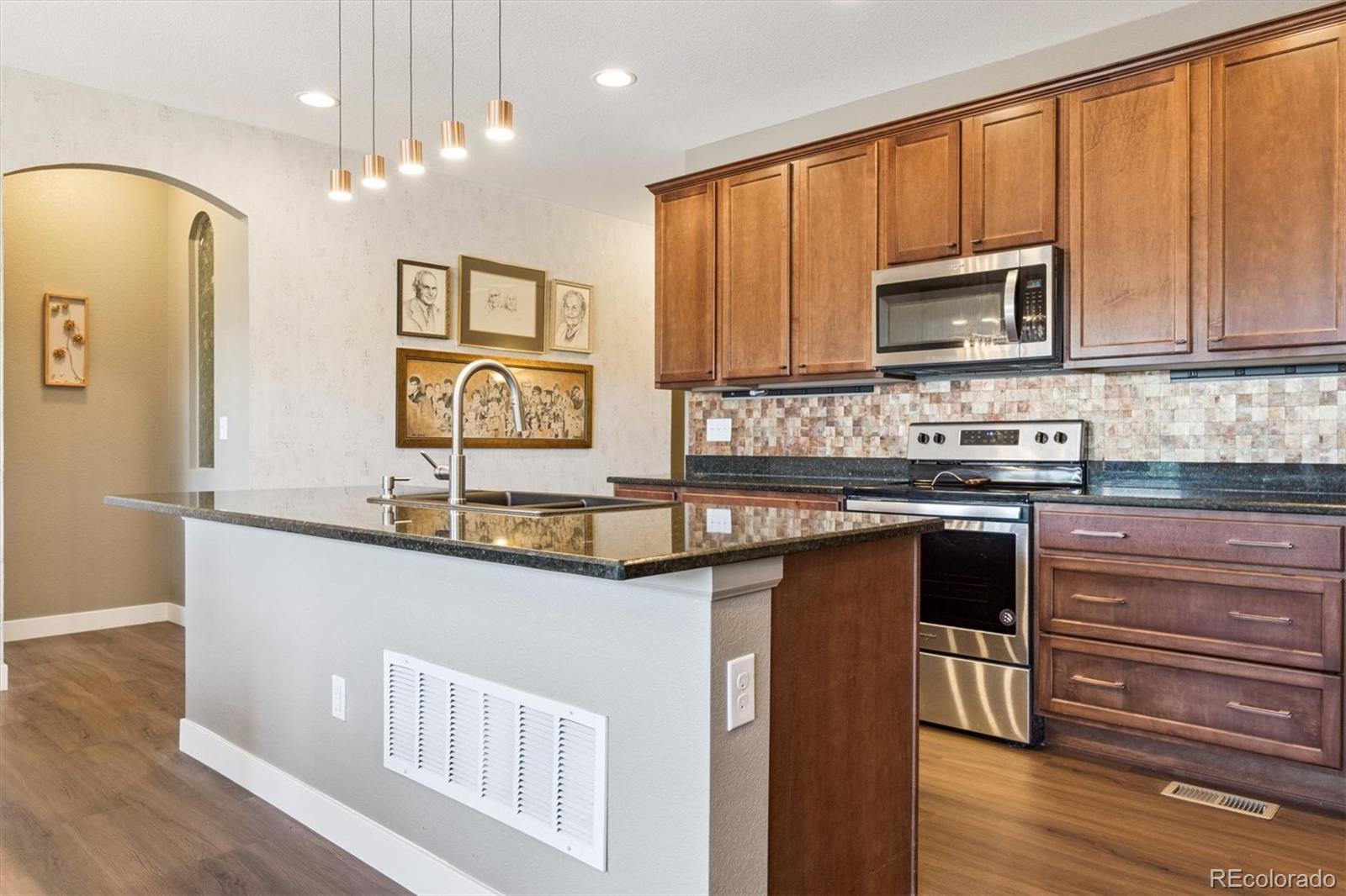 This beautifully maintained ranch-style paired home offers exceptional value—the best-priced home of its quality in the area! With a spacious open floor plan, 2 bedrooms, 2 bathrooms, and a dedicated office, this home lives large while keeping maintenance to a minimum. The chef’s kitchen is a standout, featuring a generous island, granite countertops, stainless steel appliances, ample outlets, and a walk-in pantry. Stylish upgrades include vinyl wood flooring and updated lighting throughout most of the home. Enjoy Colorado living at its finest on the expanded, fully enclosed private patio—perfect for entertaining or relaxing evenings. Unlike many homes nearby, this outdoor space offers true privacy and plenty of room to relax and host guests. The unfinished basement with rough-in plumbing provides incredible potential to nearly double your living space. Thoughtful owner improvements include a tankless water heater, electric blinds, garage floor epoxy coating, and more—designed to make everyday living easier. With a 2-car attached garage and direct access to Baldwin Gulch Trail, connecting you to Cherry Creek Regional Trail, this home combines comfort, convenience, and lifestyle. Don't miss out on this wonderful opportunity! Set up your showings today. **Seller is HIGHLY motivated, bring us an offer!**