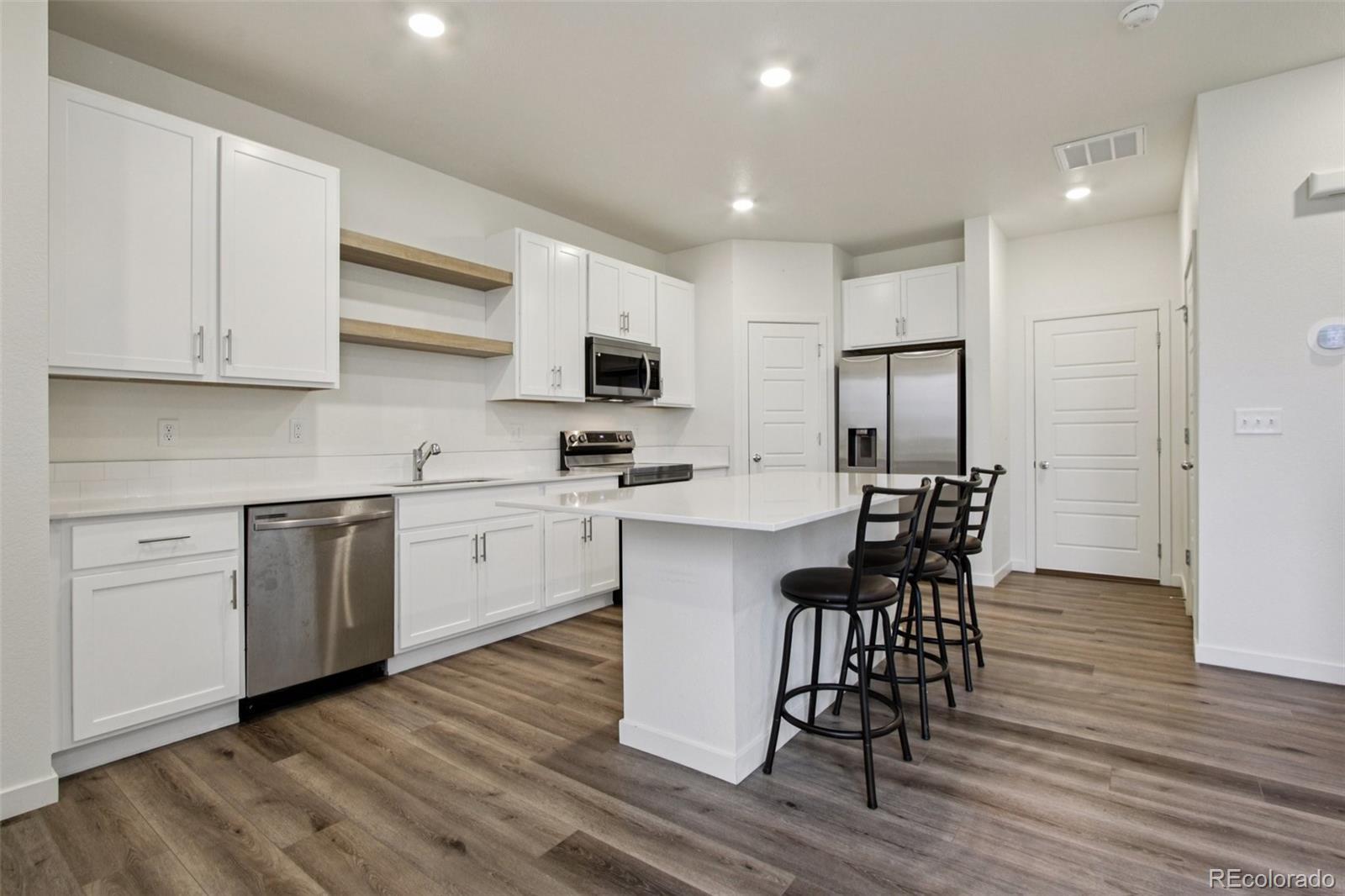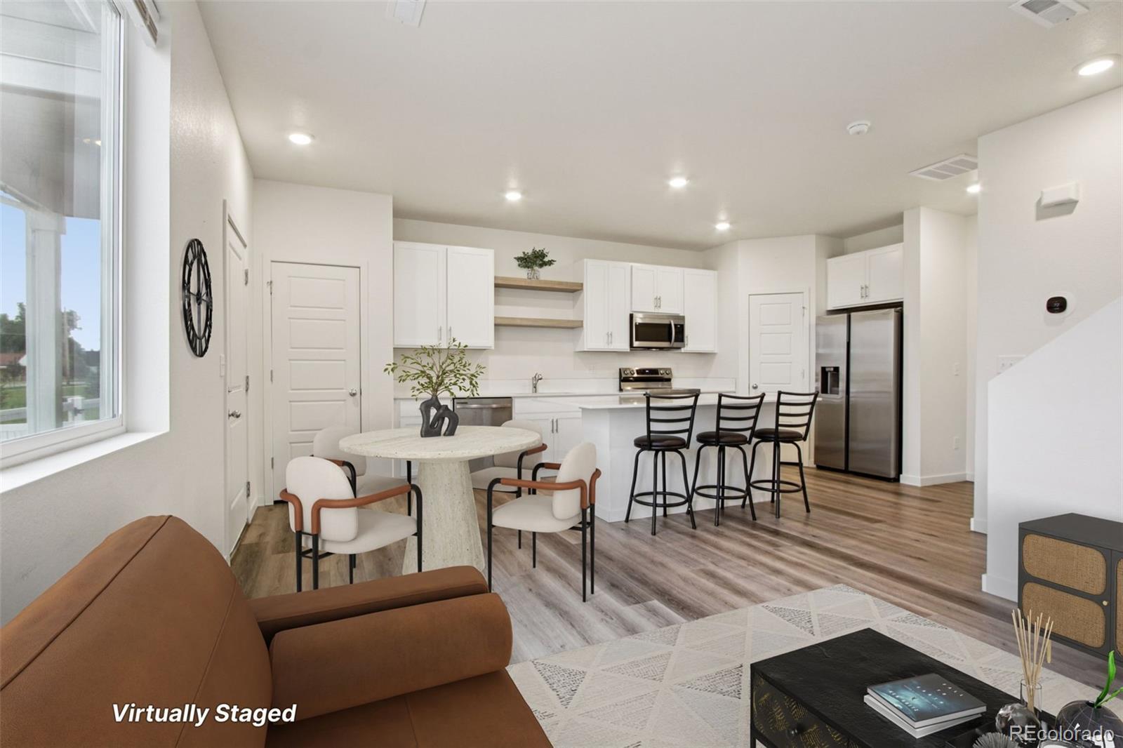 Welcome to turnkey luxury in this stylish, nearly new 3-bedroom, 2.5-bath townhome, where modern design meets everyday functionality. From the moment you enter, you'll love the open-concept layout, filled with natural light and anchored by a chef-inspired kitchen featuring sleek stainless steel appliances, a large quartz center island, and a walk-in pantry. It's ideal for both casual dining and entertaining. Upstairs, unwind in the spa-like primary suite, complete with a freshly updated walk-in shower, dual vanities, and an oversized walk-in closet for effortless organization. Enjoy your morning coffee or evening wind-down on the private, gated front patio, or explore the vibrant neighborhood just steps from the renovated rec center, community library, and local shops. With low-maintenance living, stylish finishes, and unbeatable access to amenities, this home offers the perfect blend of comfort, convenience, and contemporary living. Don’t miss your chance to own in one of the area's most sought-after communities.