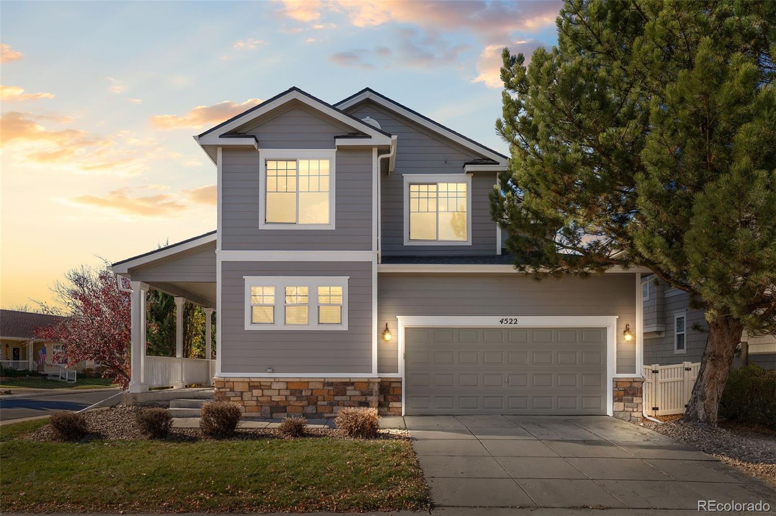 Welcome to Longmont’s Renaissance neighborhood! This former model home sits on a desirable corner lot across from a park, offering privacy and a charming backyard with mature trees, shade, and a spacious patio. The home has been thoughtfully upgraded providing the most comfortable, clean and beautiful interiors. Recent updates include a sparkling new kitchen with purpose designed cabinets, quartz countertops, a generous island, stainless steel appliances, tile backsplash, and a walk-in pantry. Additional features include LVP flooring, fresh interior and exterior paint, new light fixtures, smart home features and 9’ ceilings. The main floor offers a study, powder room, dining area, open-concept kitchen and living room, a convenient laundry room leading to a spacious 2 car garage. The bright living area showcases large west-facing windows and a gas fireplace. Upstairs, the spacious 23’ x 14’ primary suite features a five-piece ensuite with a jetted tub, modern finishes, and a generous walk-in closet. Two bedrooms enjoy park views. Also, there’s an unfinished basement ready for your design ideas. Pride of ownership shines throughout this beautifully maintained home in a highly sought-after neighborhood.