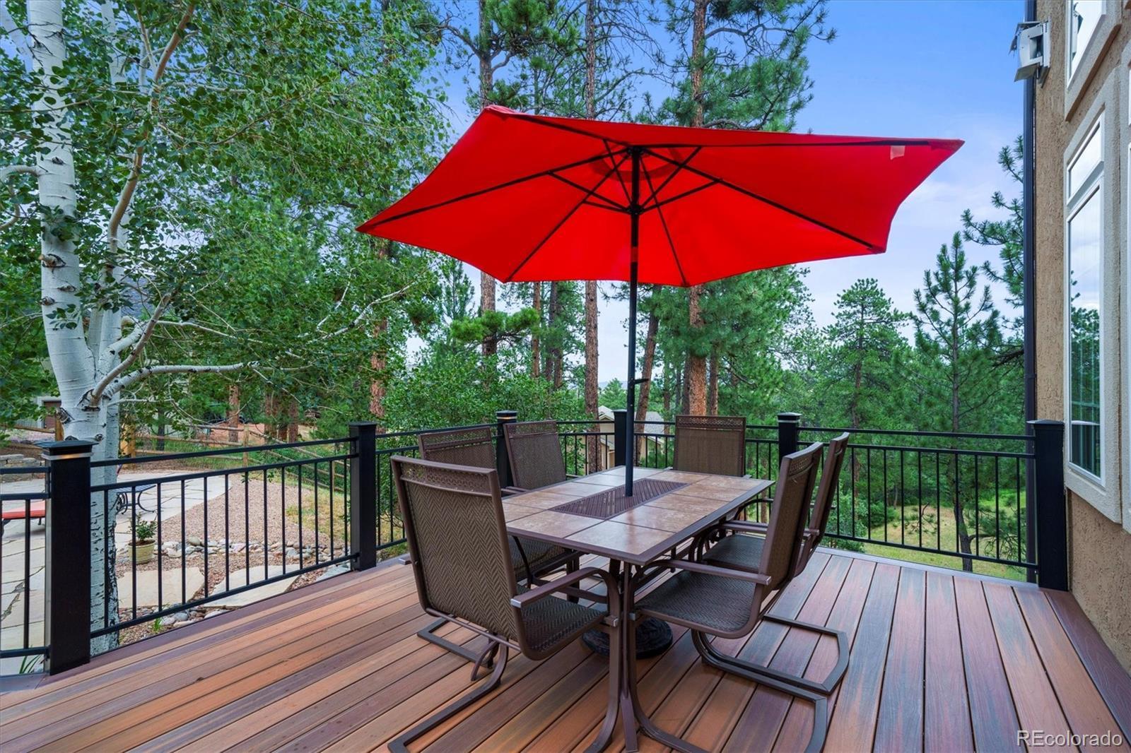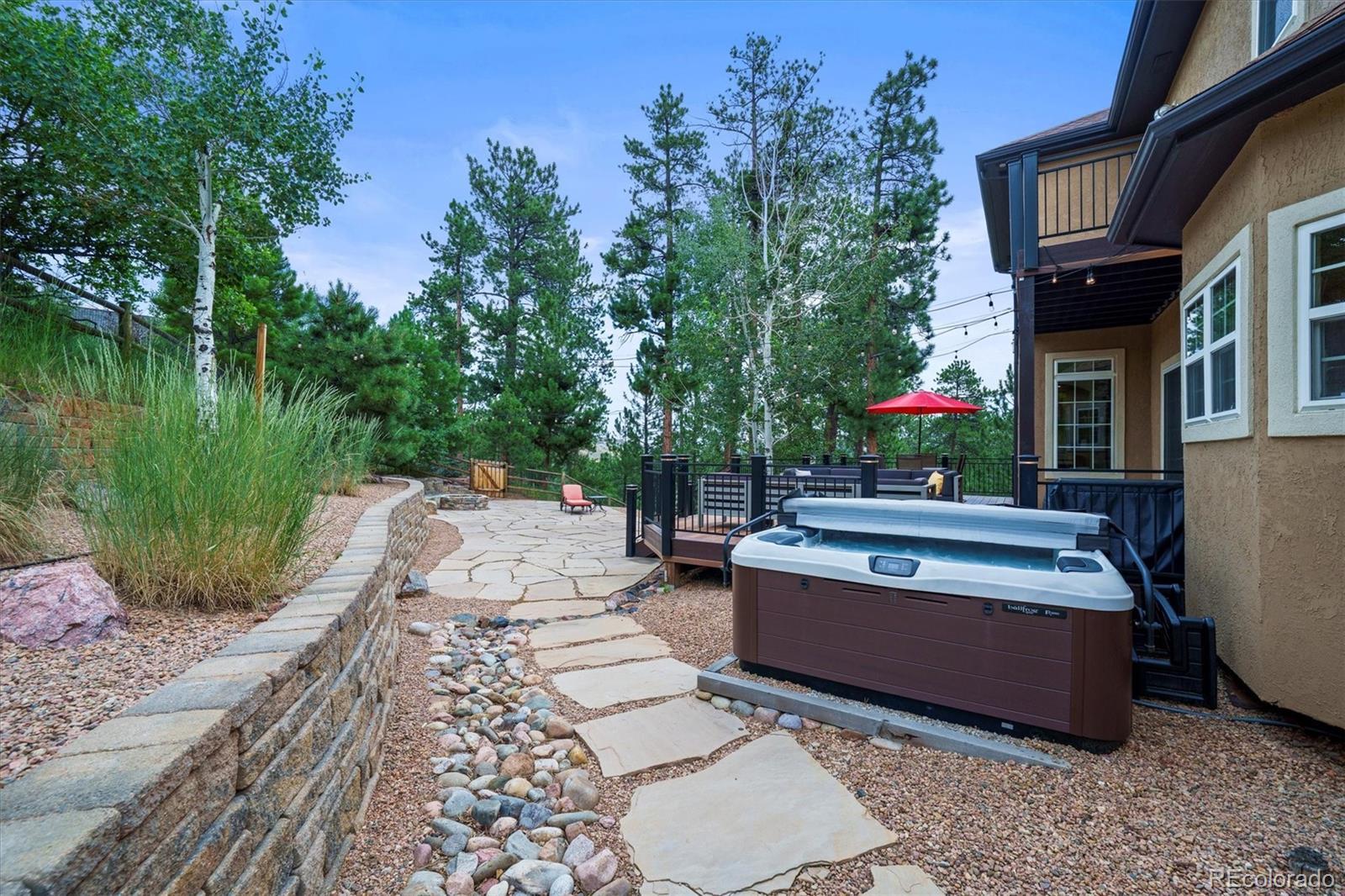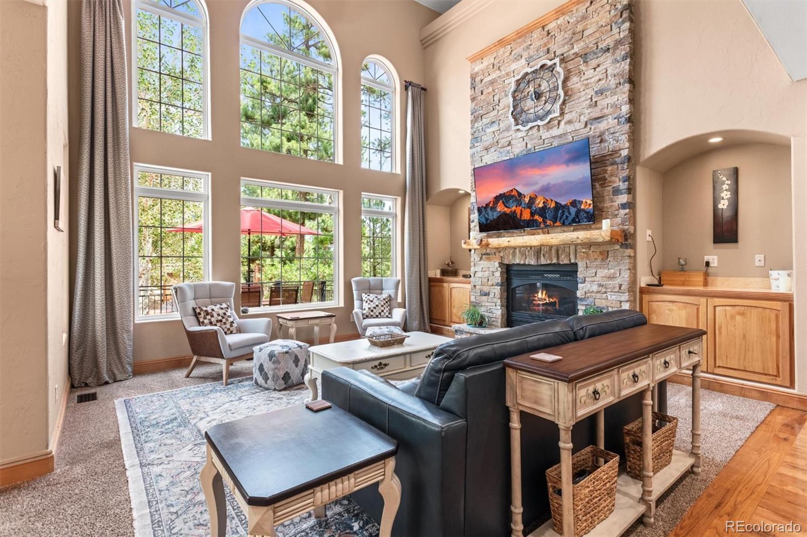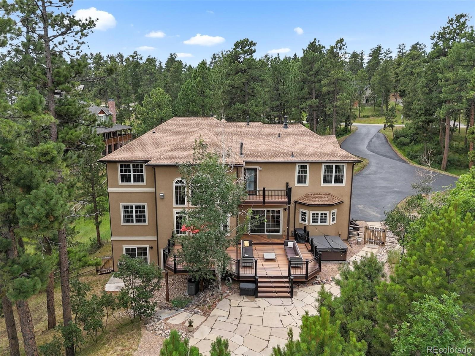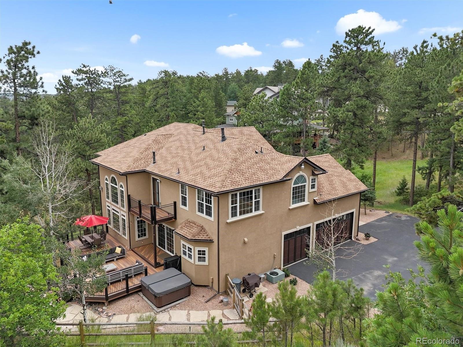 This well maintained custom home defines the serenity of Colorado lifestyle in Perry Park. An outdoor living space surrounded by a canopy of towering pines, watch deer wander through your yard, or play a round of golf at Perry Park Country Club. What do we love about Perry Park besides the people? Steeped in Colorado history, surrounded by red rock sandstone formations and breathtaking views of the Front Range. Just 20 minutes from Castle Rock, 10 minutes from Larkspur, and 5 minutes from the country club, yet worlds away from the pace of the city. Park your camper or RV right on your property, ride golf carts or ATVs around the neighborhood, access Pike National Forest, hiking trails galore, a farmers market every week in the summer, and endless community events, to name a few. The free library in Larkspur is such an amazing place! Tucked away on a private, tree-lined lot, your new home exudes craftsmanship and character, custom rock and tile work throughout, beetle kill hearth, mountain alder cabinetry, 26 foot soaring ceilings and vaulted ceilings, wrought iron railings, natural wood floors, expansive windows that bring the outdoors in, massive kitchen island, a grand fireplace, an oversized primary suite & walk-in closet, and a floor plan designed for both comfort and entertaining. The walkout basement is filled with natural light, a brand new bar, a 600 bottle climate controlled wine cellar, a theatre room, and eventually endless amounts of entertainment to your liking. The internet connection is phenomenal! 2022:2 new ac units, 2 new furnaces, hot tub, fenced backyard, climate-controlled walk in wine cellar, 2023:expanded driveway for RV parking, 2024:new water heater, new bar area in basement with granite countertops, whole house humidifier, driveway resealed, 2025:new insulated garage doors with opener, LED light fixtures added throughout house, 2018 & 2019:roof replaced with a lifetime corning duration shingles, repaired exterior stucco, and exterior paint.
