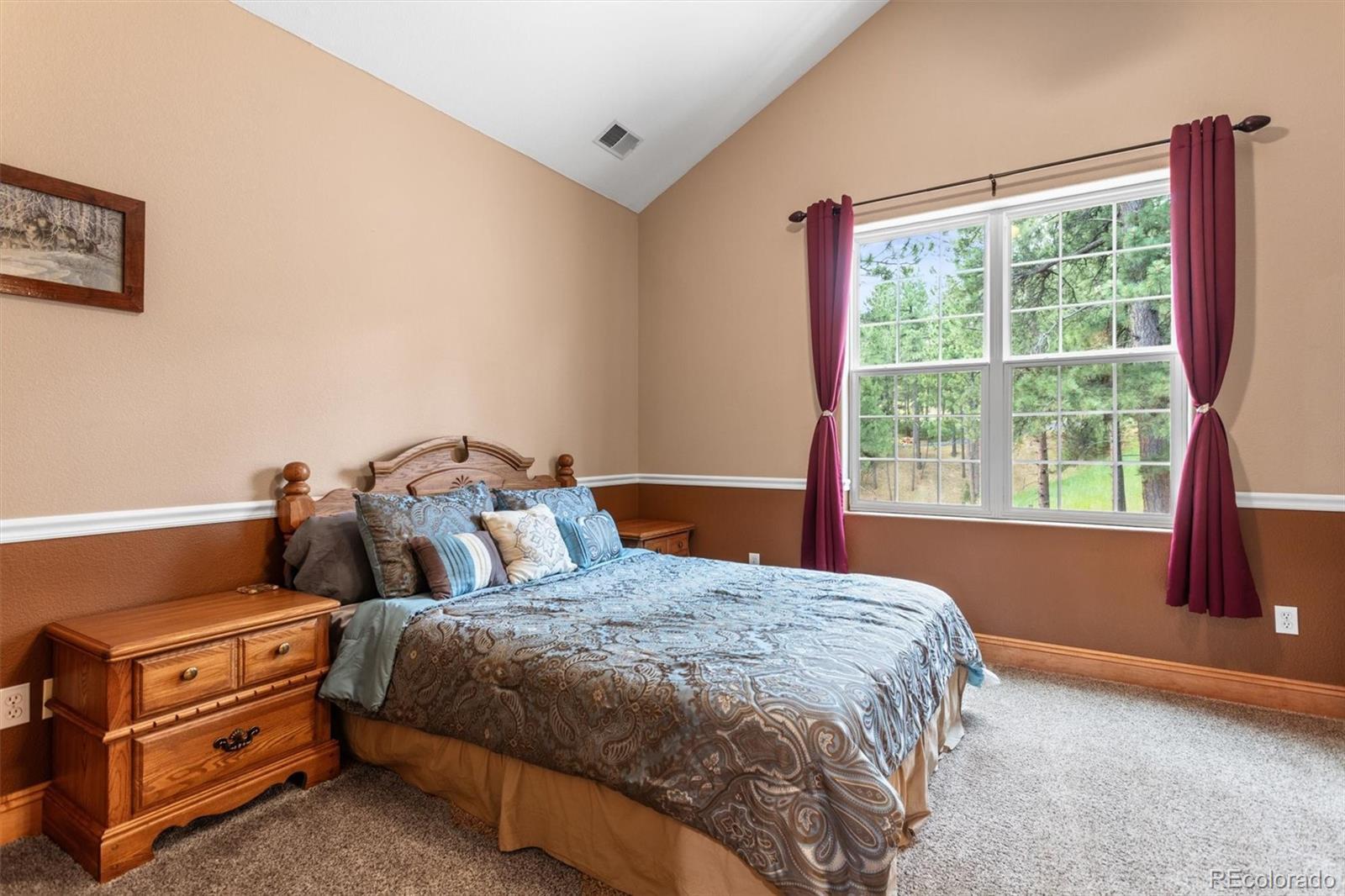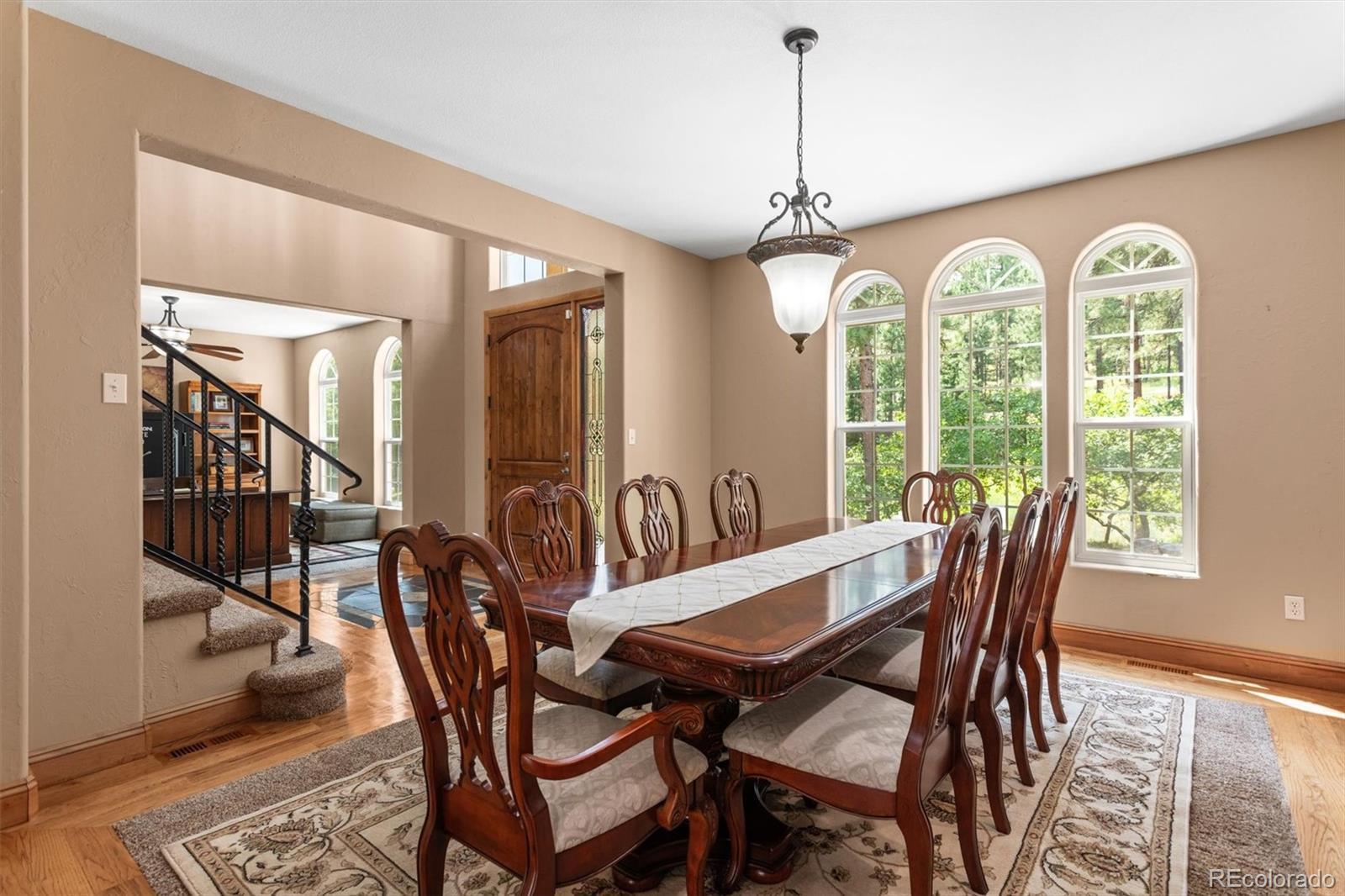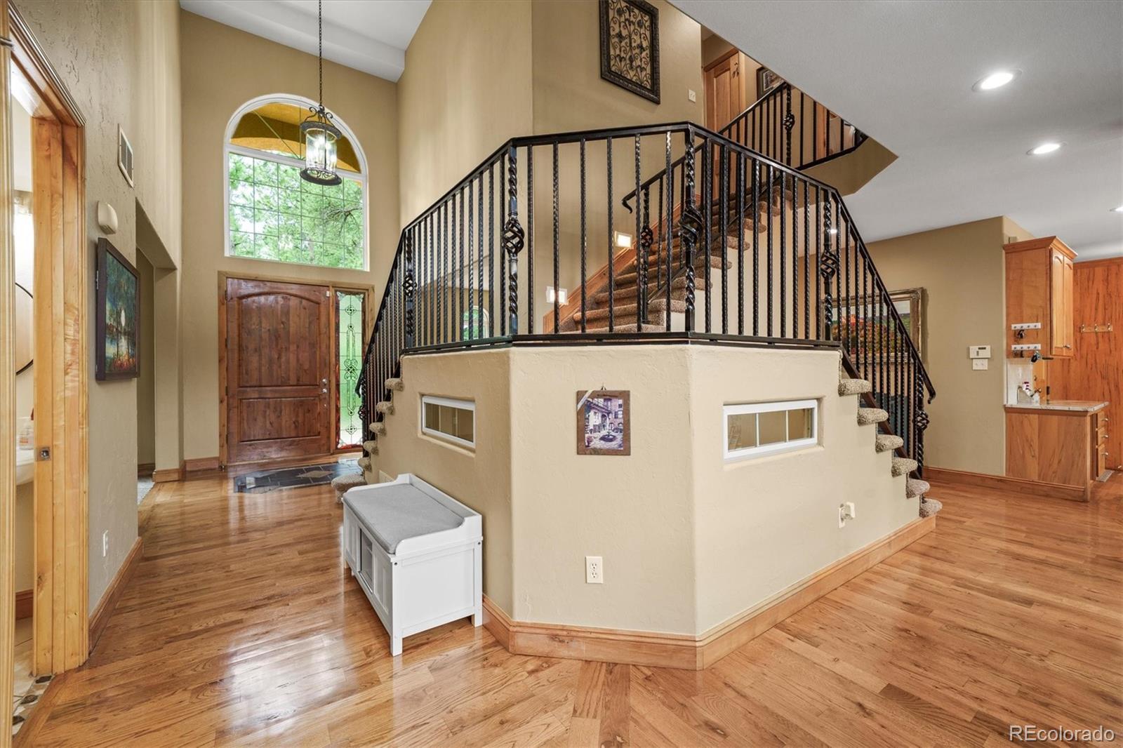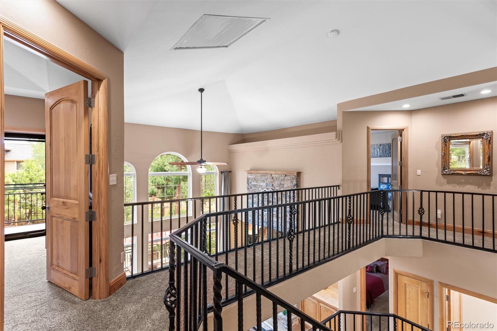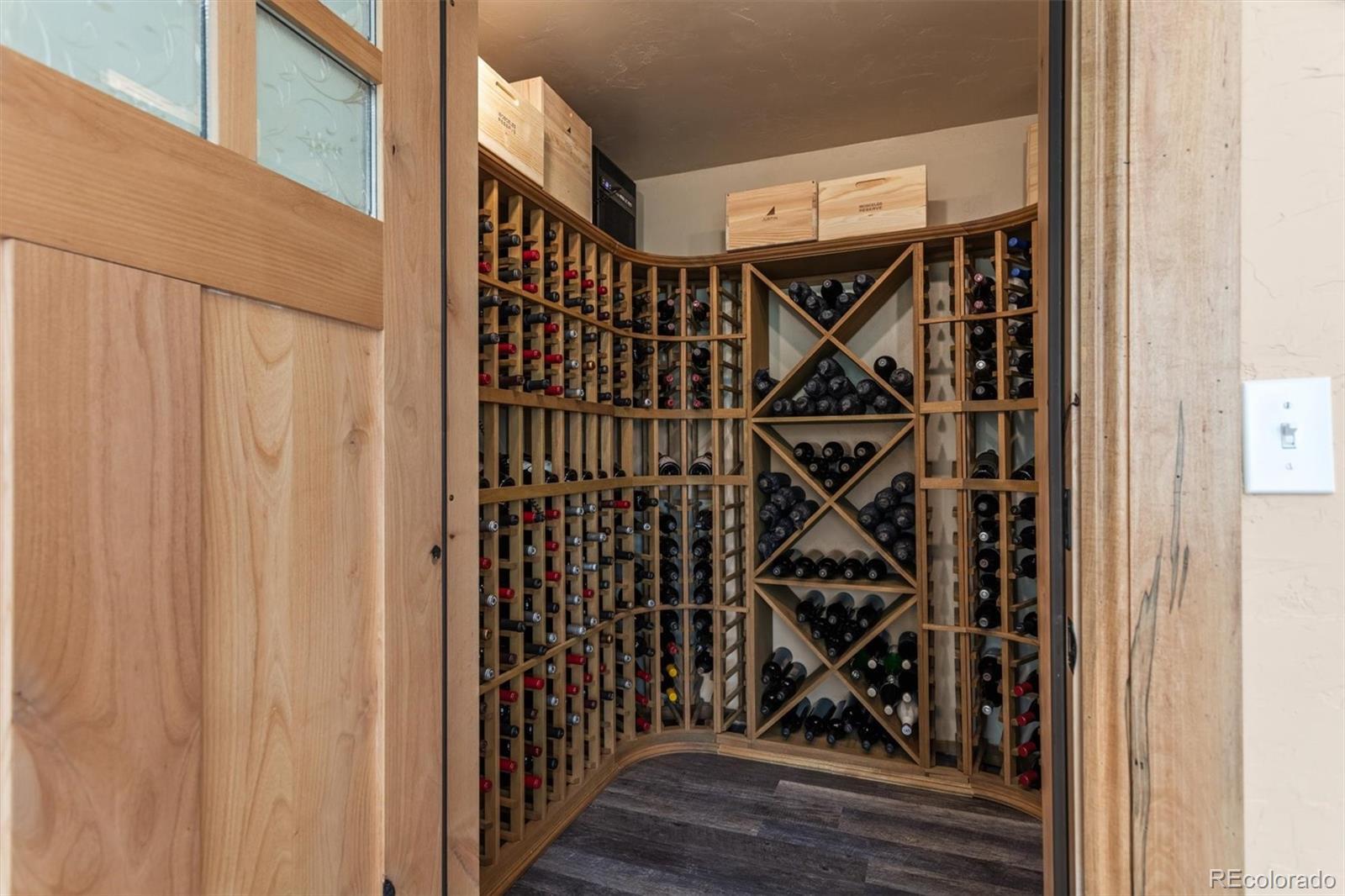 This well maintained custom home defines the serenity of Colorado lifestyle in Perry Park. An outdoor living space surrounded by a canopy of towering pines, watch deer wander through your yard, or play a round of golf at Perry Park Country Club. What do we love about Perry Park besides the people? Steeped in Colorado history, surrounded by red rock sandstone formations and breathtaking views of the Front Range. Just 20 minutes from Castle Rock, 10 minutes from Larkspur, and 5 minutes from the country club, yet worlds away from the pace of the city. Park your camper or RV right on your property, ride golf carts or ATVs around the neighborhood, access Pike National Forest, hiking trails galore, a farmers market every week in the summer, and endless community events, to name a few. The free library in Larkspur is such an amazing place! Tucked away on a private, tree-lined lot, your new home exudes craftsmanship and character, custom rock and tile work throughout, beetle kill hearth, mountain alder cabinetry, 26 foot soaring ceilings and vaulted ceilings, wrought iron railings, natural wood floors, expansive windows that bring the outdoors in, massive kitchen island, a grand fireplace, an oversized primary suite & walk-in closet, and a floor plan designed for both comfort and entertaining. The walkout basement is filled with natural light, a brand new bar, a 600 bottle climate controlled wine cellar, a theatre room, and eventually endless amounts of entertainment to your liking. The internet connection is phenomenal! 2022:2 new ac units, 2 new furnaces, hot tub, fenced backyard, climate-controlled walk in wine cellar, 2023:expanded driveway for RV parking, 2024:new water heater, new bar area in basement with granite countertops, whole house humidifier, driveway resealed, 2025:new insulated garage doors with opener, LED light fixtures added throughout house, 2018 & 2019:roof replaced with a lifetime corning duration shingles, repaired exterior stucco, and exterior paint.