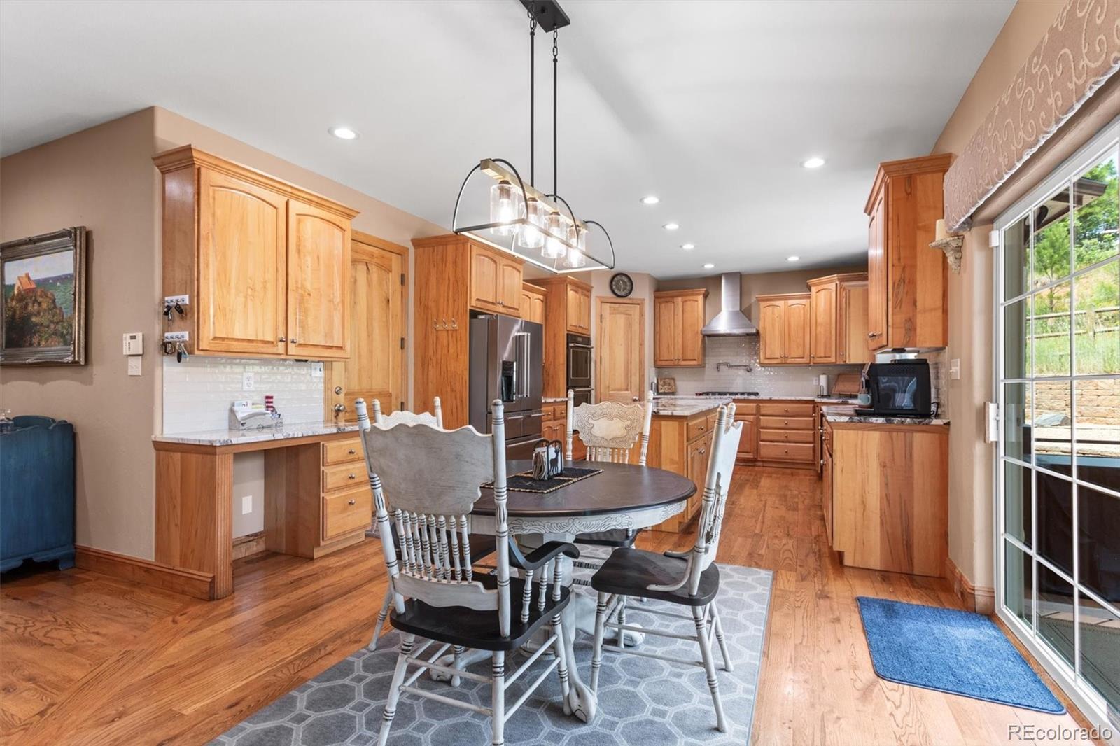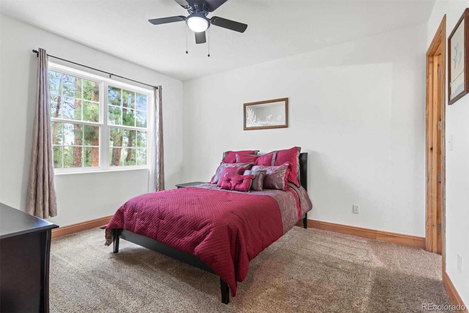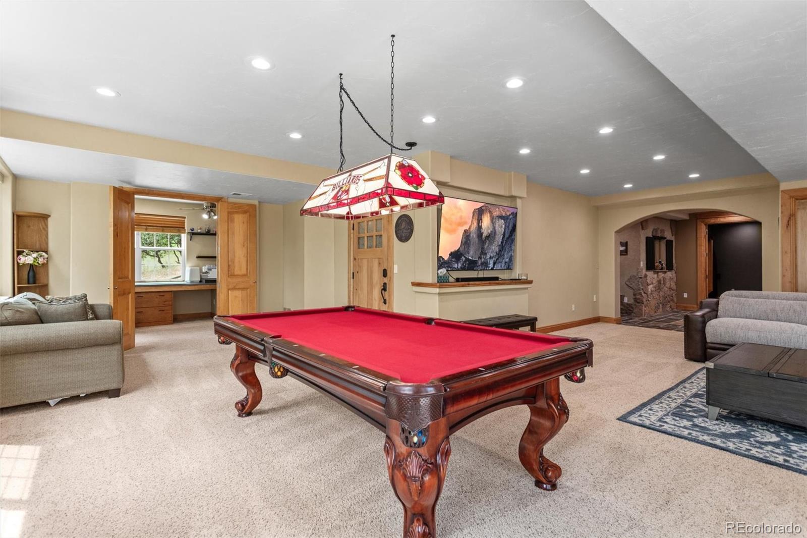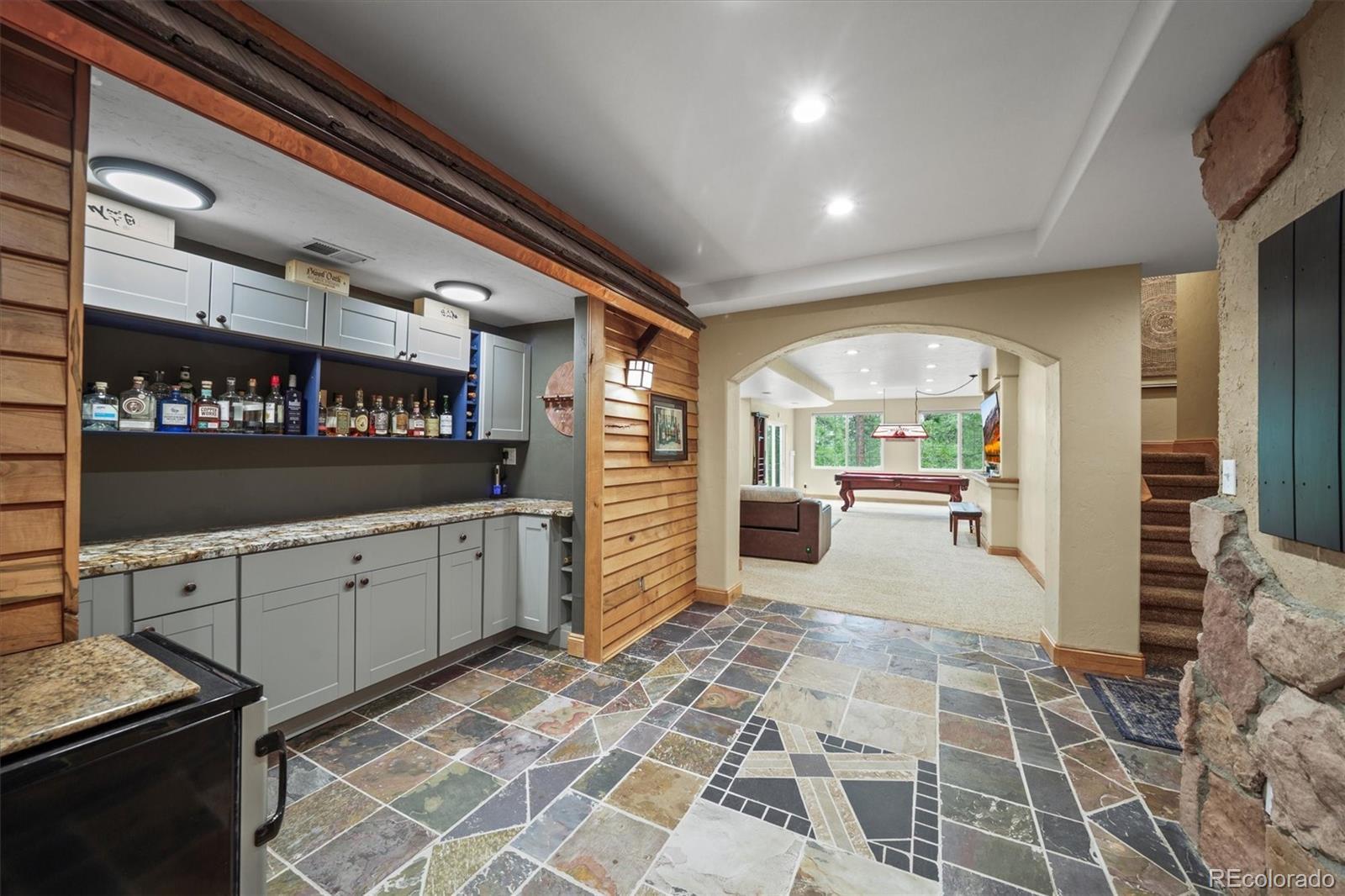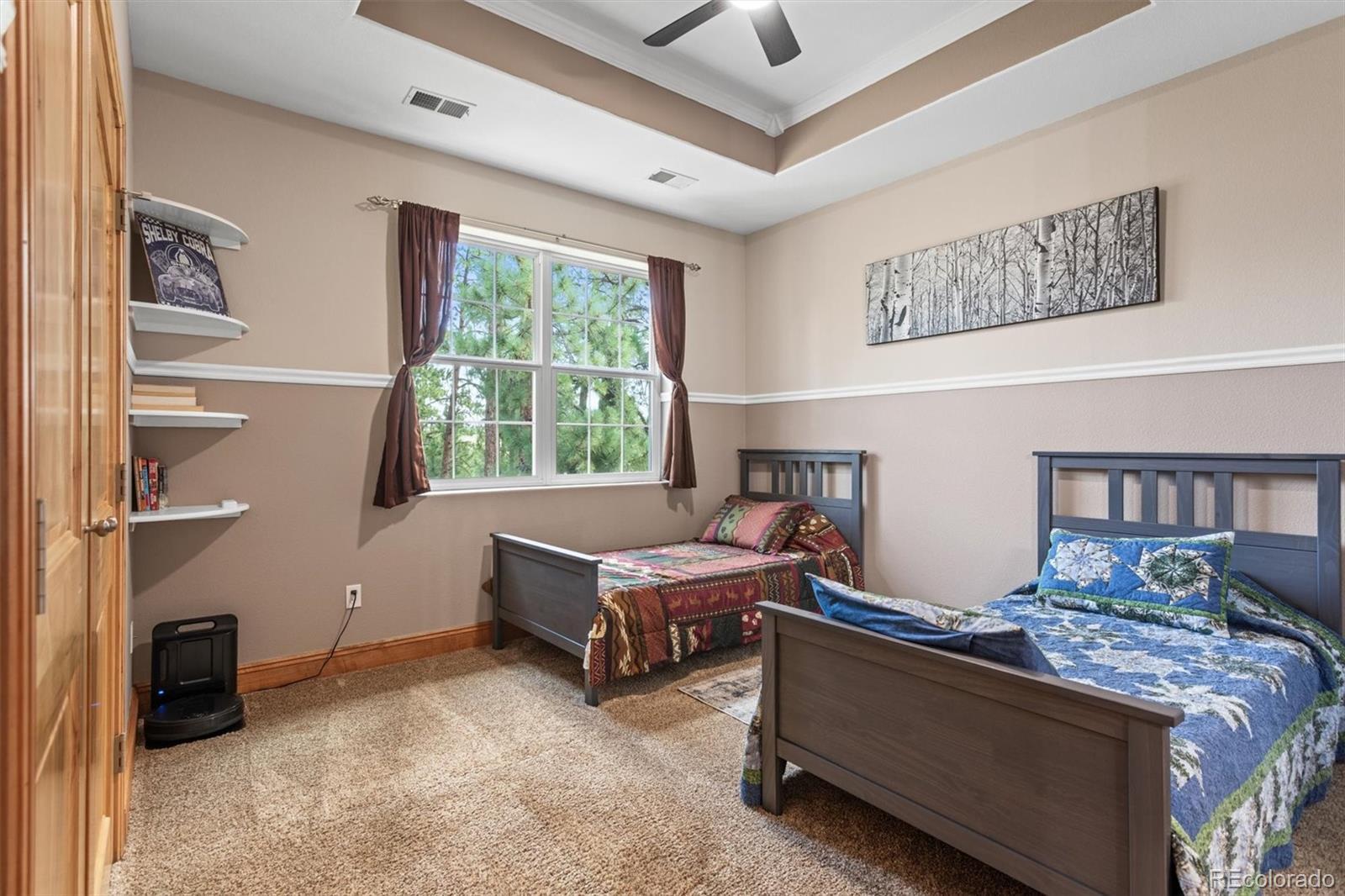 This well maintained custom home defines the serenity of Colorado lifestyle in Perry Park. An outdoor living space surrounded by a canopy of towering pines, watch deer wander through your yard, or play a round of golf at Perry Park Country Club. What do we love about Perry Park besides the people? Steeped in Colorado history, surrounded by red rock sandstone formations and breathtaking views of the Front Range. Just 20 minutes from Castle Rock, 10 minutes from Larkspur, and 5 minutes from the country club, yet worlds away from the pace of the city. Park your camper or RV right on your property, ride golf carts or ATVs around the neighborhood, access Pike National Forest, hiking trails galore, a farmers market every week in the summer, and endless community events, to name a few. The free library in Larkspur is such an amazing place! Tucked away on a private, tree-lined lot, your new home exudes craftsmanship and character, custom rock and tile work throughout, beetle kill hearth, mountain alder cabinetry, 26 foot soaring ceilings and vaulted ceilings, wrought iron railings, natural wood floors, expansive windows that bring the outdoors in, massive kitchen island, a grand fireplace, an oversized primary suite & walk-in closet, and a floor plan designed for both comfort and entertaining. The walkout basement is filled with natural light, a brand new bar, a 600 bottle climate controlled wine cellar, a theatre room, and eventually endless amounts of entertainment to your liking. The internet connection is phenomenal! 2022:2 new ac units, 2 new furnaces, hot tub, fenced backyard, climate-controlled walk in wine cellar, 2023:expanded driveway for RV parking, 2024:new water heater, new bar area in basement with granite countertops, whole house humidifier, driveway resealed, 2025:new insulated garage doors with opener, LED light fixtures added throughout house, 2018 & 2019:roof replaced with a lifetime corning duration shingles, repaired exterior stucco, and exterior paint.