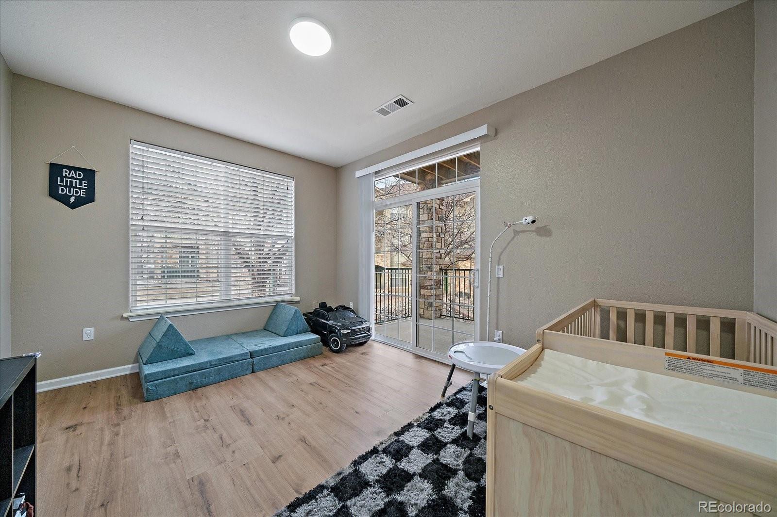 Welcome to Hunters Chase 18611 Stroh Road Unit 5-102 in esteemed Parker, Colorado. This light-filled corner unit truly feels like home from the moment you arrive. With main level, private access (no stairs!), it is one of the best locations in the community & offers the rare combination of privacy, convenience, and connection to the outdoors. Inside, high ceilings and expansive windows create an open, airy feel, while durable LVP flooring flows throughout the space. The family room centers around a cozy fireplace that opens seamlessly to the kitchen—perfect for relaxed evenings or entertaining friends. The kitchen stands out with quartz countertops, rich cherry cabinetry, stainless steel appliances, a pantry, and tile flooring that adds both style and function. Both bedrooms are generously sized, complemented by two full bathrooms and thoughtful touches like cellular shades for comfort and privacy. A full-size laundry room—with room to hang clothes—means no more tripping over baskets or squeezing laundry into a hallway. Step outside and enjoy not one, but two covered patios—ideal for morning coffee or unwinding after a long day. Parking is easy with plenty of spaces right outside the unit. The location truly sets this home apart. You’re adjacent to the playground and pool, just one block from Stroh Ranch soccer fields, additional playgrounds, and the Cherry Creek Trail—perfect for walks, runs, or e-biking adventures. 14 minutes to light rail or bus right into DIA, DTC, Castle Rock shopping or Downtown Denver! This is low-maintenance living with space, style, and an unbeatable lifestyle—all in one place. Move-in ready means you won’t have to gamble with the rates or put up with builder delays. This condo IS FHA WARRANTABLE!