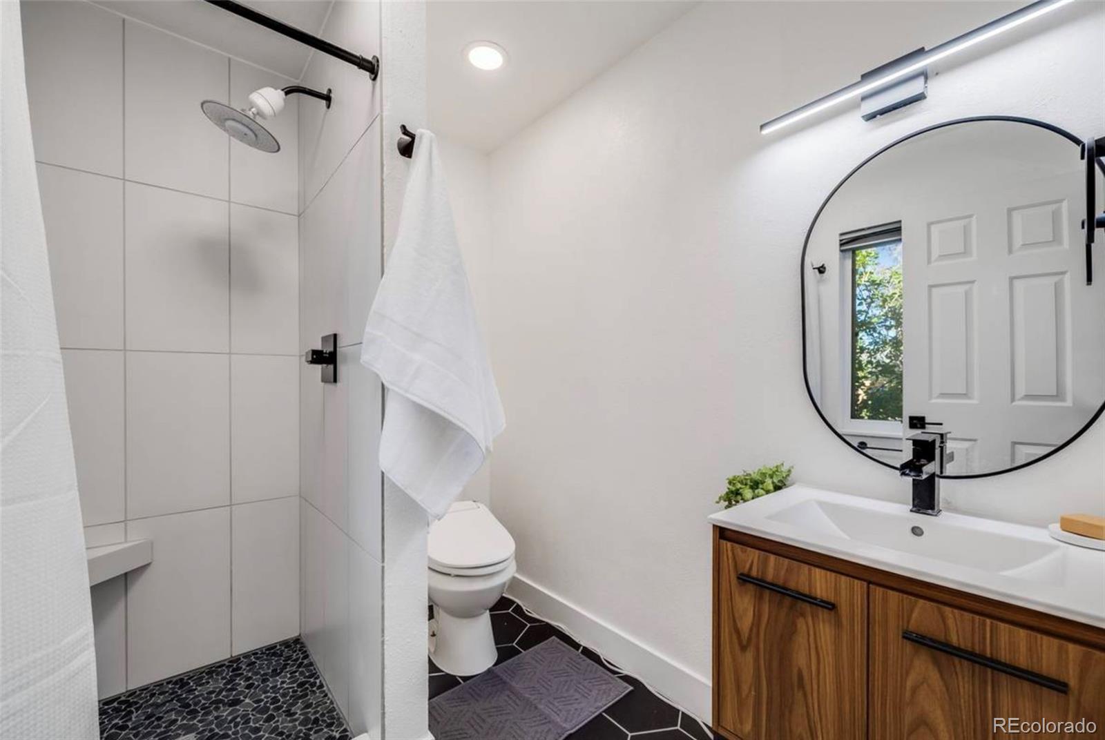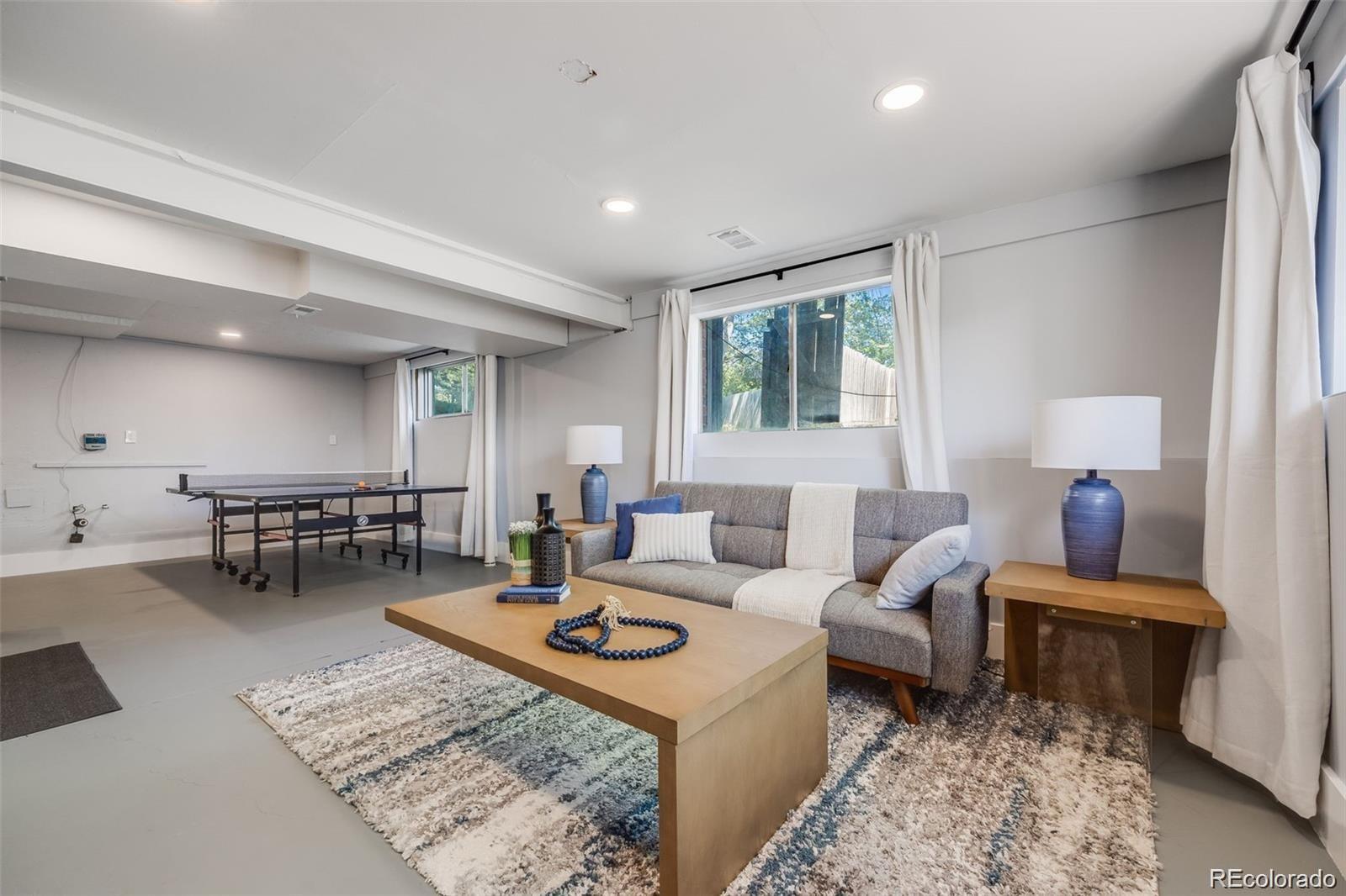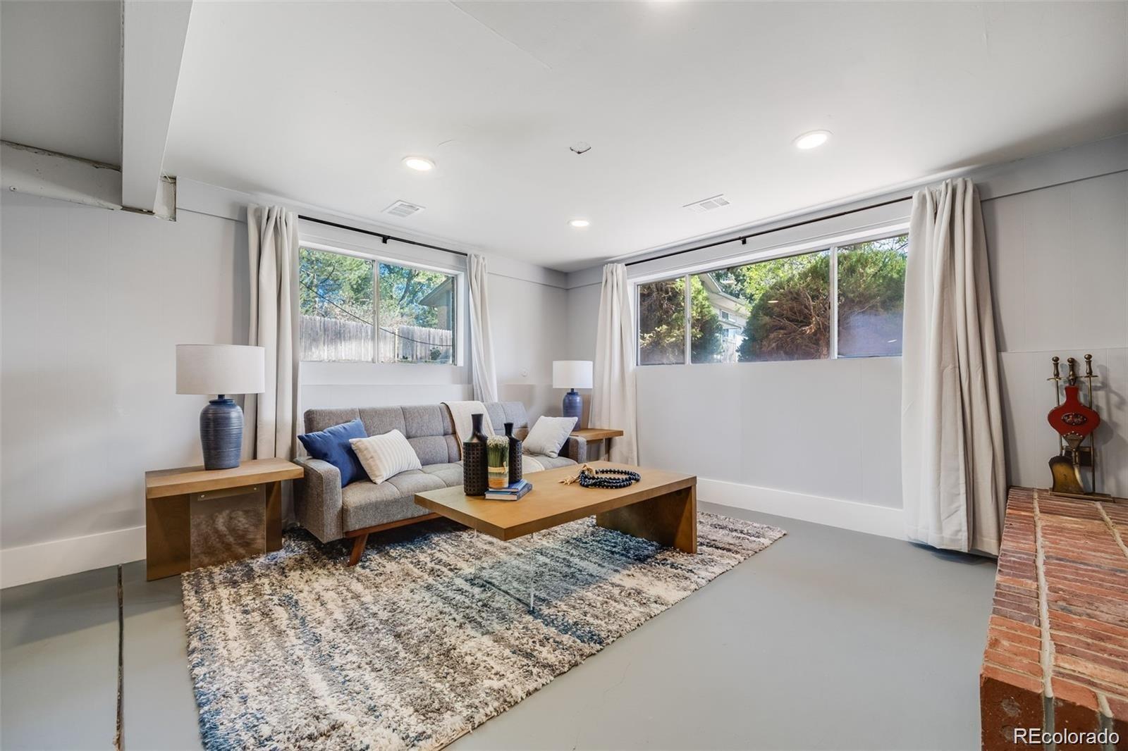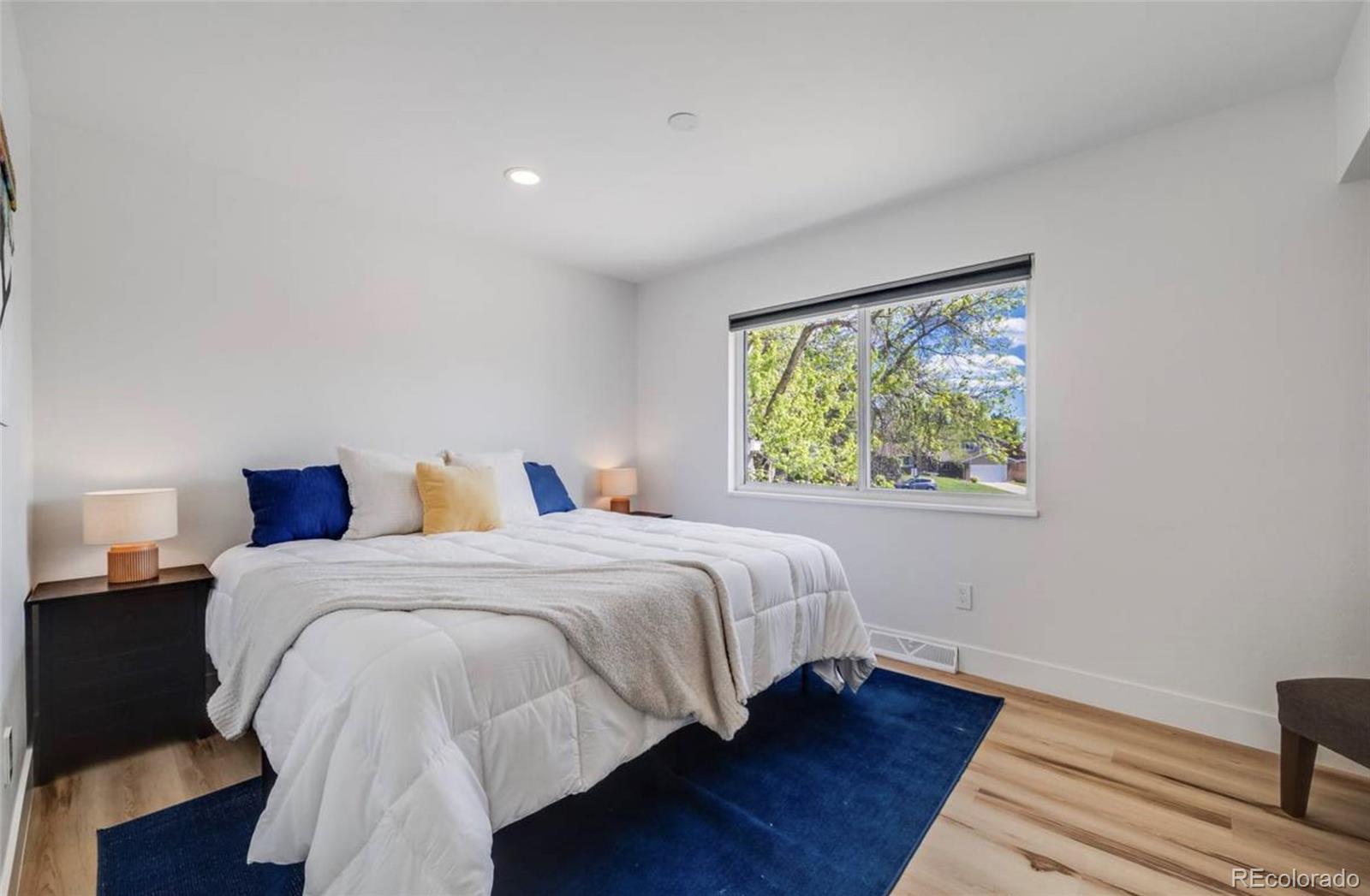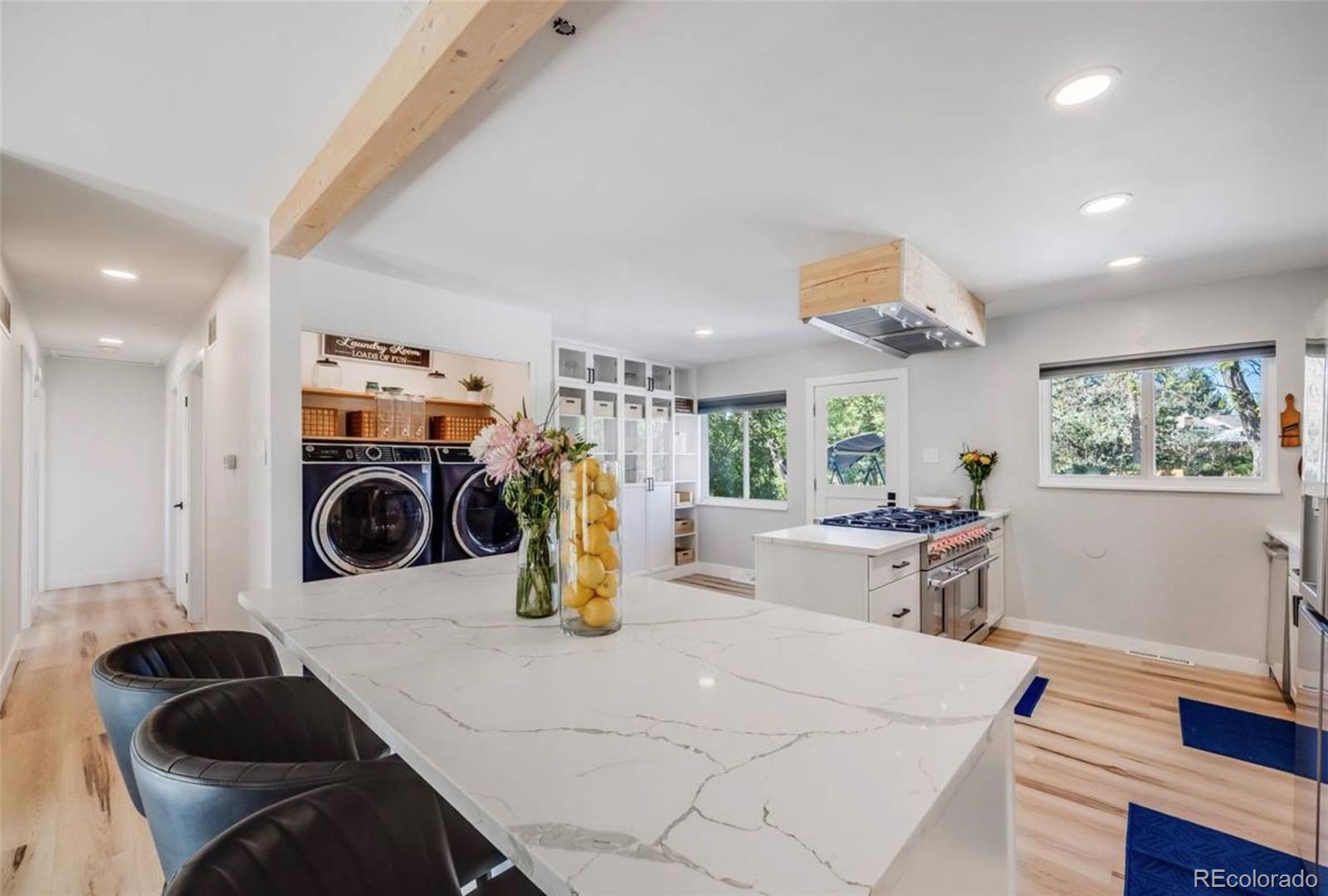 Discover your perfect blend of style, space, and comfort in a beautifully reimagined home tucked away on a sprawling oversized lot at the end of a quiet cul-de-sac. Every detail of this residence showcases craftsmanship and character, from exposed brick accents and custom wood beams to sunlight streaming through each thoughtfully designed space. The centerpiece of the home is an exceptional chef’s kitchen, equipped with a 48” professional gas range featuring dual ovens and a built-in rotisserie, sleek quartz countertops, and elegant open shelving that marries form and function. The attention to design and quality shines through in every finish, creating a truly one-of-a-kind living experience. Cozy up by one of the home’s two wood-burning fireplaces, or enjoy year-round comfort with the whole-house humidifier. Upstairs offers spacious and peaceful bedrooms, while the finished basement provides flexible space ideal for a home office, gym, or guest retreat and already plumbed for a bathroom. Step outside into a backyard built for entertaining, where mature trees, multiple patios, a dance floor, and a hot tub invite you to relax and celebrate life outdoors. A rolling back gate adds convenience with room to park a boat, RV, or additional vehicles on-site. The oversized backyard feels secluded and serene, offering a sense of privacy rarely found in the city. With Denver zoning that may allow for an Accessory Dwelling Unit (buyer/buyer’s agent to verify). Located near Bible Park, restaurants, shopping and easy access to I25. This home delivers the ideal balance of charm, modern amenities, and everyday convenience—truly a place you’ll fall in love with the moment you arrive.