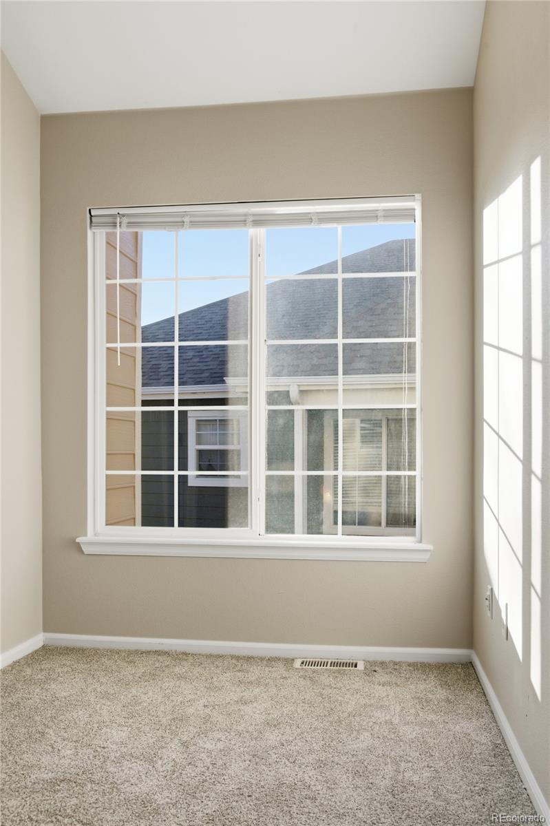 Welcome to 1325 Carlyle Park Circle — Move-in-ready townhome in the Villages at Highlands Ranch offering 2 spacious bedrooms, 3 baths, and approximately 1,435 sq ft of bright, open living space. The main level features an inviting living area with large windows and a cozy fireplace, an open-concept kitchen and dining area perfect for entertaining, and convenient main-floor laundry with a powder bath. Upstairs, you’ll find two generous primary suites each with its own en-suite bath and a versatile loft area ideal for a home office or reading nook. Enjoy your private, low-maintenance yard with synthetic turf and existing irrigation, plus an attached one-car garage with storage space. Nestled in a well-maintained community with access to trails, parks, and Highlands Ranch amenities, this home combines comfort, style, and convenience — all just minutes from top-rated schools, shopping, dining, and commuter routes. Buyer to verify sf, tax, HOA and schools