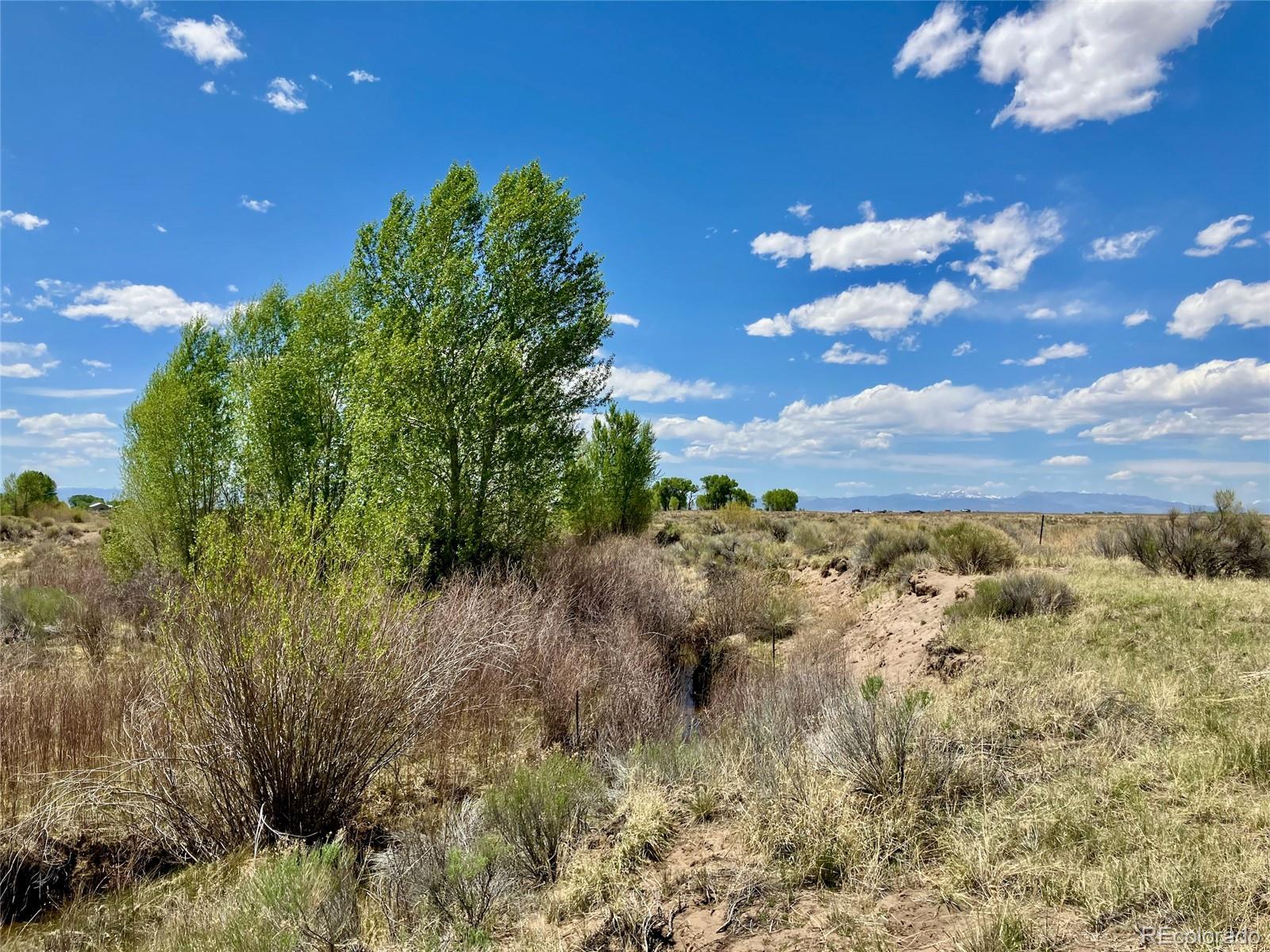 CREEK PROPERTY - seasonal drainage flows through the property! Enjoy enhanced privacy, tree breaks, flora, fauna, and more. Great habitat for birds and wildlife. Located in the beautiful Baca Grande, famous for 14,000-foot peaks and unspoiled nature. Fabulous panoramic views of the Sangres, San Juans, and San Luis Valley. Located near the southern edge of the Grants, close to old Cottonwood Creek greenbelt trail. Beyond the greenbelt are federal lands, including the 100,000-acre Great Sand Dunes National Park. Deer, pronghorn, eagles, hawks, elk, and numerous bird species are your neighbors. 15 minutes on paved roads to the town of Crestone and amenities: gas, groceries, cafes, restaurants, gallery, post office, gifts, parks, and more. Crestone is an accredited Dark Skies community, known for sunny days (300/yr), starry nights, wildlife, solitude, and stillness. It has two local schools and burgeoning community. The Baca features staffed firehouse and EMTs, as well as parks, trails and rustic golf & tennis. Camping, Birding, MTB, Rock Climbing, Skiing, Silent Meditation, Retreats, Hot Springs, Fishing and Hunting are only some of the pastimes available in the wider San Luis Valley area. Landline phone is available. Well and septic are required, along with power source (eg. solar PV) - the ideal location to build your off-grid dream home. Call today for more information! (see creek video links)