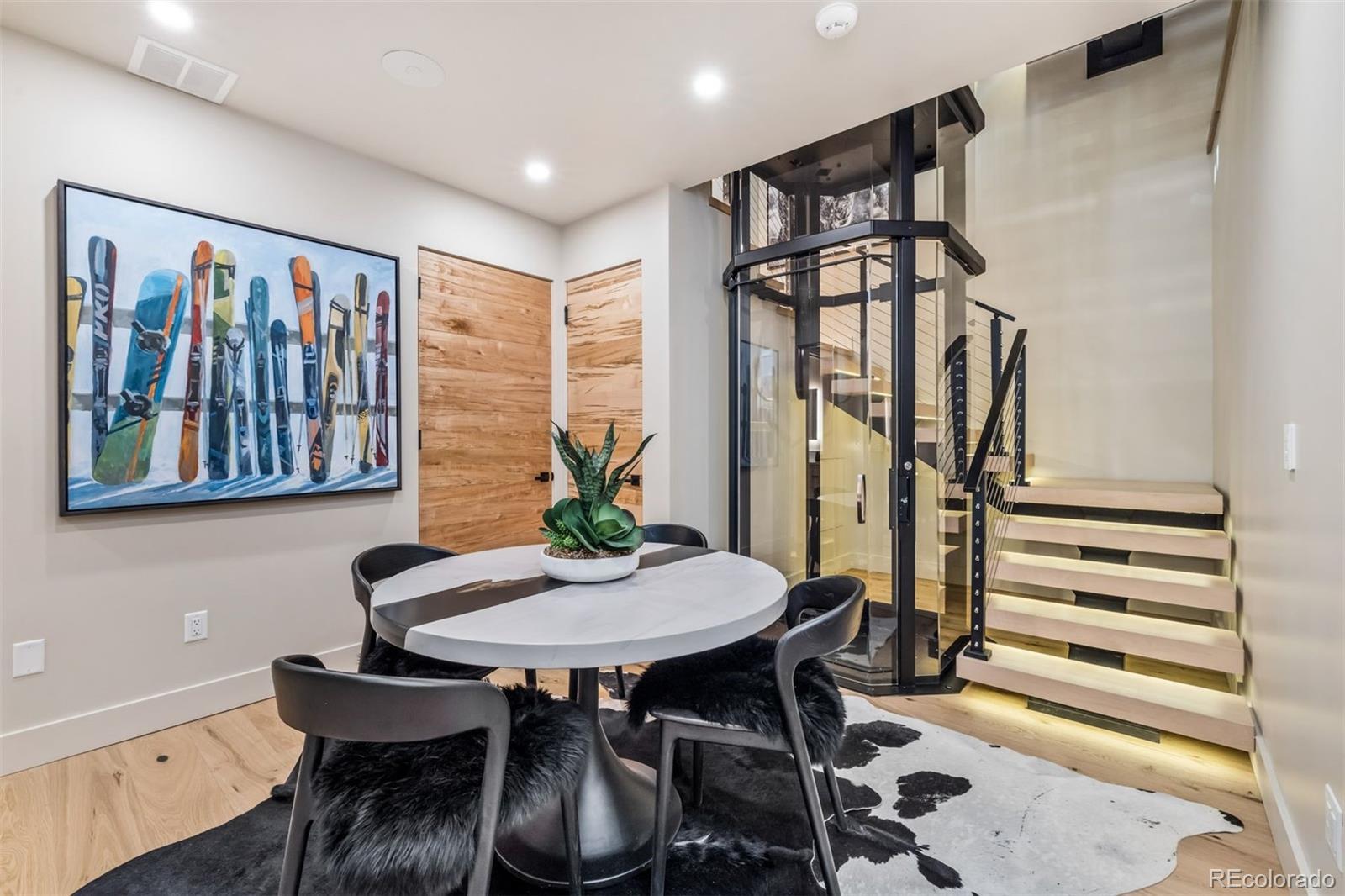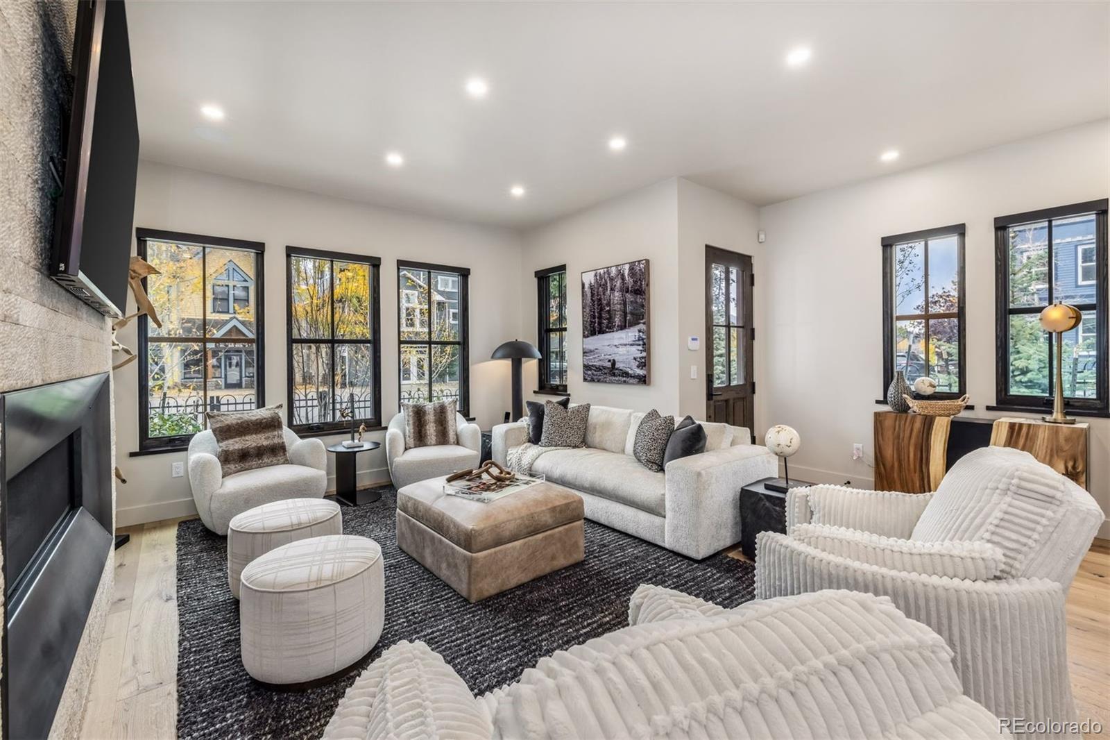 224 S. Ridge Street is a fresh diamond among Breckenridge's historic gems. A rare find indeed, this new residence was designed by Allen-Guerra Architecture and constructed by Rockridge Building Company. This historic district home gives a nod to its surroundings while embracing the latest in modern design. At the heart of the home, a striking glass elevator centers and connects all three levels, serving as both a functional feature and architectural statement. The well-appointed main level welcomes you from the street into a spacious great room centered around a modern gas fireplace, while the stylish kitchen features gourmet appliances that perfectly complement its sleek design. The primary suite is dedicated to its own private level, offering comfort and seclusion from the main living spaces. On the lower level, you’ll find three additional bedrooms and a separate living area, including a fun and functional bunk room—perfect for kids or extra guests. A cozy home theater just off the great room adds another versatile gathering space. The walkability rating of this home is second to none. Enjoy everything Breckenridge has to offer from its plethora of dining options to an easy stroll to the gondola for a day of skiing. Even though you don’t need a car, the property offers a private one-car garage, covered carport and two off-street parking spaces. The ultimate in Breckenridge living!