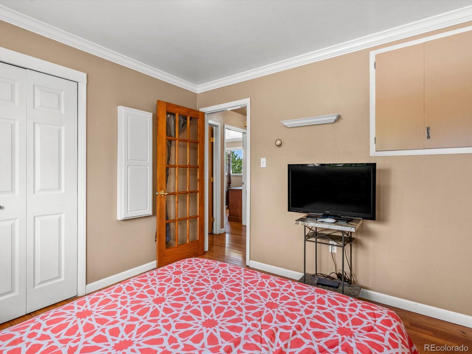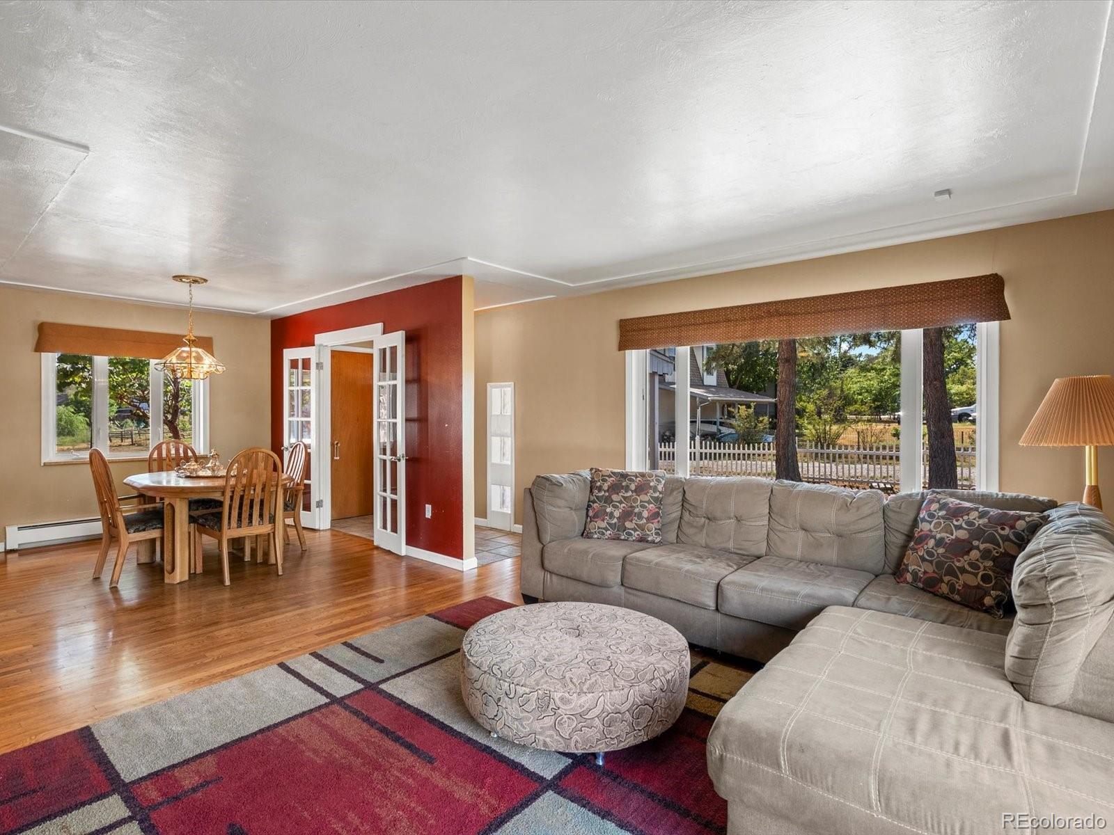A Hidden Gem on Over Half an Acre in the Heart of Arvada. Tucked away on a quiet street, this charming split-level brick home is a well-kept secret—an unexpected retreat on a rare .62-acre lot, where space, comfort, and character come together beautifully. From the welcoming front porch to the storybook backyard framed by a white vinyl fence, you’ll feel the warmth of a home that’s been lovingly maintained. The light-filled main level features original hardwood floors, lending timeless charm and character. The open living and dining areas flow easily for family gatherings or cozy nights in. The kitchen offers abundant hickory cabinets, a casual eat-in area, and plenty of room to create and connect. Upstairs, you'll find three spacious bedrooms and a full bathroom, each offering peaceful views of the lush, mature landscaping outside. Downstairs, a flexible lower level provides endless possibilities—use it as a family room with a cozy fireplace or convert it into a fourth bedroom for guests. A private office with glass doors offers the ideal work-from-home setup. Step outside to experience the heart of this property—a large back deck perfect for relaxing under Colorado skies, two storage sheds, and a newly poured oversized driveway with ample room for parking. What truly sets this home apart is the lifestyle it offers. Living in Arvada means enjoying the best of both worlds: quiet suburban charm and easy access to city life. Just a short drive from downtown Denver and the Rocky Mountain foothills, you’ll have endless options for outdoor adventure, dining, and culture. Explore local parks, bike the trails, or spend weekends in Olde Town Arvada, where small-town charm meets vibrant community energy. It’s rare to find a property with this much land so close to the city—and even rarer to find one that feels so much like home.