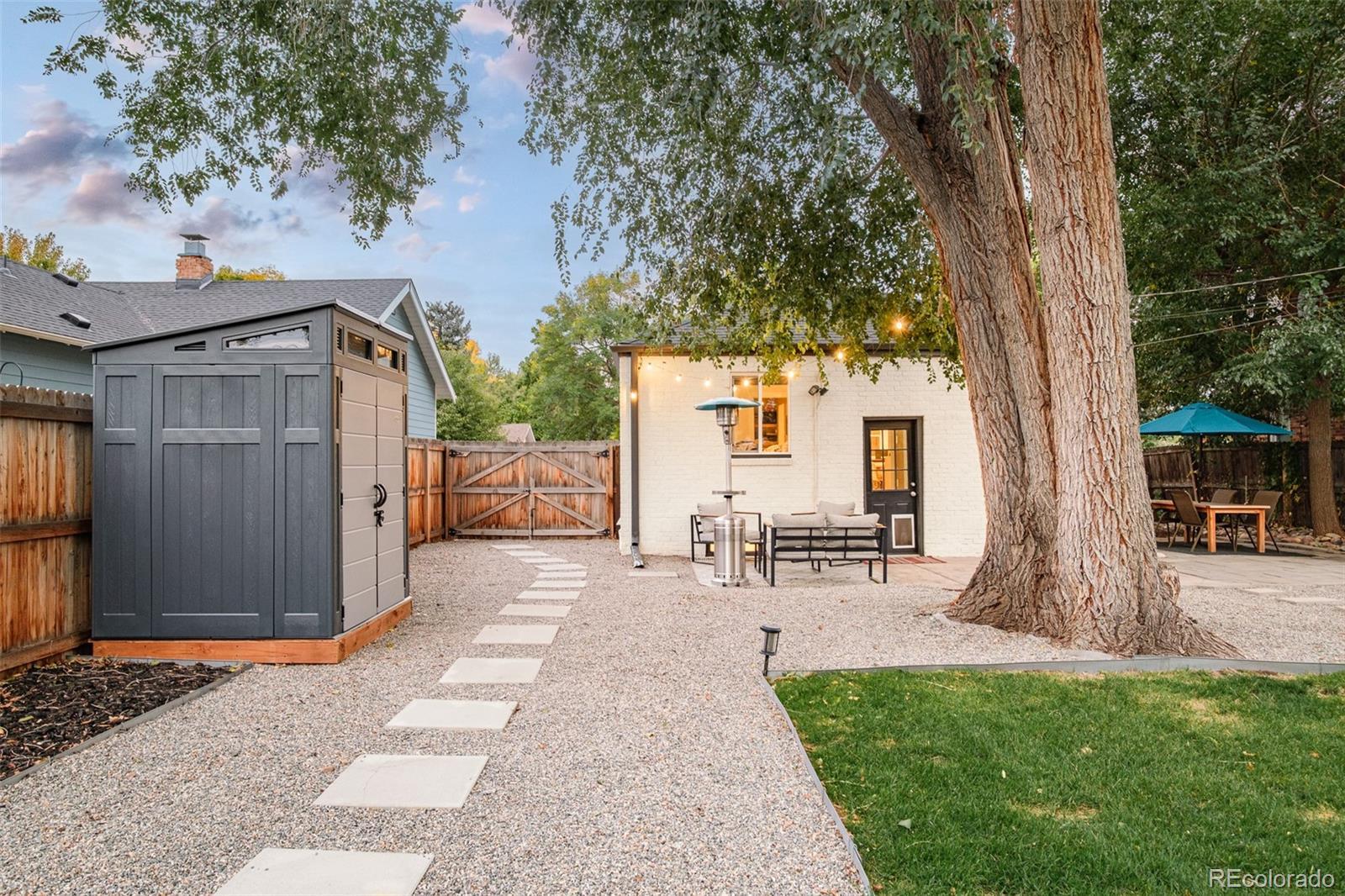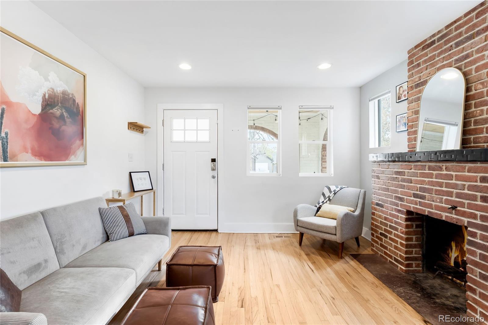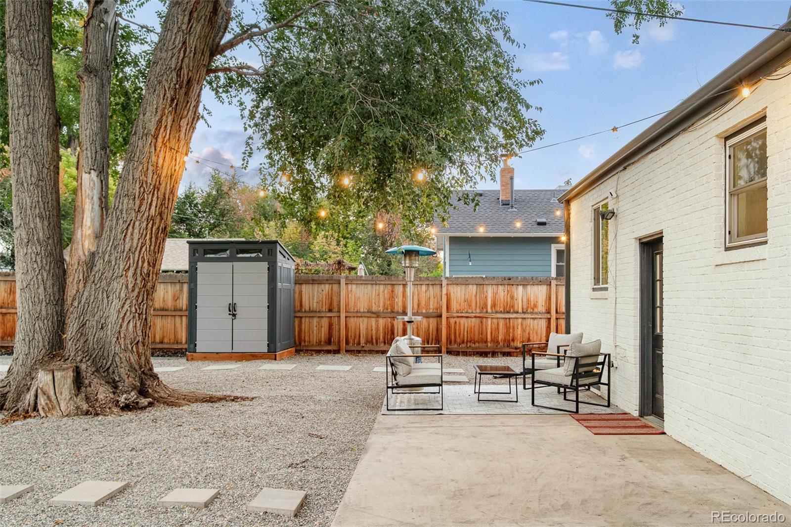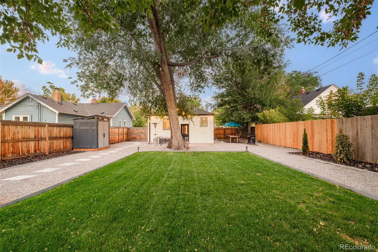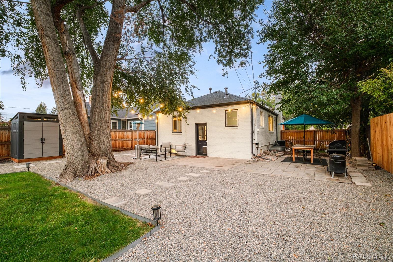 This pristine masterpiece perfectly merges timeless charm and elegant modernity. Steeped in an enviable locale on a spacious lot on a quiet street surrounded by parks, this location & turnkey residence excites. Stunning curb appeal welcomes you to step onto a welcoming covered front porch and into this fully renovated home. Flooded with natural light and large windows, the living space has excellent livability with hardwood floors, stylish finishes and a cozy brick fireplace. The living area joins together with a chef’s kitchen that showcases slab countertops w/ seating, updated cabinets and a gas range. The main floor features two spacious bedrooms and a new full bath. The lower level plays host to a flex room, additional storage closets and a generous laundry area. The backyard is an entertainer or gardener's dream with multiple seating areas, a sprawling yard with mature landscaping and is suitable for even the largest gatherings. Relish in the convenience of an abundance of privacy, a new storage shed, full fencing and automatic irrigation. With quick access to all of your favorite parks, restaurants and shops, this reimagined home presents a rare opportunity.