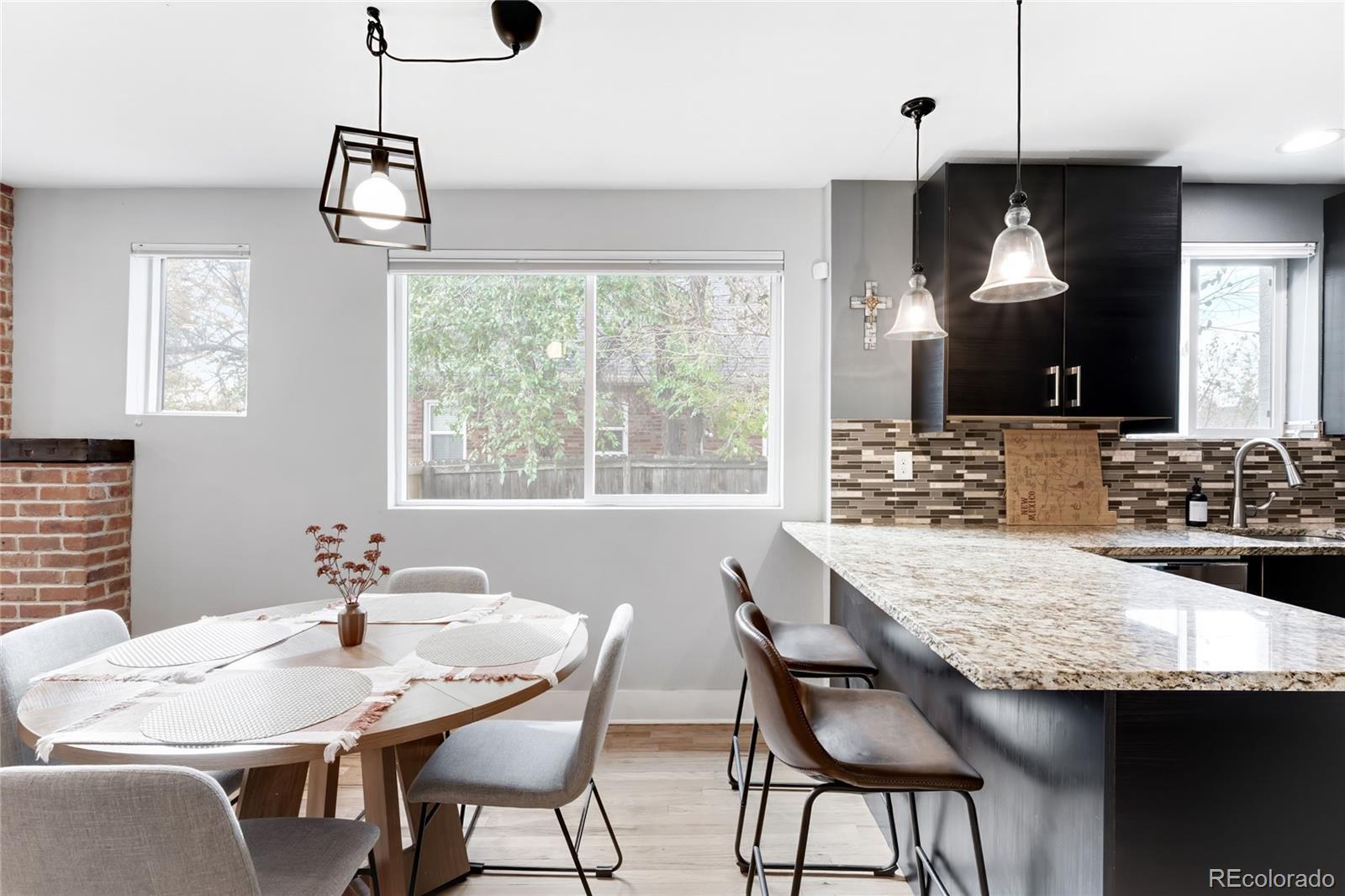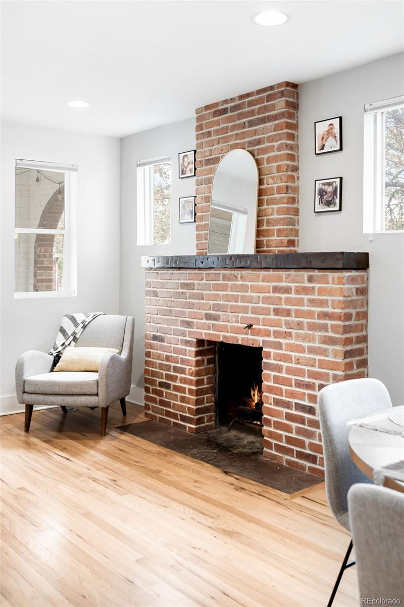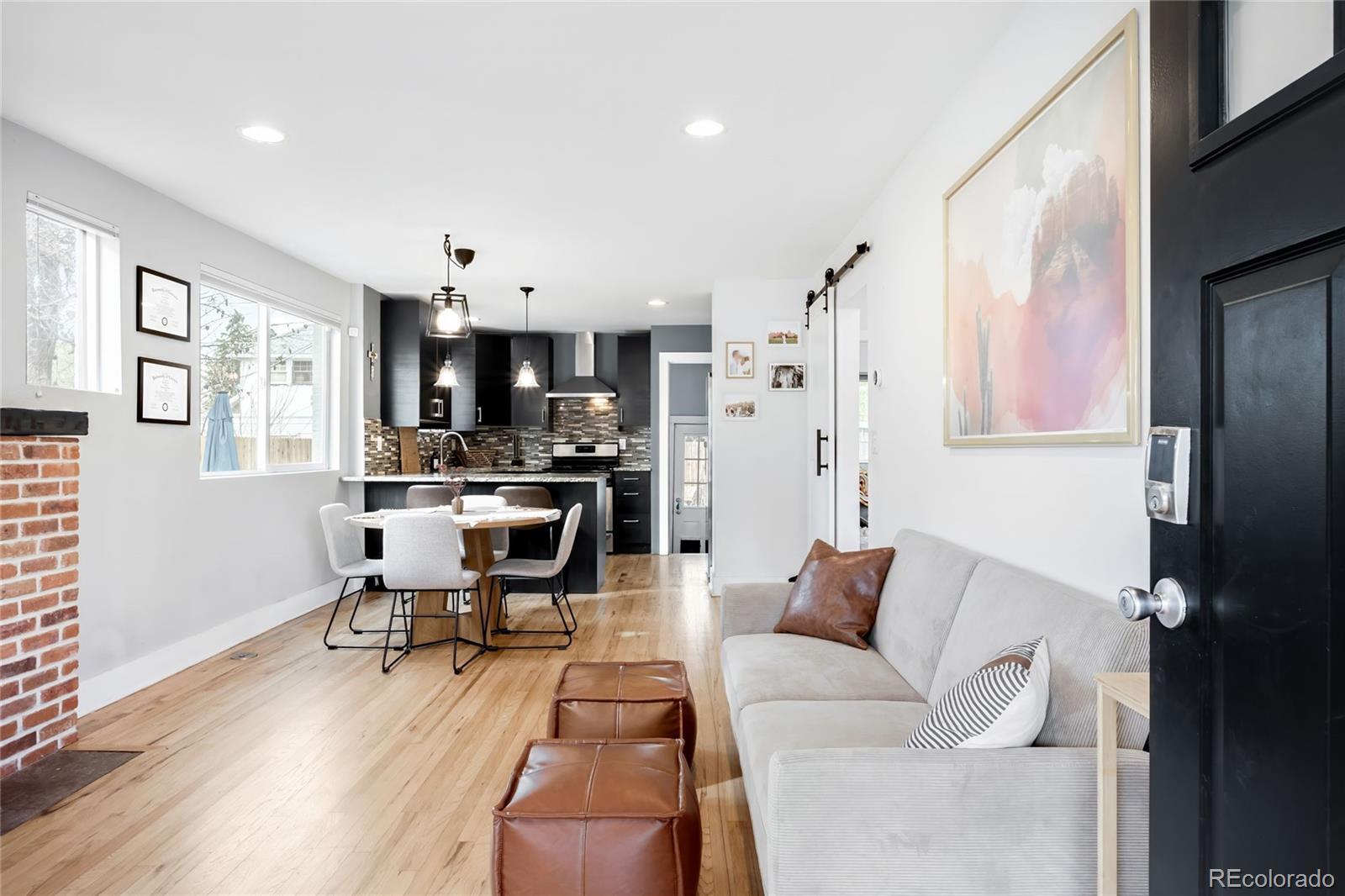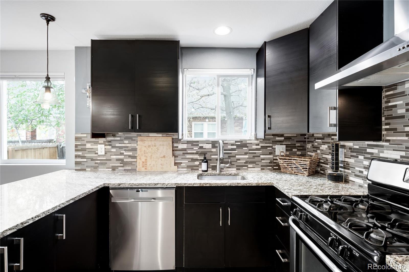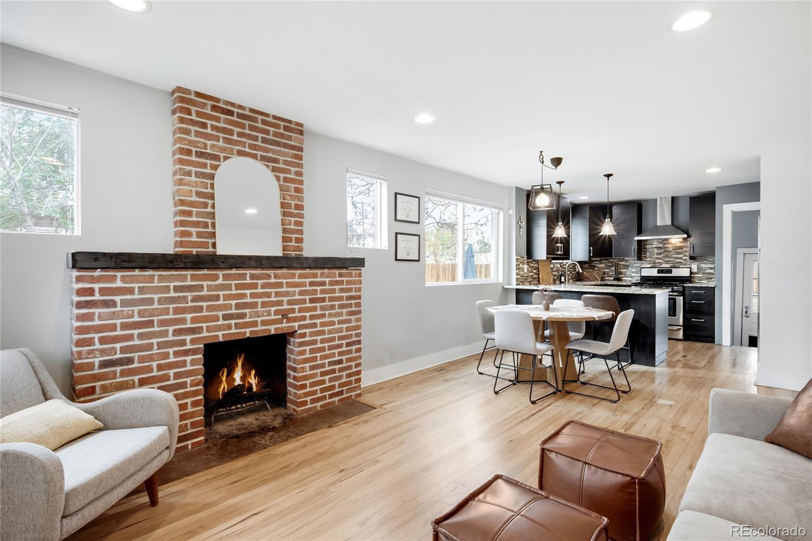 This pristine masterpiece perfectly merges timeless charm and elegant modernity. Steeped in an enviable locale on a spacious lot on a quiet street surrounded by parks, this location & turnkey residence excites. Stunning curb appeal welcomes you to step onto a welcoming covered front porch and into this fully renovated home. Flooded with natural light and large windows, the living space has excellent livability with hardwood floors, stylish finishes and a cozy brick fireplace. The living area joins together with a chef’s kitchen that showcases slab countertops w/ seating, updated cabinets and a gas range. The main floor features two spacious bedrooms and a new full bath. The lower level plays host to a flex room, additional storage closets and a generous laundry area. The backyard is an entertainer or gardener's dream with multiple seating areas, a sprawling yard with mature landscaping and is suitable for even the largest gatherings. Relish in the convenience of an abundance of privacy, a new storage shed, full fencing and automatic irrigation. With quick access to all of your favorite parks, restaurants and shops, this reimagined home presents a rare opportunity.