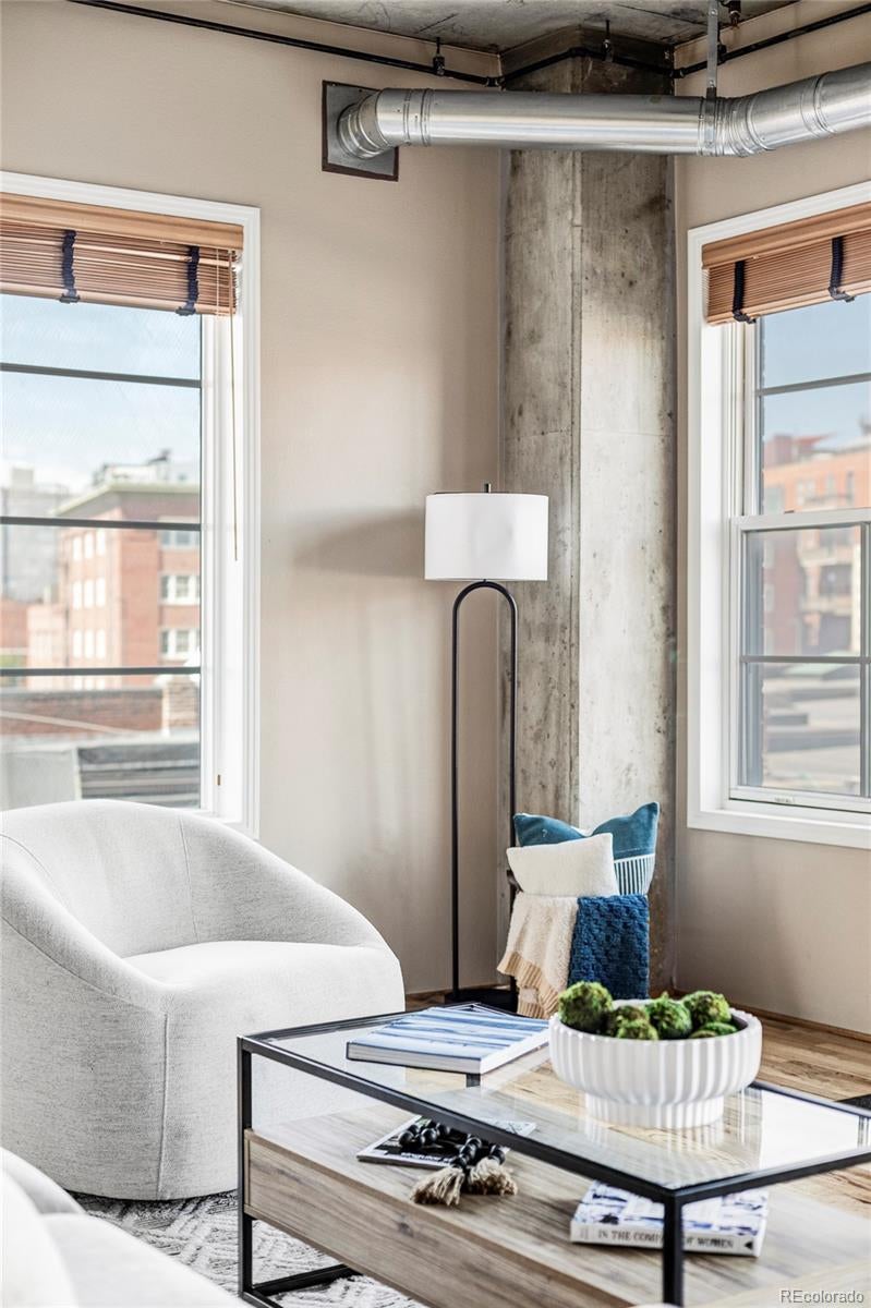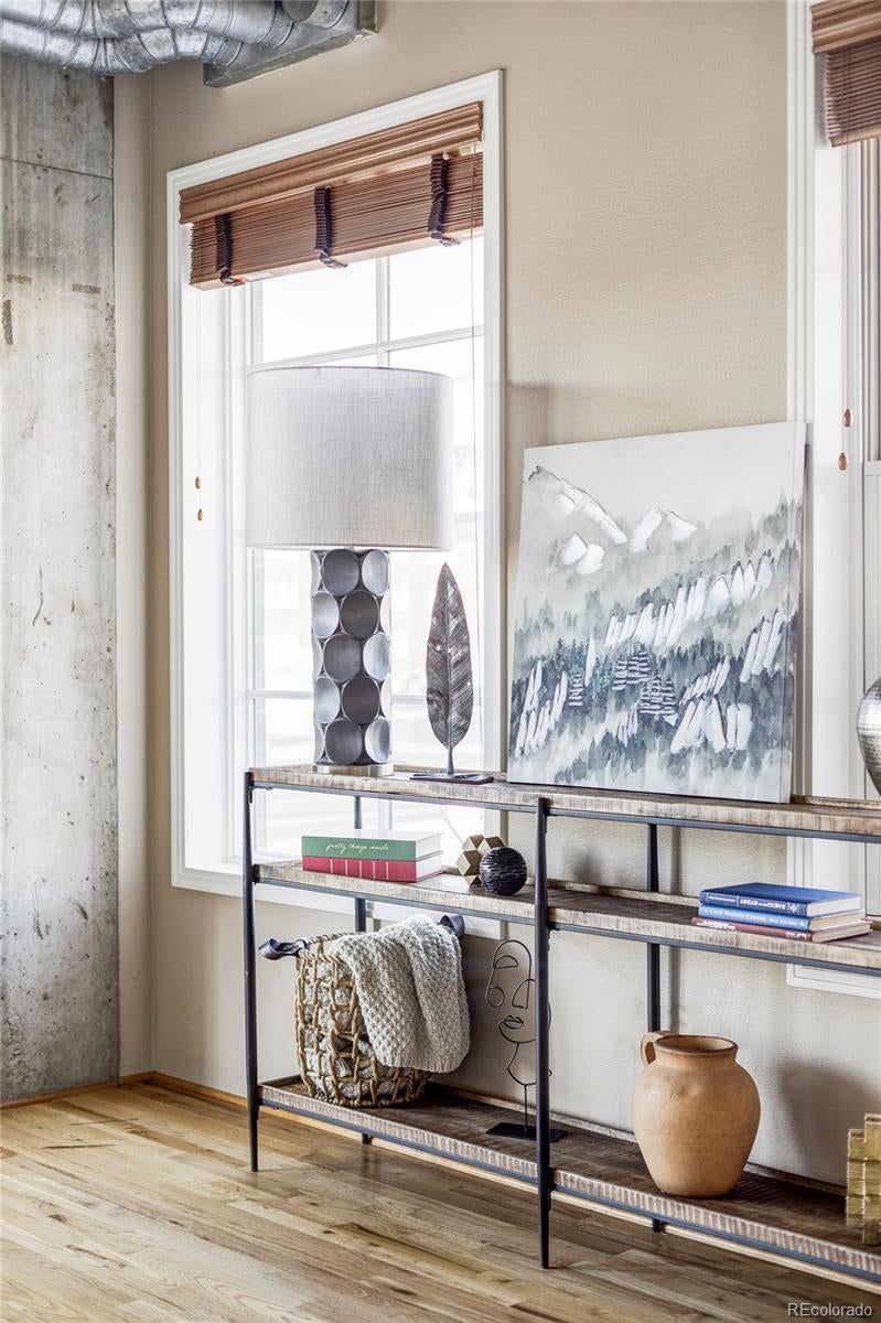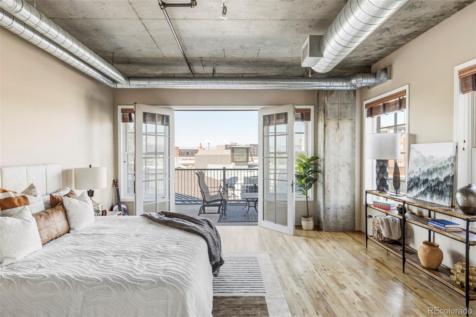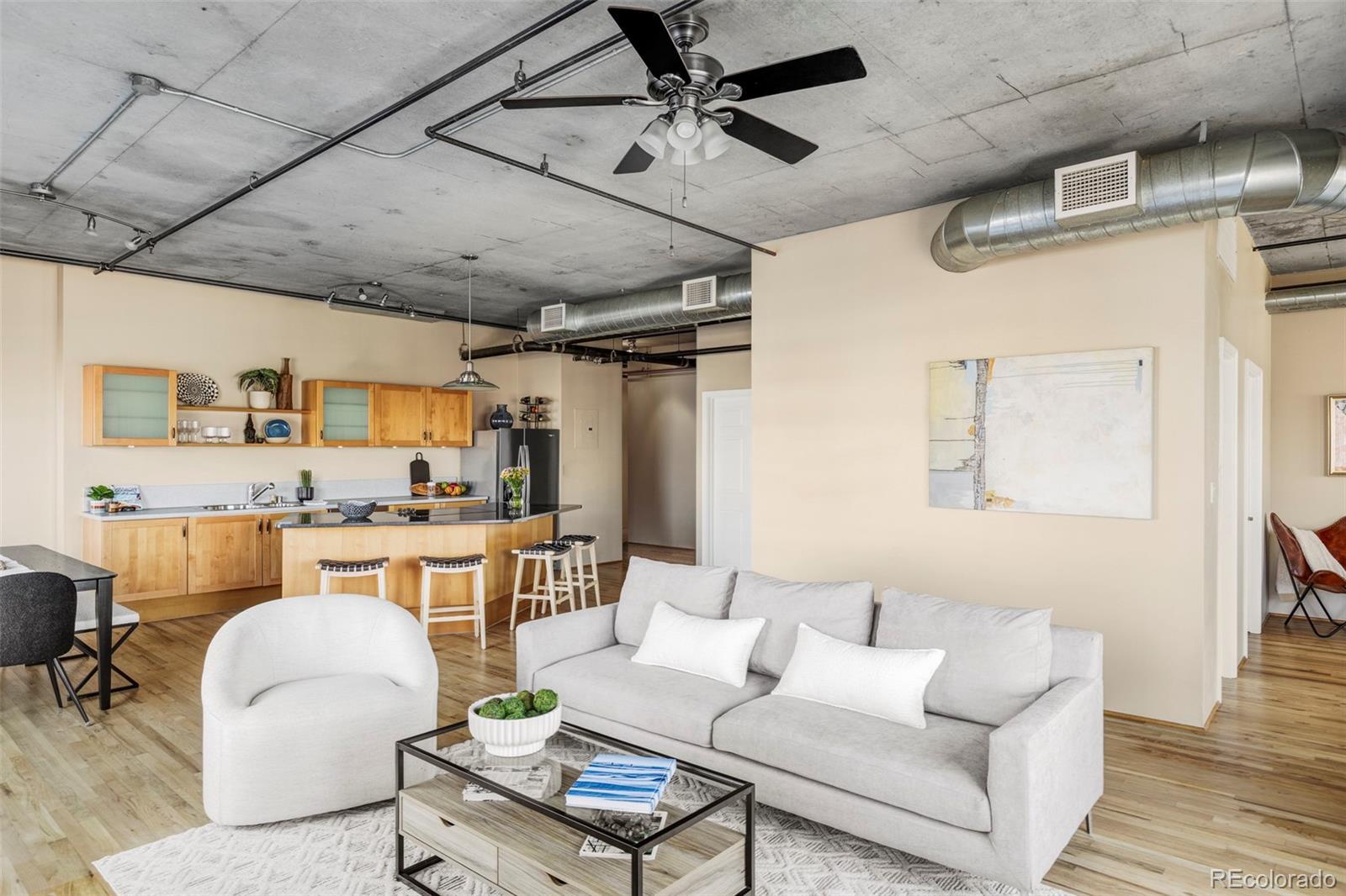 Urban Loft Living with Stunning Mountain & City Views. Experience the best of downtown Denver in this spacious condo. An END unit with coveted west-facing exposure, you’ll enjoy breathtaking views of both the Rocky Mountains and Denver’s vibrant skyline. The open-concept living space features soaring ceilings, exposed beams, beautiful hardwood floors and oversized windows that flood the home with natural light. The generously sized primary suite includes an en suite bathroom and ample closet space, while the additional 3/4 bath is perfect for guests. Updates include a new heat pump and refrigerator. Additionally, this unit offers two deeded parking spots each valued between $60,000-$70,000. Located in the heart of the city, this home offers unmatched walkability to Larimer Square, 16th Street, award-winning restaurants, coffee shops, galleries, entertainment, public transit and the Cherry Creek bike/walking trail on Speer. Whether you’re enjoying a quiet evening with the sunset as your backdrop on your large, private balcony or stepping out for a night in the city, this condo offers the perfect balance of style, convenience, and location.